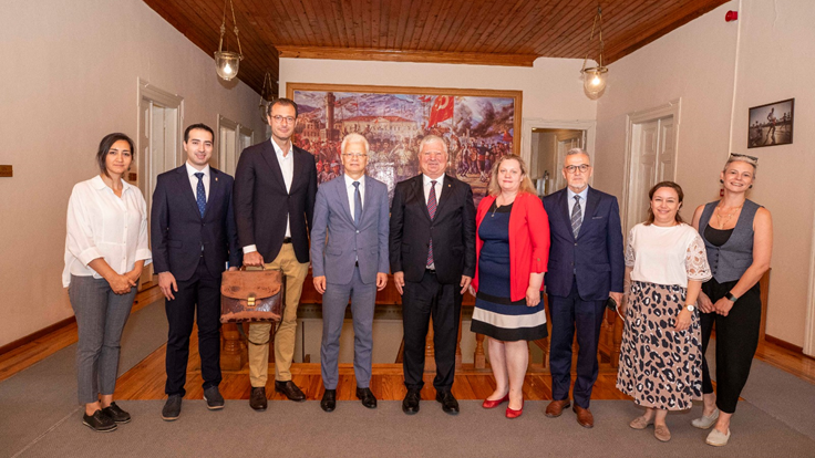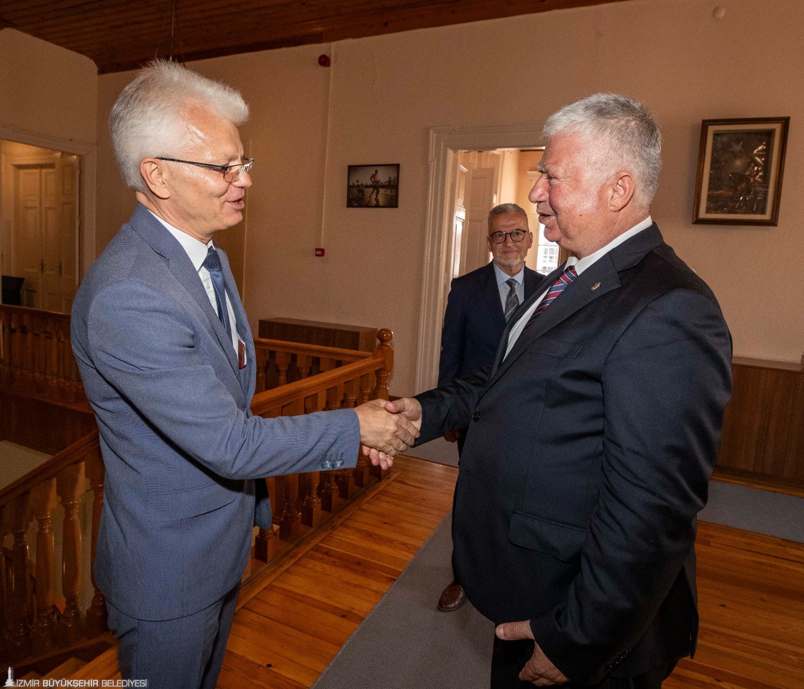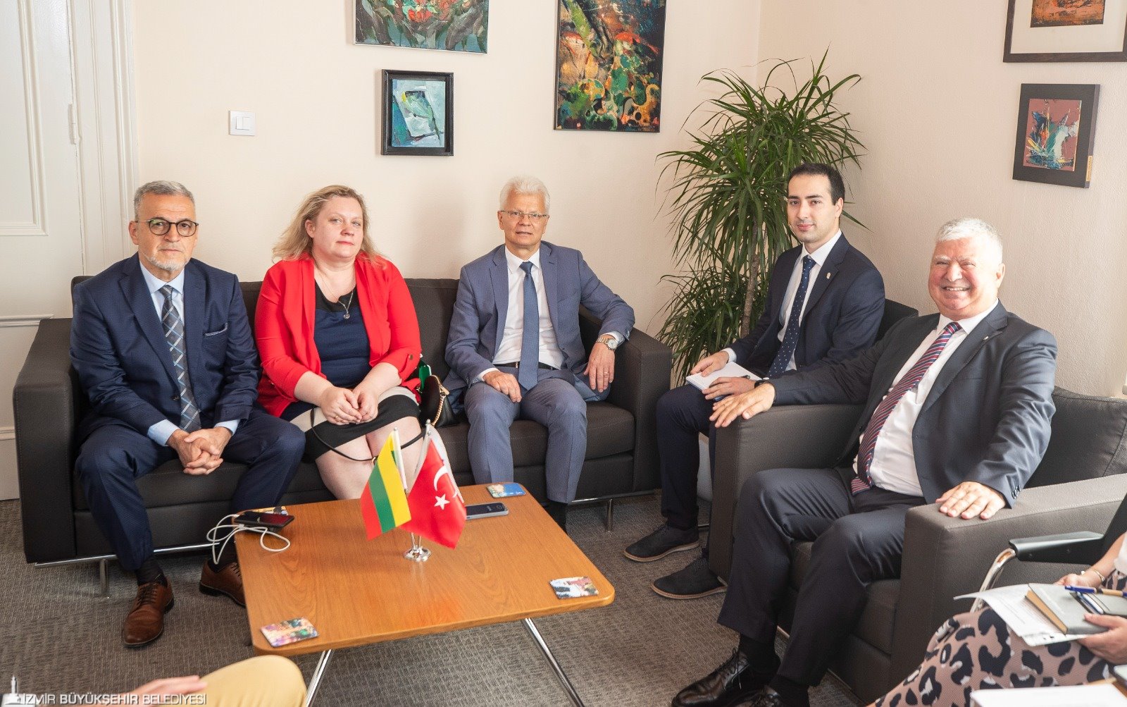 Litvanya’nın Ankara Büyükelçisi Ricardas Degutis, İzmir Büyükşehir Belediyesi’ni ziyaret etti. Konuk büyükelçiyi Başkan Vekili Mustafa Özuslu ağırladı. Ziyarette İzmir Büyükşehir Belediyesi Başkan Danışmanı Onur Eryüce, İzmir Büyükşehir Belediyesi Dış İlişkiler ve Turizm Dairesi Başkanı Gökçe Başkaya, İZFAŞ Uluslararası İlişkiler Koordinatörü Tuğçe Cumalıoğlu ve Litvanya Cumhuriyeti Fahri Konsolosu Mustafa A. Özsoy yer aldı.