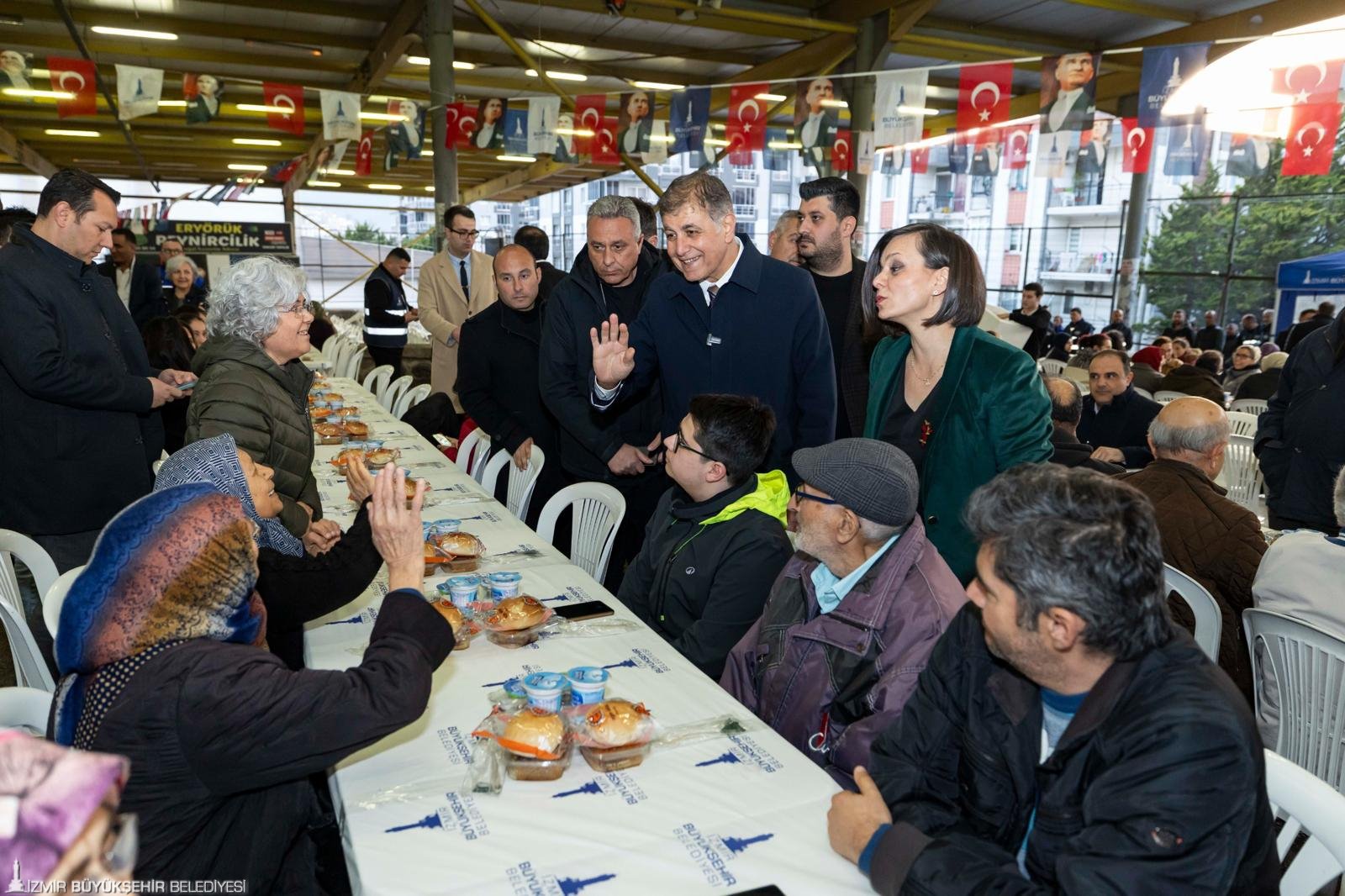 Karabağlar Belediye Başkanı Helil Kınay ise “Bu akşam bu sofrada umudumuzu paylaştık. Kadir Gecesi’nde dualarımızın kabul olmasını diliyorum. Ülkemizin güzellikleri daim olsun. Ramazanın bereketiyle birlikte gelmesini diliyorum” diye konuştu.
