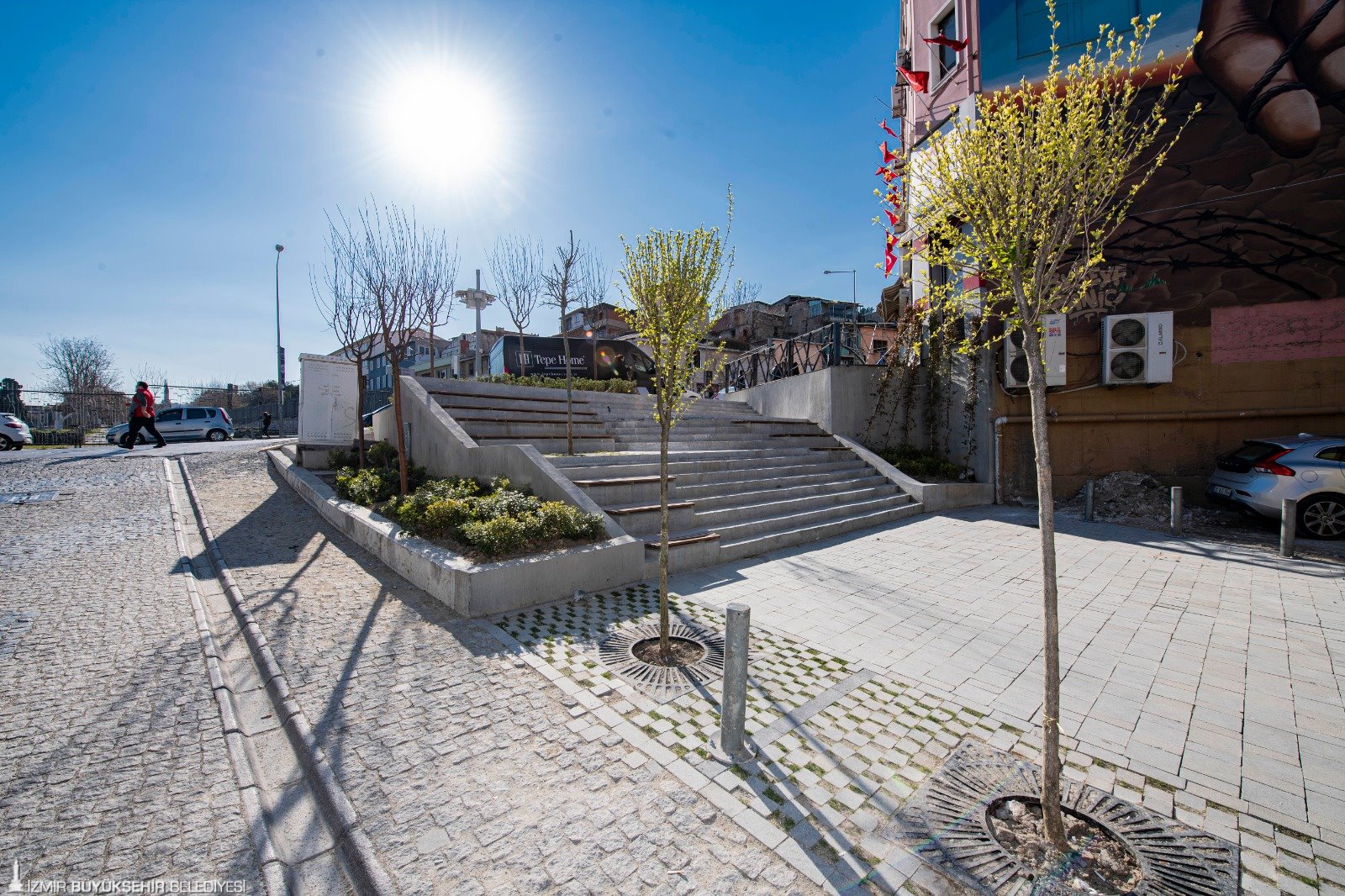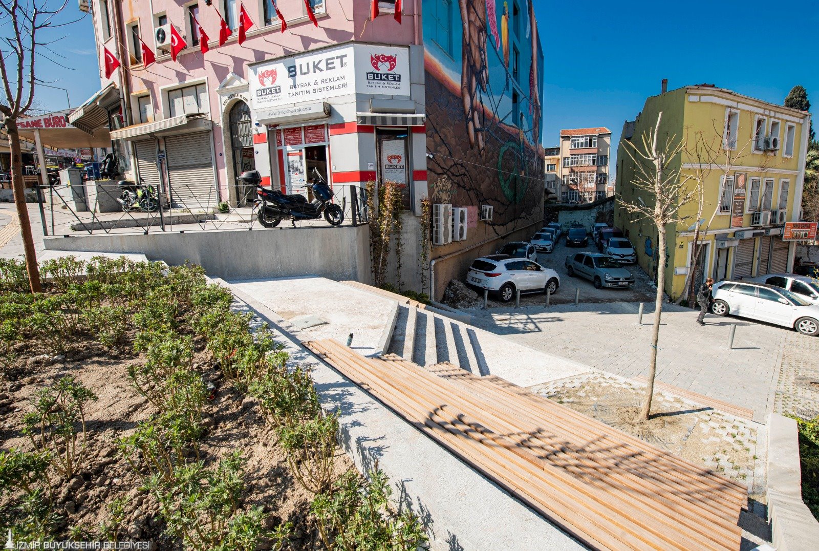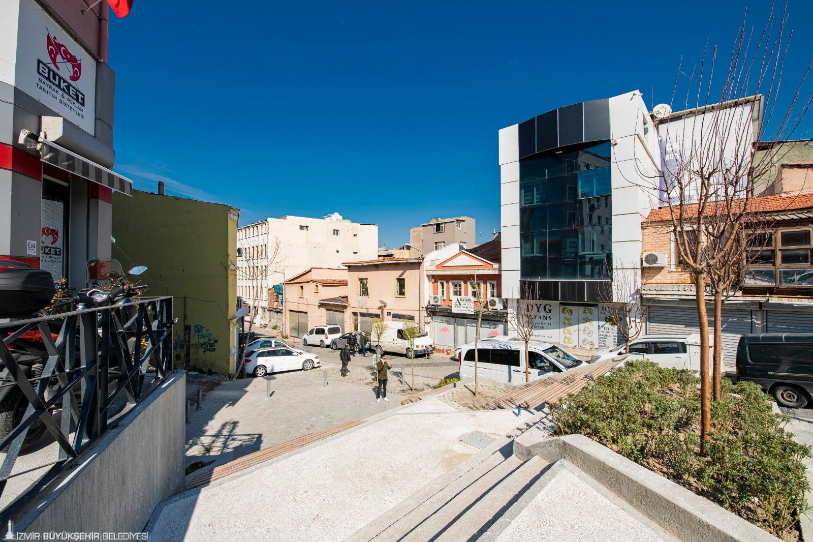 Konak ile Kadifekale arasındaki tarihi aksı canlandırmayı ve Kemeraltı’nı korumayı hedefleyen İzmir Büyükşehir Belediyesi, bu bölgedeki Azizler Sokağı’nı modern bir park haline getirdi. Sokak, oturma birimleri ve peyzajıyla bölgeye değer katan bir görünüme kavuşturuldu.