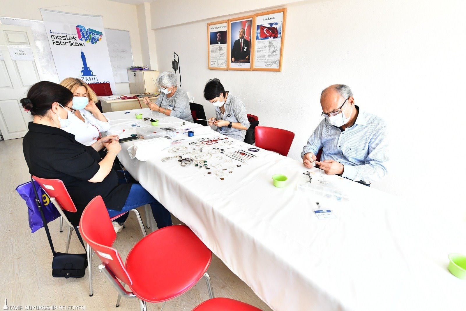 İzmir Büyükşehir Belediye Başkanı Tunç Soyer’in kentte refahı büyütme ve adil paylaştırma hedefi doğrultusunda Meslek Fabrikası İzmirlilere iş, aş ve umut olmaya devam ediyor. 75 farklı branştaki meslek eğitimleriyle 15 yılda 90 bin kursiyerin yararlandığı “bacasız fabrika”, pandemi döneminin ardından yüz yüze eğitimleri başlattı. Yeni dönemde butik çikolata kursundan bilgisayar sistem bakım onarımına, işaret dili tercümanlığından adli kalem işlerine, ürün fotoğrafçılığından yöresel gıda ürünlerinin yapımına kadar farklı branşlarda açılan meslek kursları 22 merkezde devam ediyor.