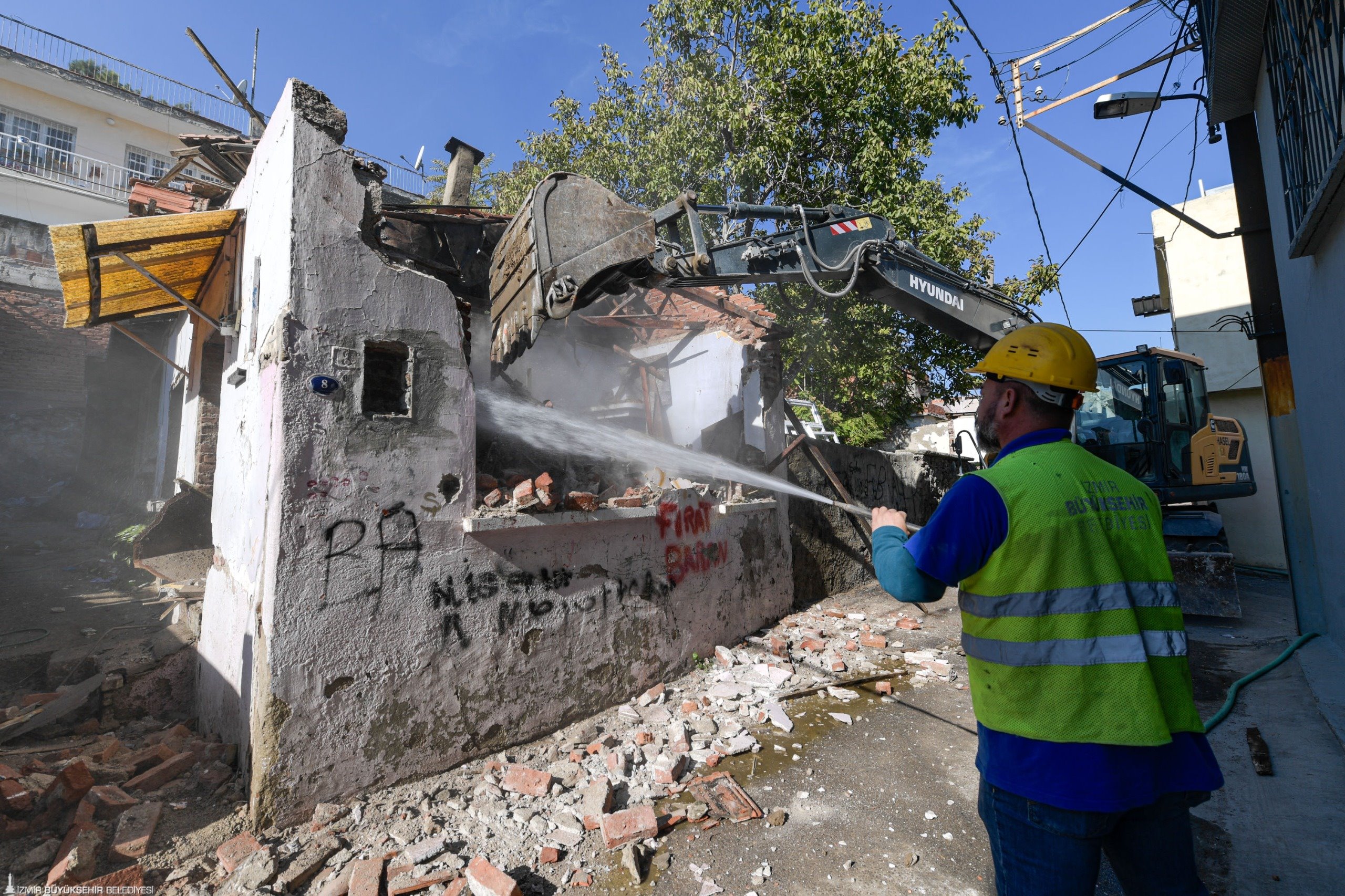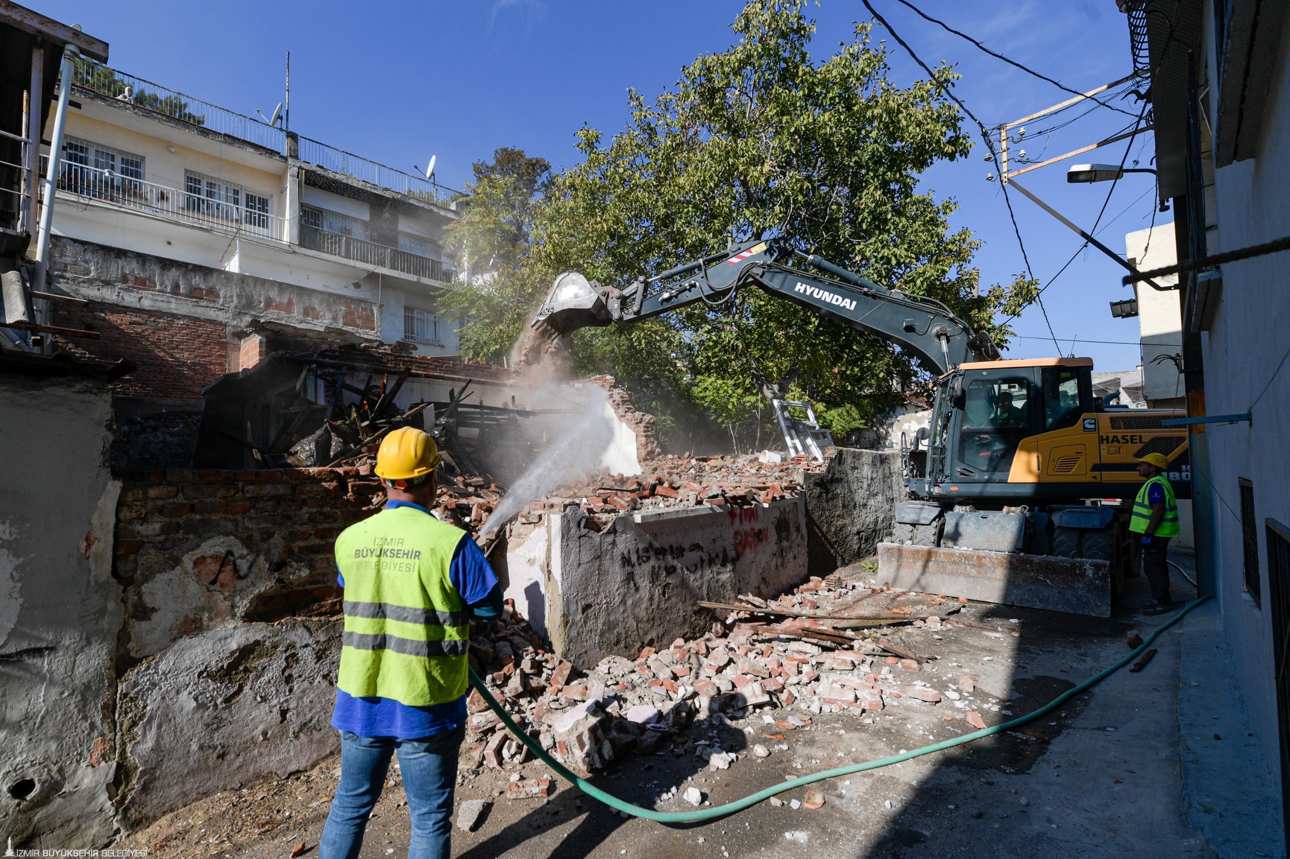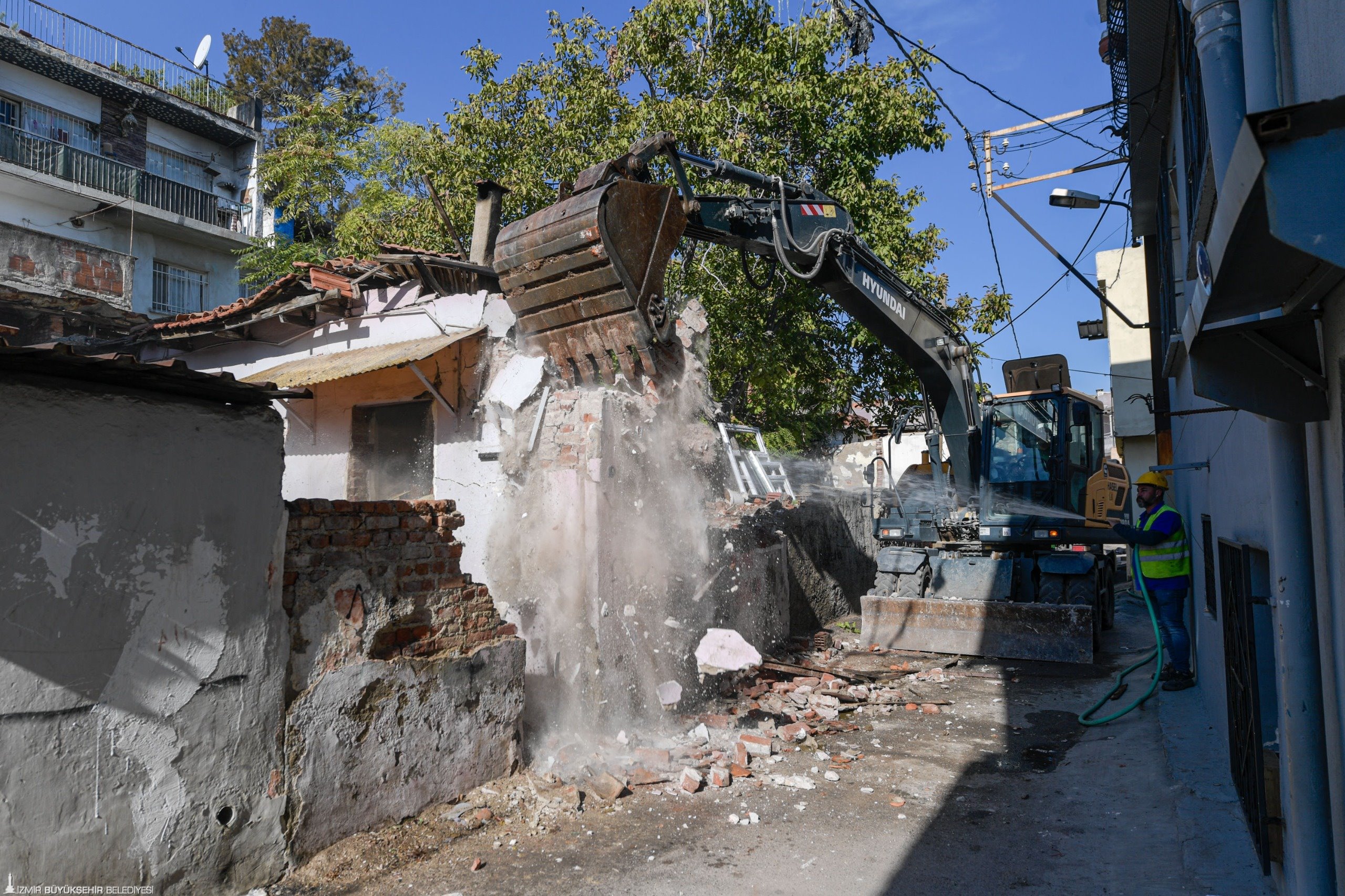 İzmir Büyükşehir Belediyesi, Ballıkuyu Kentsel Dönüşüm ve Gelişim Alanı içinde yer alan 1090 Sokak’taki güvenlik sorunu oluşturan terk edilmiş iki binayı yıktı. Bölge halkının can ve mal güvenliğini sağlamak için yürütülen çalışmalarda aynı durumdaki toplam 360 yapının yıkım işlemi yapılacak.