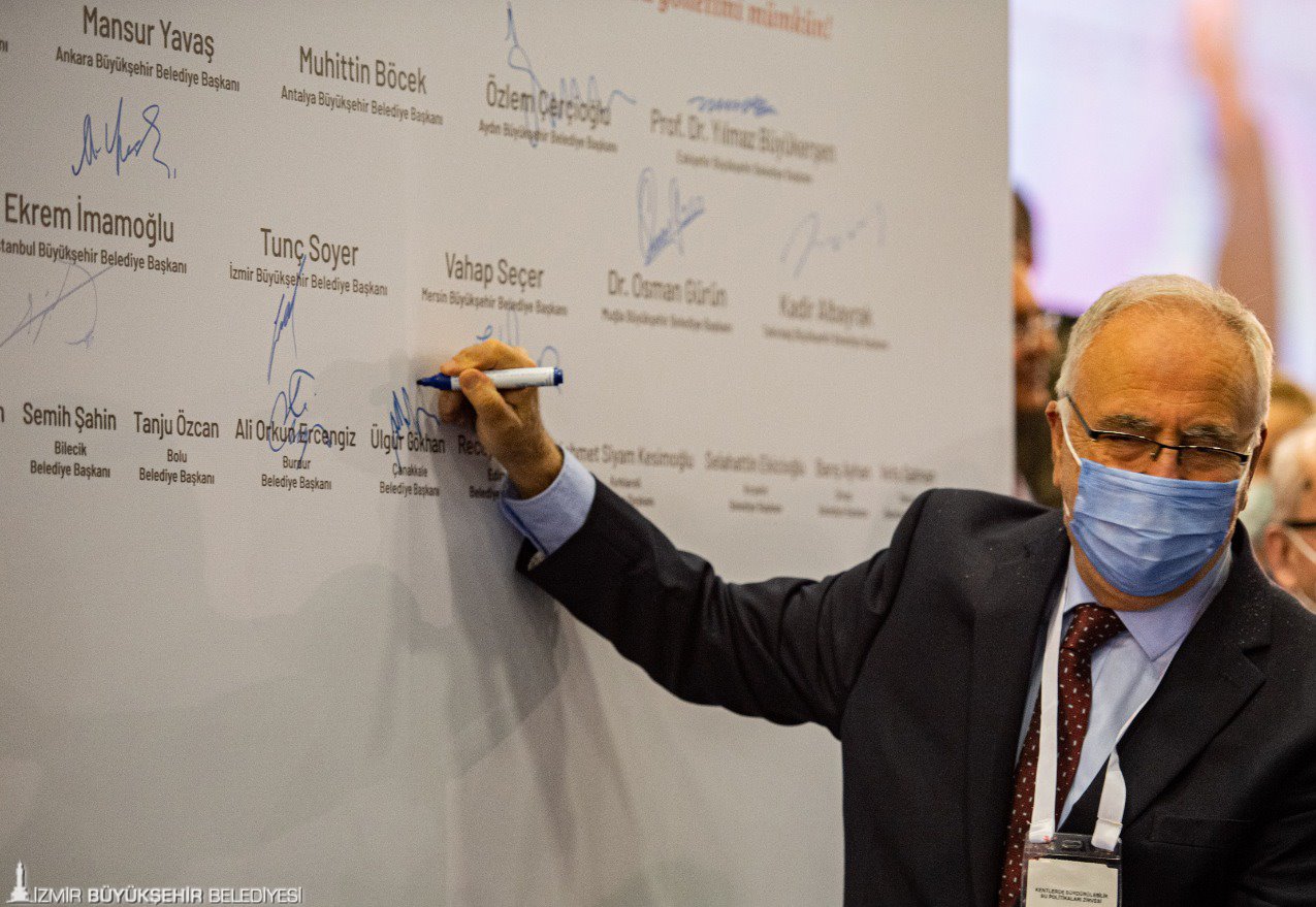 Manifestoyu Adana Büyükşehir Belediye Başkanı Zeydan Karalar, Ankara Büyükşehir Belediye Başkanı Mansur Yavaş, Antalya Büyükşehir Belediye Başkanı Muhittin Böcek, Aydın Büyükşehir Belediye Başkanı Özlem Çerçioğlu, Eskişehir Büyükşehir Belediye Başkanı Yılmaz Büyükerşen, Hatay Büyükşehir Belediye Başkanı Lütfi Savaş, İstanbul Büyükşehir Belediye Başkanı Ekrem İmamoğlu, Mersin Büyükşehir Belediye Başkanı Vahap Seçer, Muğla Büyükşehir Belediye Başkanı Osman Gürün, Tekirdağ Büyükşehir Belediye Başkanı Kadir Albayrak’ın yanı sıra Ardahan Belediye Başkanı Faruk Demir, Artvin Belediye Başkanı Demirhan Elçin, Bilecik Belediye Başkanı Semih Şahin, Bolu Belediye Başkanı Tanju Özcan, Burdur Belediye Başkanı Ali Orkun Ercengiz, Çanakkale Belediye Başkanı Ülgür Gökhan, Edirne Belediye Başkanı Recep Gürkan, Kırklareli Belediye Başkanı Mehmet Siyam Kesimoğlu, Kırşehir Belediye Başkanı Selahattin Ekicioğlu, Sinop Belediye Başkanı Barış Ayhan ve Yalova’nın seçilmiş Belediye Başkanı Vefa Salman, Edirne Belediye Başkanı Recep Gürkan imzaladı.