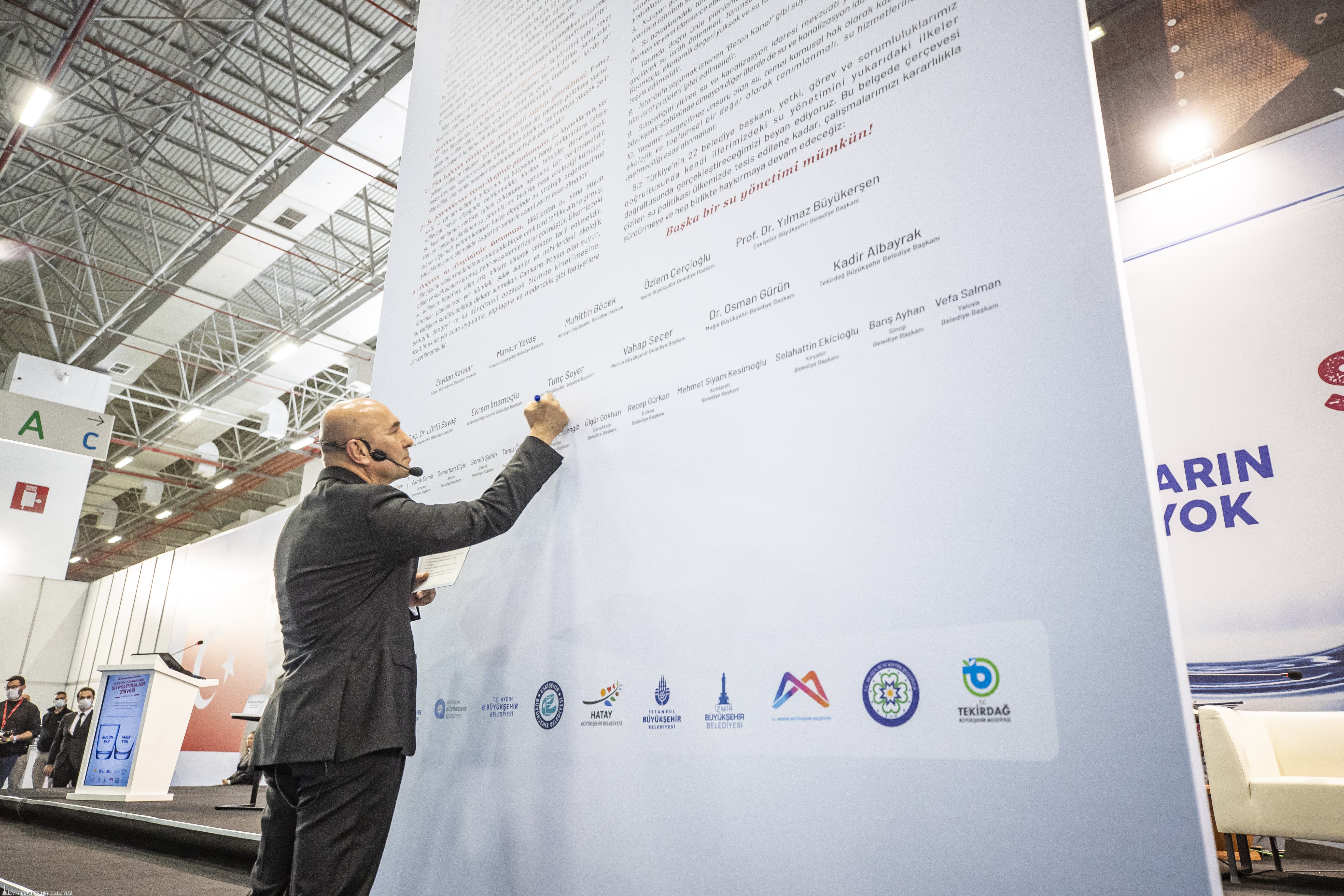 CHP’li belediye başkanları manifestoya imza atarak, manifestonun çerçevesini çizdiği su politikasına uymayı taahhüt etti.