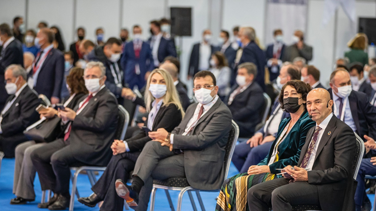 İstanbul Büyükşehir Belediye Başkanı Ekrem İmamoğlu: “Aslında ülkemizin her sabah gündeminin yoğun değiştiği bir ortamda bugün kıymetli bir konuyu konuşmaya geldik. İzmir’de olmaktan keyif ve onur duyuyorum. Meselemiz çok önemli. Ülkemizin yüzde 65’ini temsil eden bir nüfusa sahibiz. Bugünkü mesele herhangi geçici bir mesele değil. Ülkemizde birçok sorun var. Bunların hepsini çözebiliriz. Su meselesi öyle değil. Bu süreç isteyen bir mesele… Su meselesinde büyük bir iradeyi hep birlikte ortaya koyma sorumluluğumuz var. Dünyanın birçok yerinde kuraklık sorunu var. Göç dalgası var. Su kaynaklarının ülkemizde tahrip edilmesine yönelik hiçbir hamlede bulunmamalıyız, bulunanlara da izin vermemeliyiz. Milletle inatlaşılmaz, derler doğayla hiç inatlaşılmaz. Doğaya karşı bir takım hamlelerde bulunma ciddi hasarlar yaratıyor. Bunlardan bir tanesini İstanbul’da yaşamaktayız. İstanbul’da inşa edilmek istenen beton kanalı 16 milyon insanın hayatını negatif etkileyecek bir tehdittir bir ihanettir. Hep beraber seferberlik sürecini başlatmanın sorumluluğu taşıyoruz. Bunun başlangıç olduğunun bilinmesi lazım. Tüm kurum ve kuruluşların el birliğiyle sürece dahil olması gerekir. Yıllarca sürecek bir durum. Başarıya ulaştık deme şansımız yok. Böylesi önemli bir konuda iş birliği yapmanın onurunu yaşıyorum.”