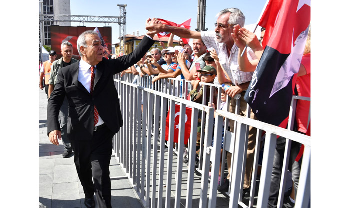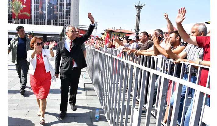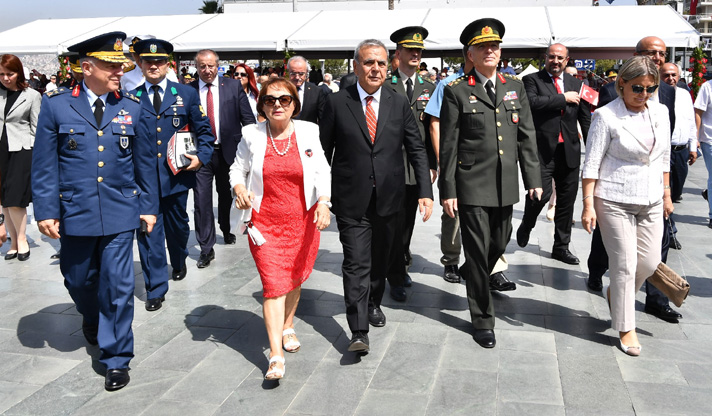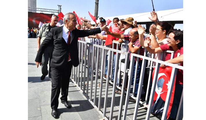 İzmir’in 95. kurtuluş yıldönümü etkinlikleri kapsamında Cumhuriyet Meydanı’nda düzenlenen tören coşkulu ve dolu dolu bir programla gerçekleşti.İzmir Büyükşehir Belediye Başkanı Aziz Kocaoğlu, törene katılan İzmirlilere, “Atatürk ilkelerini yaşamayı ve yaşatmayı kutsal ve milli bir sorumluluk; 9 Eylül’e ve onun değerlerine sahip çıkmayı “boynunun borcu” bilen Sevgili İzmirliler, Sevgili Hemşehrilerim, bugün sadece topraklarımızın değil; varlığımızın, namusumuzun ve hürriyetimizin işgalden kurtarıldığı bir gün” diyerek seslendi.