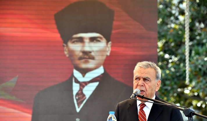Kurtuluş Savaşı’nı başlatan böylesine kahraman bir kentte yaşamanın gururunu yaşadıklarını dile getiren Başkan Kocaoğlu, konuşmasına şöyle devam etti: “İzmirliler olarak, Atatürk’ün “hemşehrisi” olmaktan müthiş onur duyuyoruz. Atamıza sahip çıkmayı, her şeyden önce bir yurttaşlık görevi olarak görmekteyiz. Evet; İzmirli, her şeyden önce Atatürkçüdür. İzmirli vatanseverdir, merttir. Efedir İzmirli, efe! Ülkesi ve ilkesi için ne lazımsa onu yapar; gözünü kırpmadan! Ama aynı ölçüde barışa ve özgürlüğe düşkündür. Aydındır, uygardır. Demokrattır İzmirli, hiç kimsenin olmadığı kadar..”