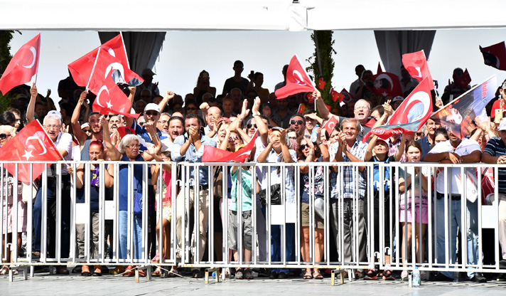 İzmir’in ve Türkiye’nin kurtuluş gününde, 9 Eylül’de; Atatürk’ü silmek, unutturmak ve itibarsızlaştırmak isteyenlere Atatürk’e yapılan saldırılara kol kanat gerenlere, Atatürk’ün kenti İzmir’den önemli mesajlar veren Başkan Kocaoğlu, konuşmasını şöyle tamamladı: “Mustafa Kemal Atatürk, tam bağımsızlığın varlık sebebi; halk iradesinin, yurttaş özgürlüğünün teminatı, modernleşmeye dayalı çağdaş bir toplum olma iddiamızın en büyük dayanağıdır. Cumhuriyettir Mustafa Kemal Atatürk Cumhuriyet! Herkes bunu böyle bilmelidir! Ve “Yaşa Mustafa Kemal Paşa” dizeleriyle gönlümüze taht kurmuş İzmir Marşı, korkulacak, utanılacak, unutturulmak istenecek bir marş değildir. İzmir Marşı bu milletin gururudur, kıvancıdır, onurudur. İstedikleri kadar silmeye çalışsınlar; biz Mustafa Kemal Paşa’nın adını o mücevher taşa defalarca yazacağız. Allah’ından utansın dönenler geri..Ama biz dönmeyiz bu yoldan! Doğum günün kutlu olsun İzmir! Sen çok yaşa, çok yaşa İzmir!