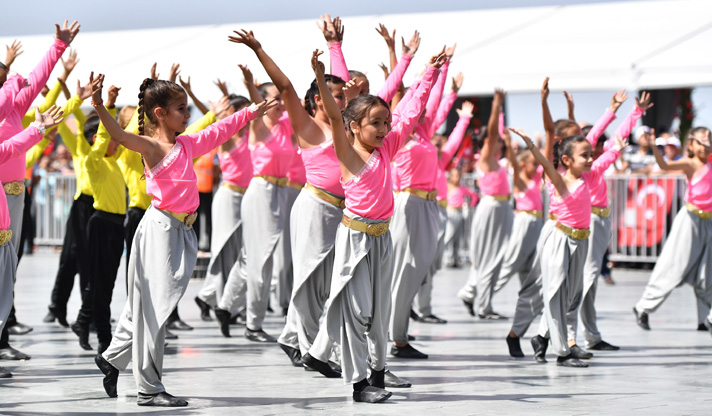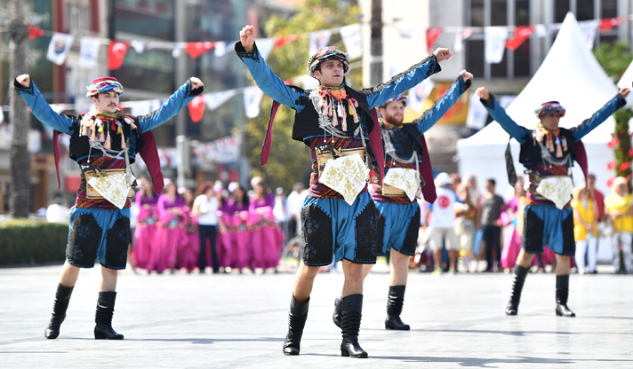 Kocaoğlu’nun konuşmasının ardından şefliğini Hüseyin Çebi’nin yaptığı Kent Orkestrası sahne aldı. İzmirliler kent orkestrasının şarkıları eşliğinde coştu. İzmir Gültepe Nene Hatun Mesleki ve Teknik Anadolu Lisesi öğrencisi Can Ahmet Bingöl ve Atatürk Lisesi öğrencisi Öykü Turşucuoğlu günün anlam ve önemine uygun şiir okudu. Ege yöresi türküleri eşliğinde Gaziemir Belediyesi, Tire Belediyesi ve Seferihisar Belediyesi ekiplerinin sahnelediği halk oyunları seyircilerden büyük alkış alırken, İzmir Büyükşehir Belediyesi Dans ve Ritim Grubu gösterisi ile İzmir Büyükşehir Belediyesi Halk Dansları Topluluğu’nun Kafkas halk dansı izleyenleri büyüledi.