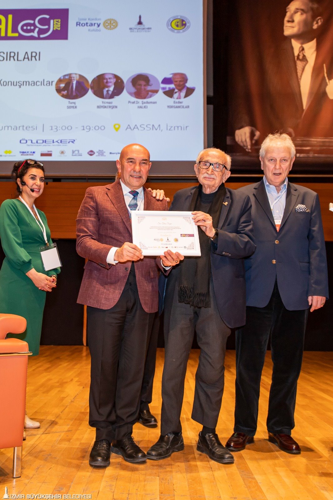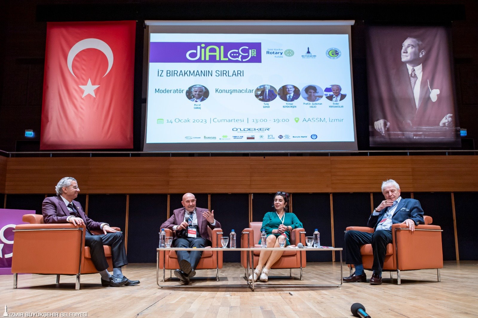 İzmir Büyükşehir Belediyesi, İzmir Atatürk Lisesi Mezunlar Derneği ve Kordon Rotary Kulübü’nün birlikteliğiyle cumhuriyetin yüzüncü yılı için düzenlenen “diALog 2023” panelinin “İz Bırakmanın Sırları” oturumuna katıldı. Ahmed Adnan Saygun Sanat Merkezi’nde (AASSM) düzenlenen, gelecek yüzyıl üzerine düşüncelerin tartışıldığı ve moderatörlüğünü İzmir Atatürk Lisesi Mezunlar Derneği Başkanı Murat Saraç’ın üstlendiği panele Prof. Dr. Şaduman Halıcı ile Ege Bölgesi Sanayi Odası (EBSO) Yönetim Kurulu Başkanı Ender Yorgancılar da katıldı.