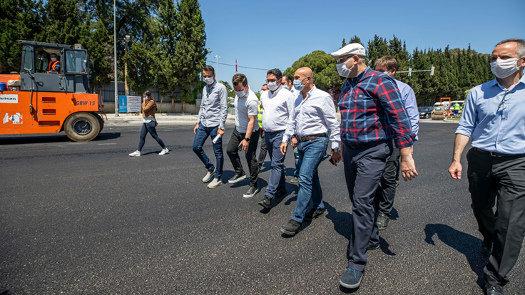 Başkan Soyer, “Daha kampanya döneminde rekor asfalt yılları olacağını söylemiştik. Çok şükür bu gerçekleşiyor. Hem ana arterlerde hem kent içindeki caddelerde çok özenli bir çalışma yürütülüyor. Koronavirüs çok büyük sıkıntılar yaşattı. Zorlu bir dönem geçiriyoruz ama bazı fırsatlar da var. Sokağa çıkma yasağı olmasaydı bu ana caddelerde bu kadar hızlı ve düzgün asfalt çalışması yapmak mümkün olmazdı. Başta Genel Sekreterimiz Buğra Gökçe olmak üzere Fen İşleri Daire Başkanımıza, İZBETON Genel Müdürümüze ve sahada çalışan tüm çalışma arkadaşlarımıza teşekkür ediyorum” dedi.