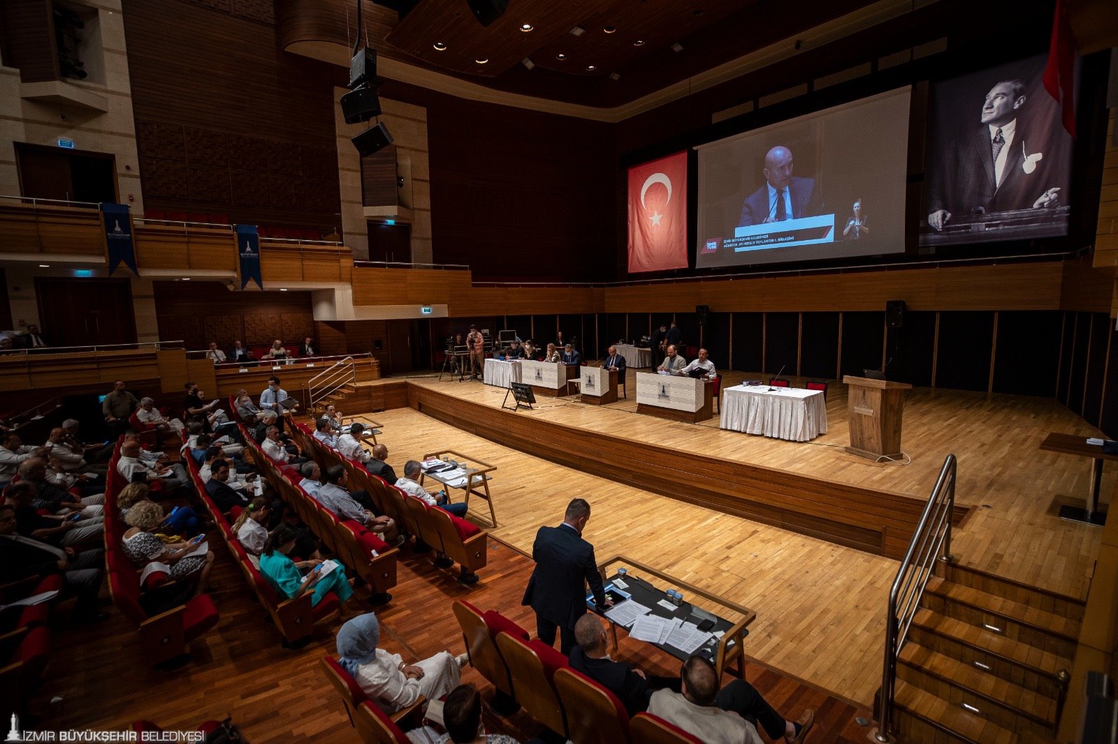 İzmir Büyükşehir Belediye Meclisi’nin Ağustos ayı birinci oturumu Ahmed Adnan Saygun Sanat Merkezi’nde (AASSM) yapıldı. İzmir Büyükşehir Belediye Başkanı Tunç Soyer başkanlığındaki mecliste Brezilya’ya ait dev uçak gemisi Nae Sao Paulo’nun Aliağa’da sökümüne dair kaygılar dile getirildi. Başkan Tunç Soyer ayrıca 10 Ağustos Çarşamba günü Smyrna Antik Kent’te düzenlenecek mecliste önümüzdeki üç ayın büyük organizasyonlarını da tanıtacağını açıkladı. Soyer, “Eylül, ekim ve kasım ayları çok yoğun geçecek. Birçok etkinlik var, organizasyon var. Hepsi ile ilgili size bilgi aktarmak istiyorum” dedi.