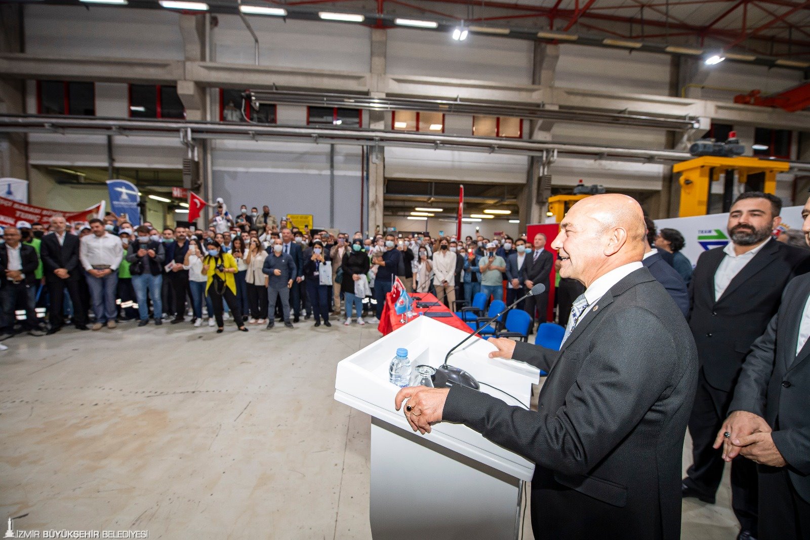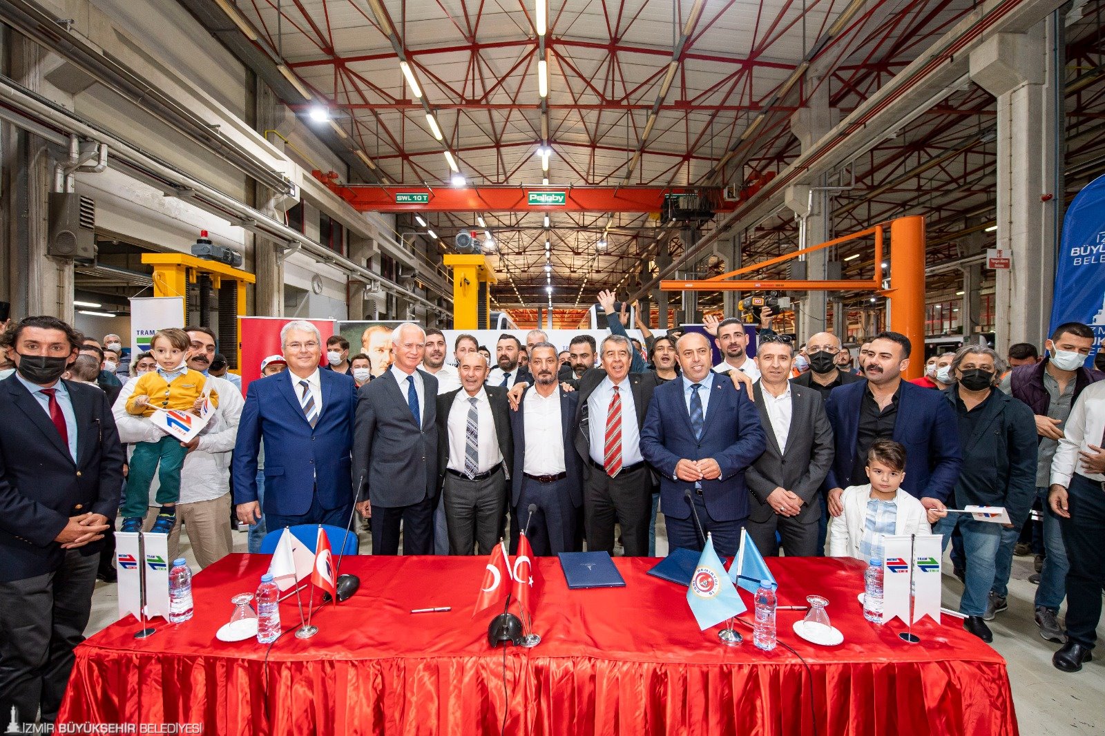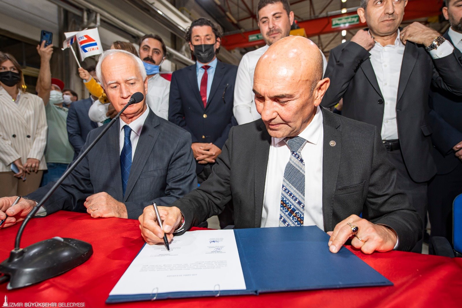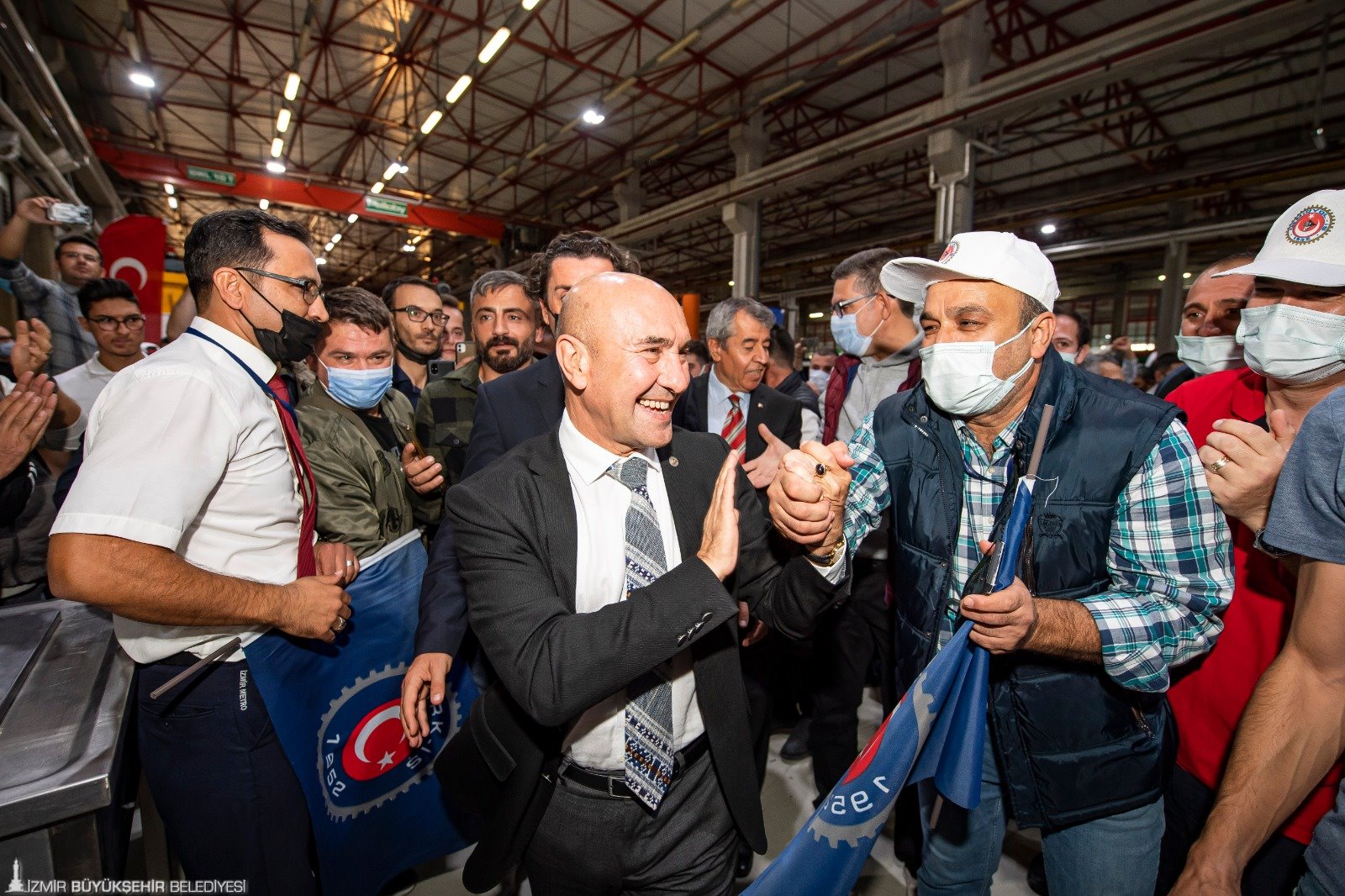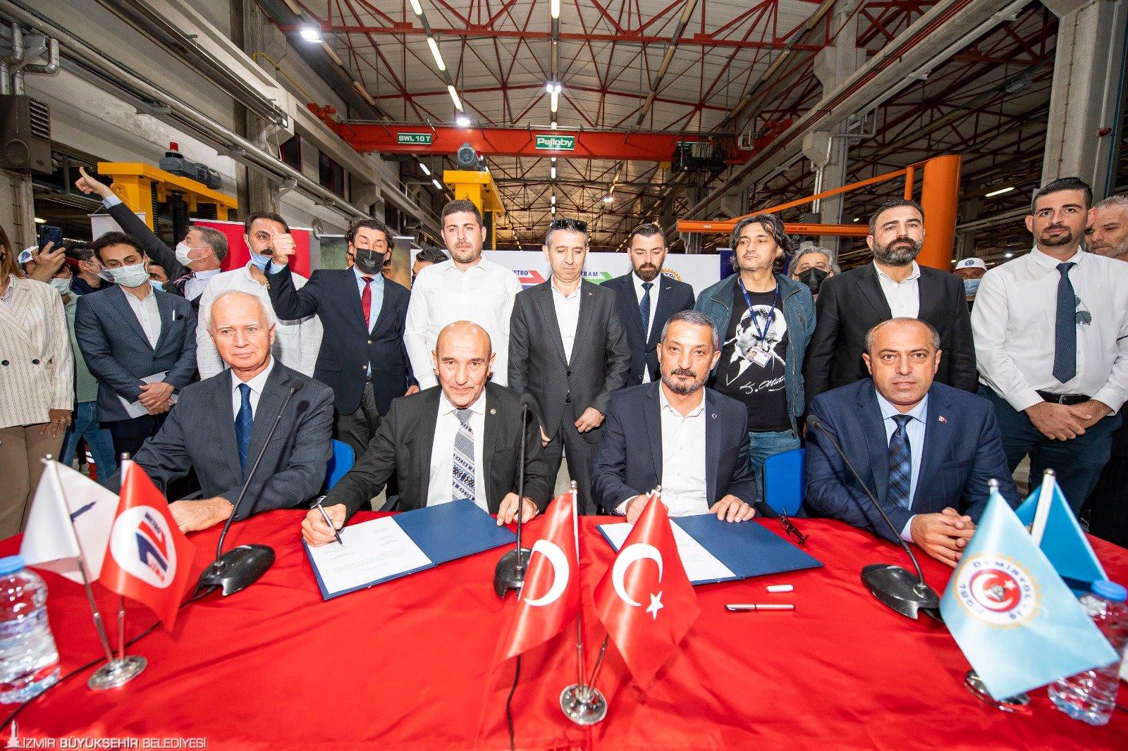 İzmir Büyükşehir Belediyesi'ne bağlı Metro A.Ş. ile Demiryol İş Sendikası arasındaki 9’uncu dönem toplu iş sözleşmesi, Halkapınar İzmir Metro A.Ş. Genel Müdürlüğü’nde düzenlenen törenle imzalandı. Metro ve tramvay işletmelerinde farklı iş kollarında 627 çalışanı kapsayan ve en düşük maaşın brüt 4 bin 856 TL’den, brüt 7 bin 553 TL’ye çıkarıldığı sözleşmenin imza törenine; İzmir Büyükşehir Belediye Başkanı Tunç Soyer, Demiryol- İş Sendikası İzmir Şube Başkanı Hamdullah Giral, Türk İş 3. Bölge Temsilcisi Hayrettin Çakmak, İzmir Metro A.Ş. Genel Müdürü Sönmez Alev, İzmir Metro A.Ş Yönetim Kurulu Başkanı Raif Canbek ile sendika temsilcileri ve işçiler katıldı. Başkan Tunç Soyer, “Eşit işe eşit ücret”, “Halkçı Başkan”, “Büyük Başkan” sloganlarıyla ve “Güzel günler göreceğiz” sloganları ile karşılandı.