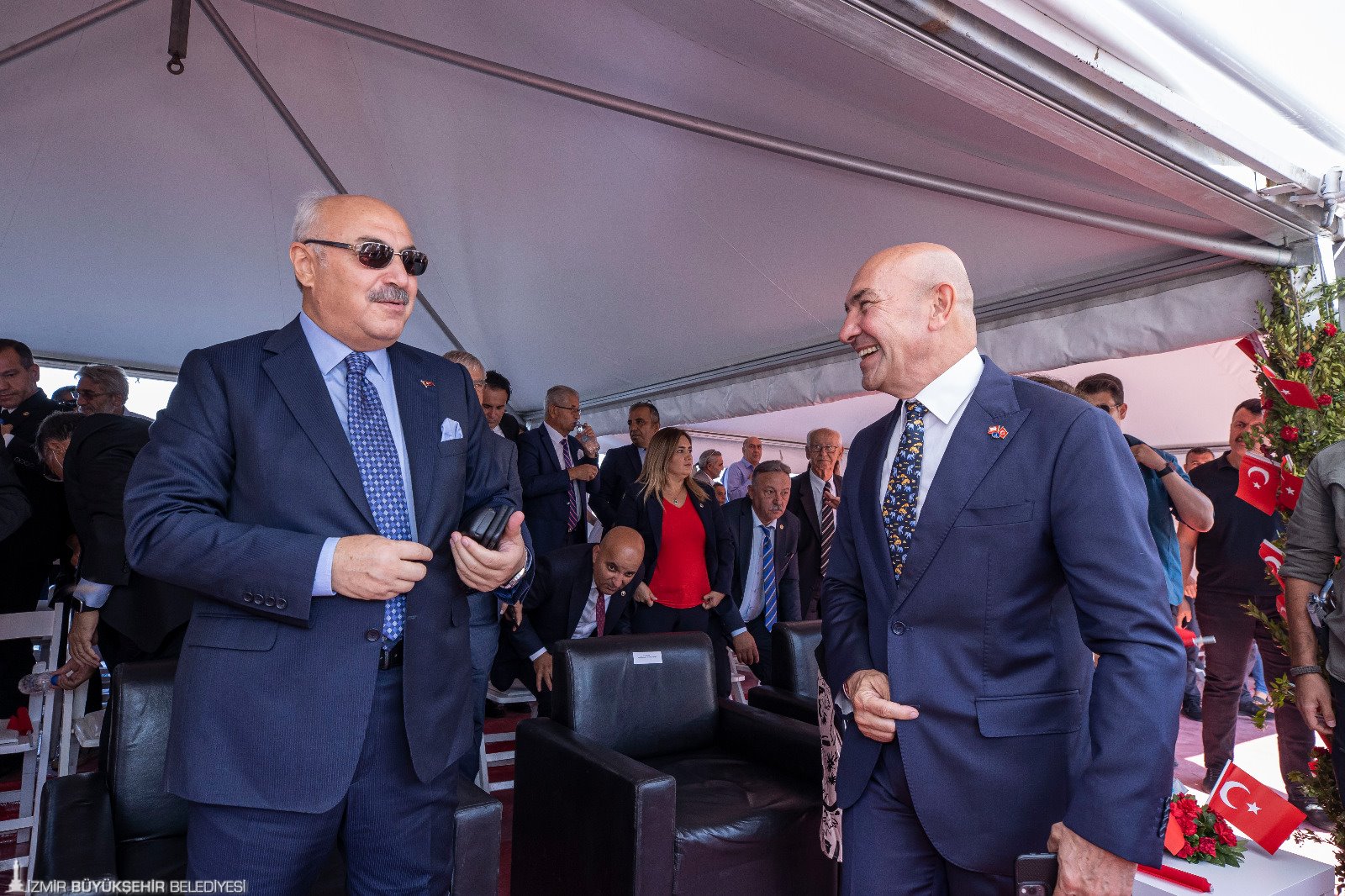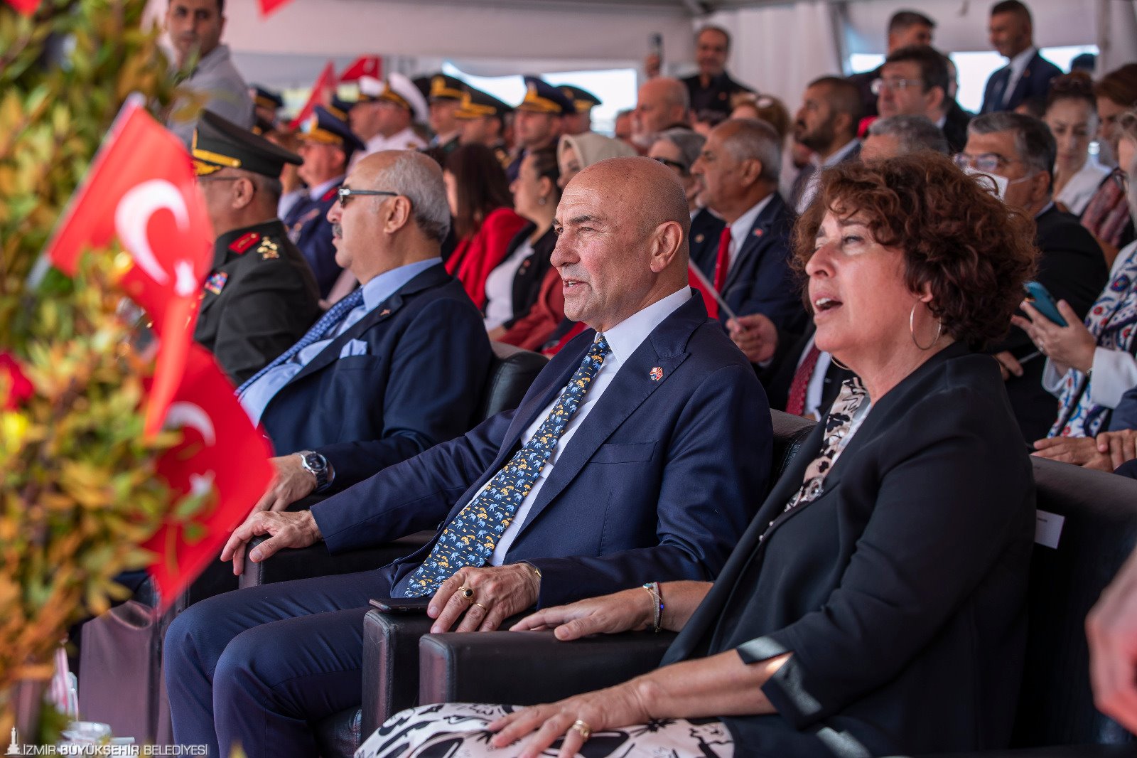 Törene İzmir Büyükşehir Belediye Başkanı Tunç Soyer’in yanı sıra eşi Neptün Soyer, İzmir Valisi Yavuz Selim Köşger, Ege Ordusu ve Garnizon Komutanı Korgeneral Kemal Yeni ve eşi Asuman Yeni, CHP İzmir milletvekilleri Kamil Okyay Sındır, Kani Beko, Mahir Polat, Tacettin Bayır, Sevda Erdan Kılıç, İYİ Parti İzmir Milletvekili Aytun Çıray, AK Parti İzmir Milletvekili Ceyda Bölünmez Çankırı, siyasi parti temsilcileri, büyükelçiler, rektörler, oda ve dernek başkanları ile yurttaşlar katıldı.