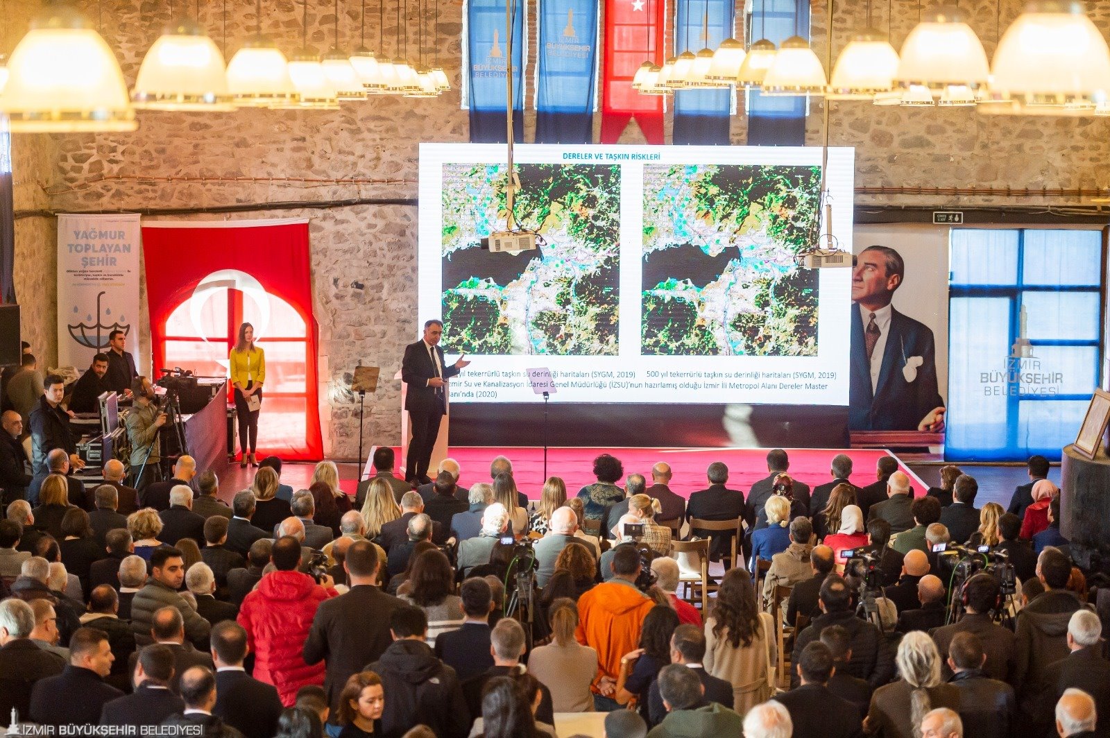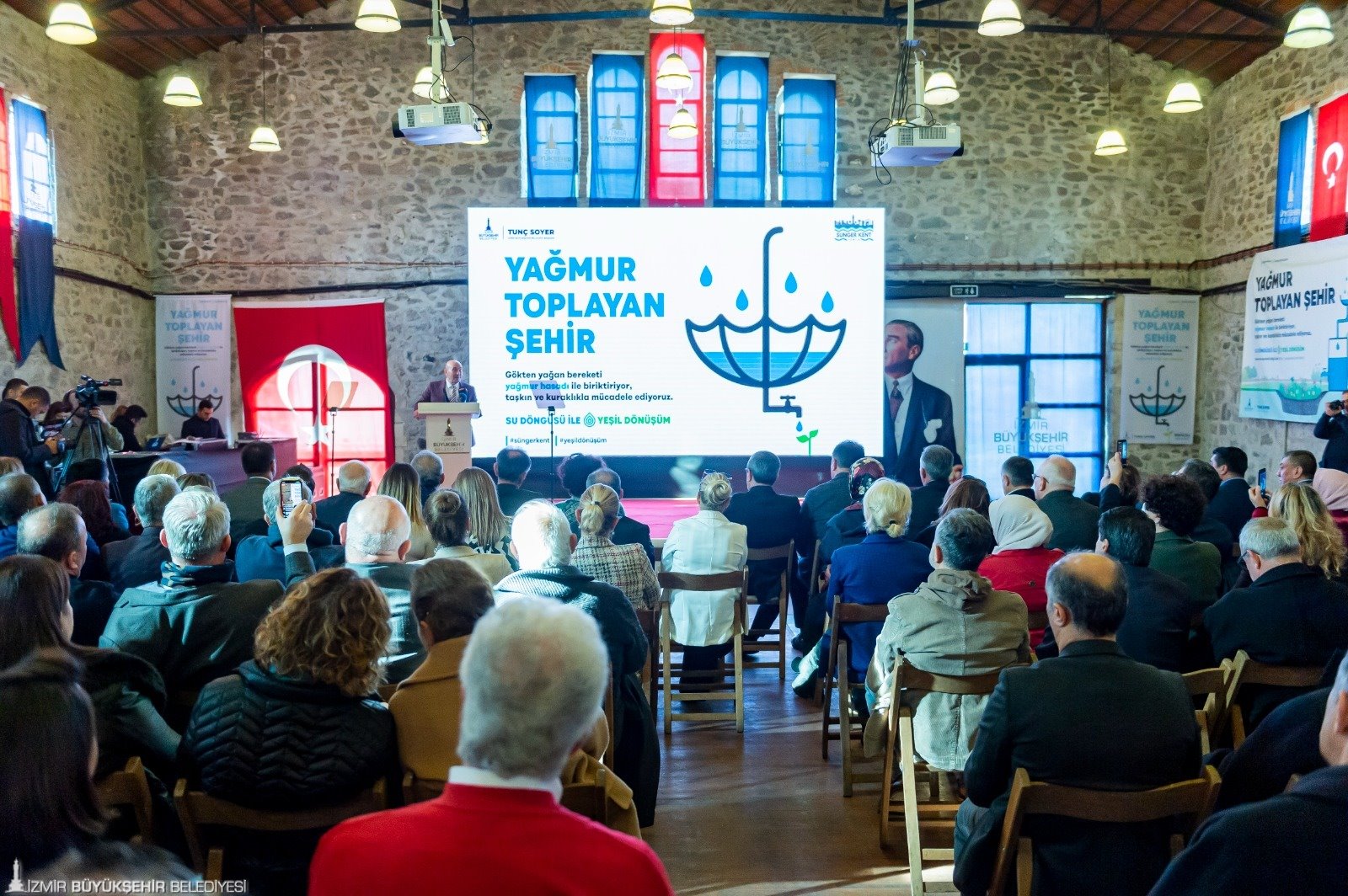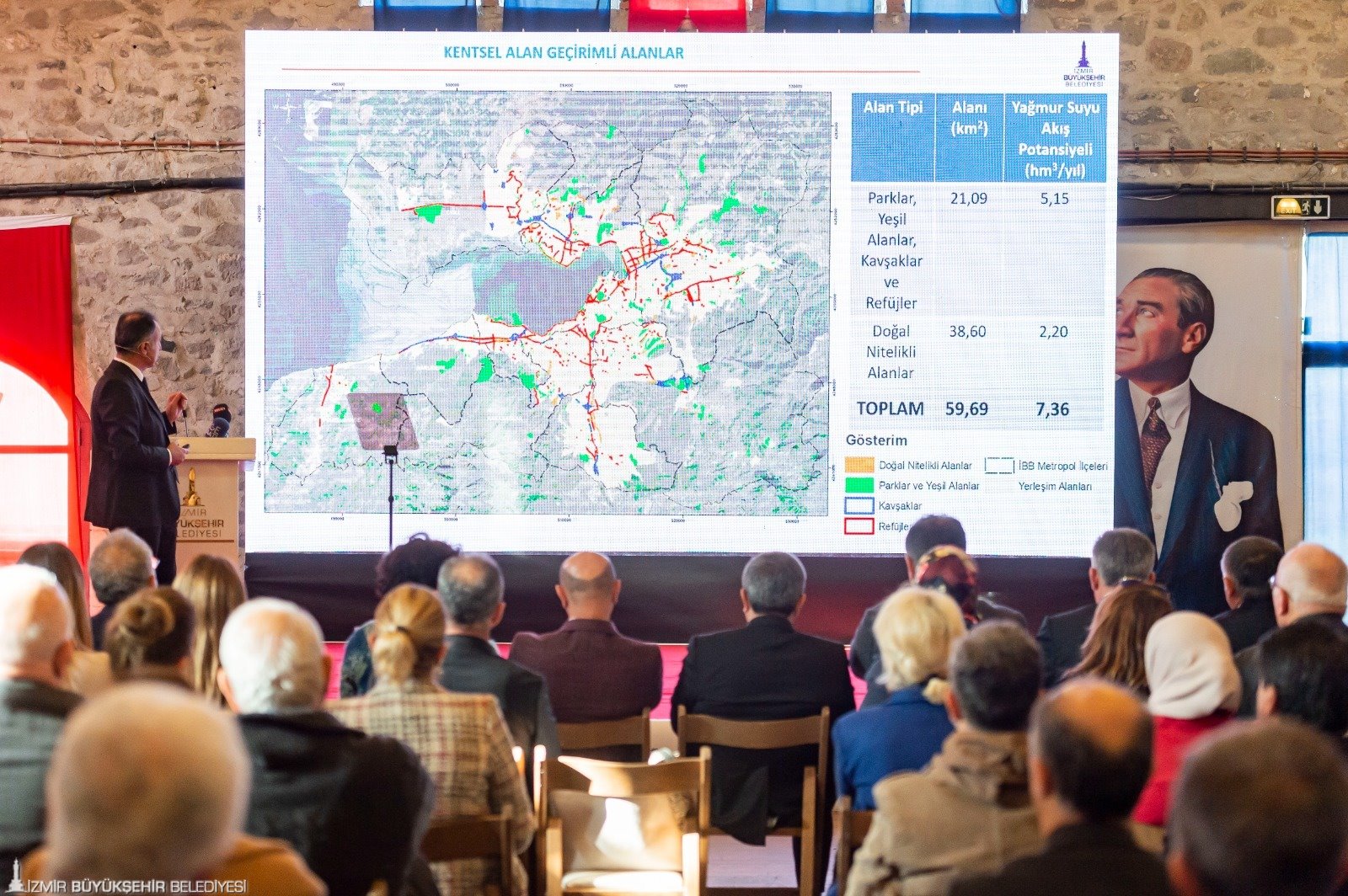 Türkiye’nin en kapsamlı yağmur suyu hasadı ile yeşil dönüşümü esas alan projenin anlatıldığı toplantıya İzmir Büyükşehir Belediye Başkanı Tunç Soyer’in eşi ve Köy-Koop İzmir Birlik Başkanı Neptün Soyer, Konak Belediye Başkanı Abdül Batur, Karşıyaka Belediye Başkanı Cemil Tugay, Güzelbahçe Belediye Başkanı Mustafa İnce, İzmir Büyükşehir Belediyesi’nin bürokratları, muhtarlar, apartman ve site yöneticileri, mülk sahipleri, resmi ve özel okulların temsilcileri katıldı.