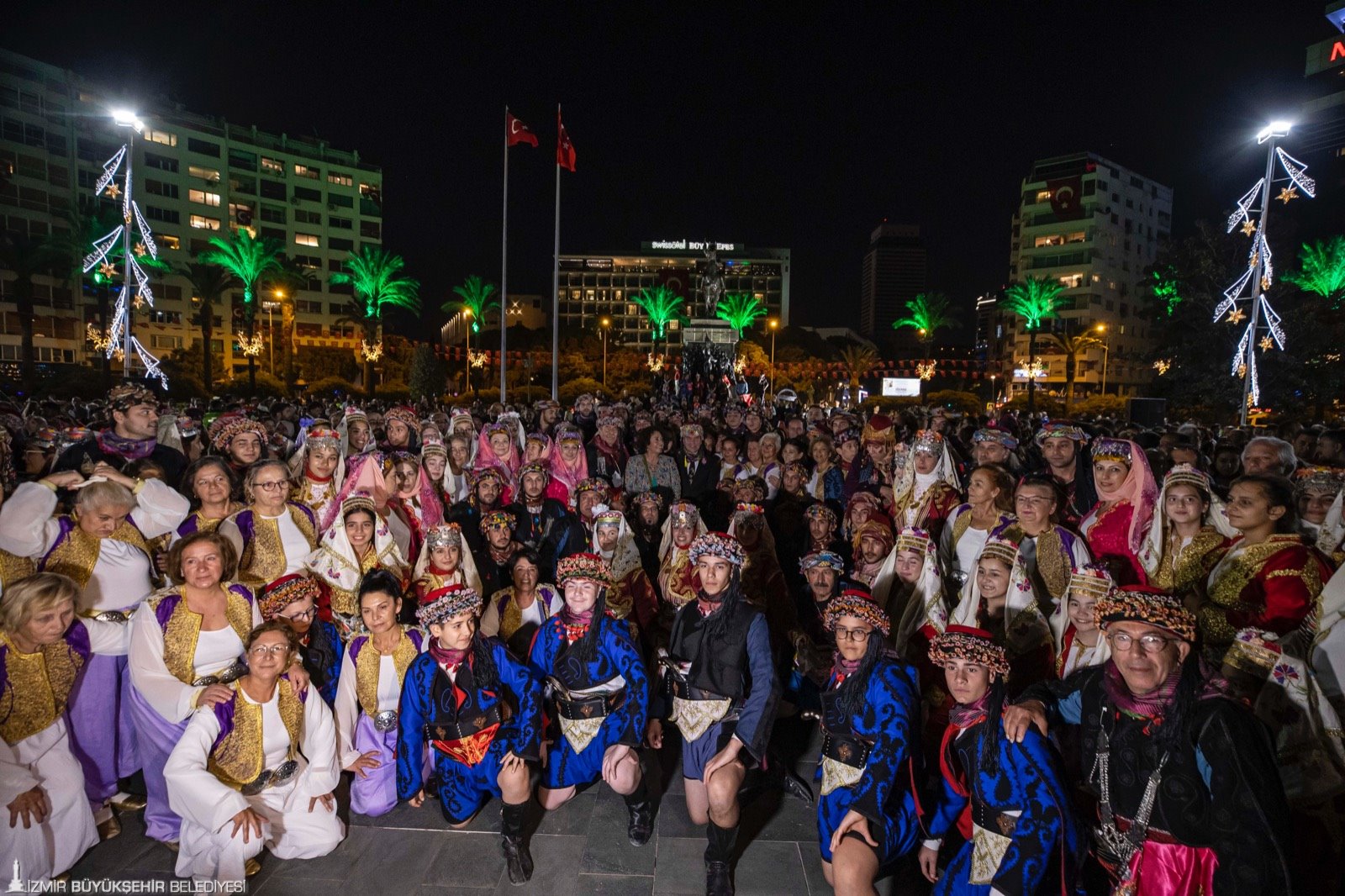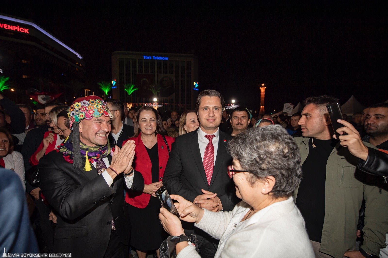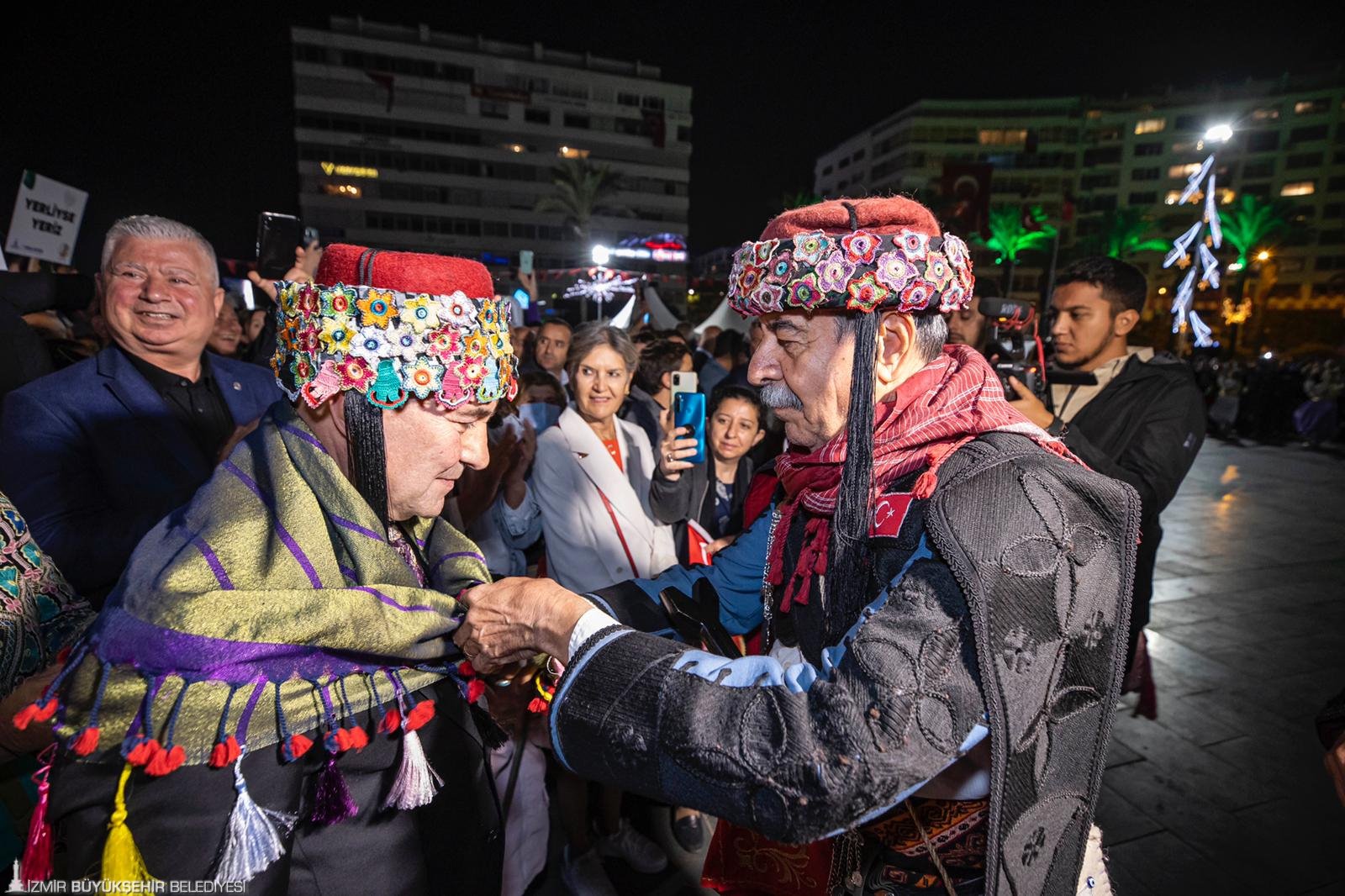 İzmir Büyükşehir Belediyesi düzenlediği etkinliklerle Cumhuriyet gururunu tüm kente yaydı. Kentteki coşku akşam saatlerinde doruğa çıktı. Cumhuriyet Meydanı’nda 9 ilçede 200 zeybek tarafından yapılan gösteriye İzmir Büyükşehir Belediye Başkanı Soyer de katıldı. Alkışlarla efeler arasındaki yerini alan Başkan Tunç Soyer, Atasının huzurunda diz vurdu.