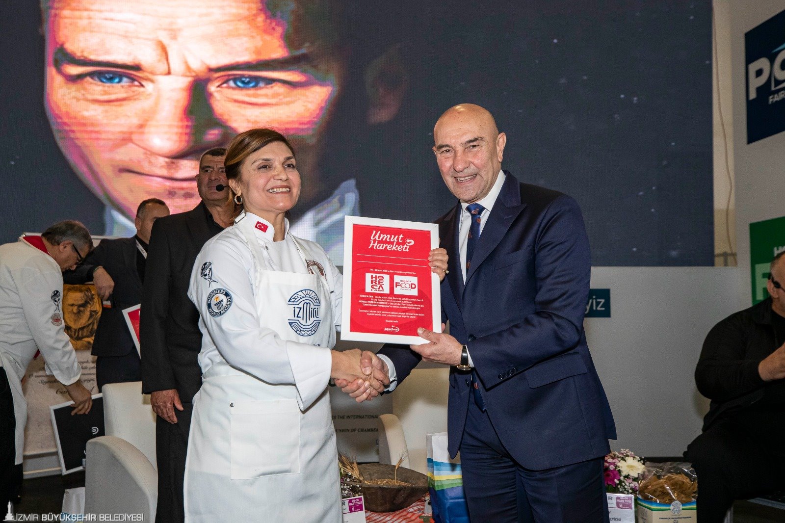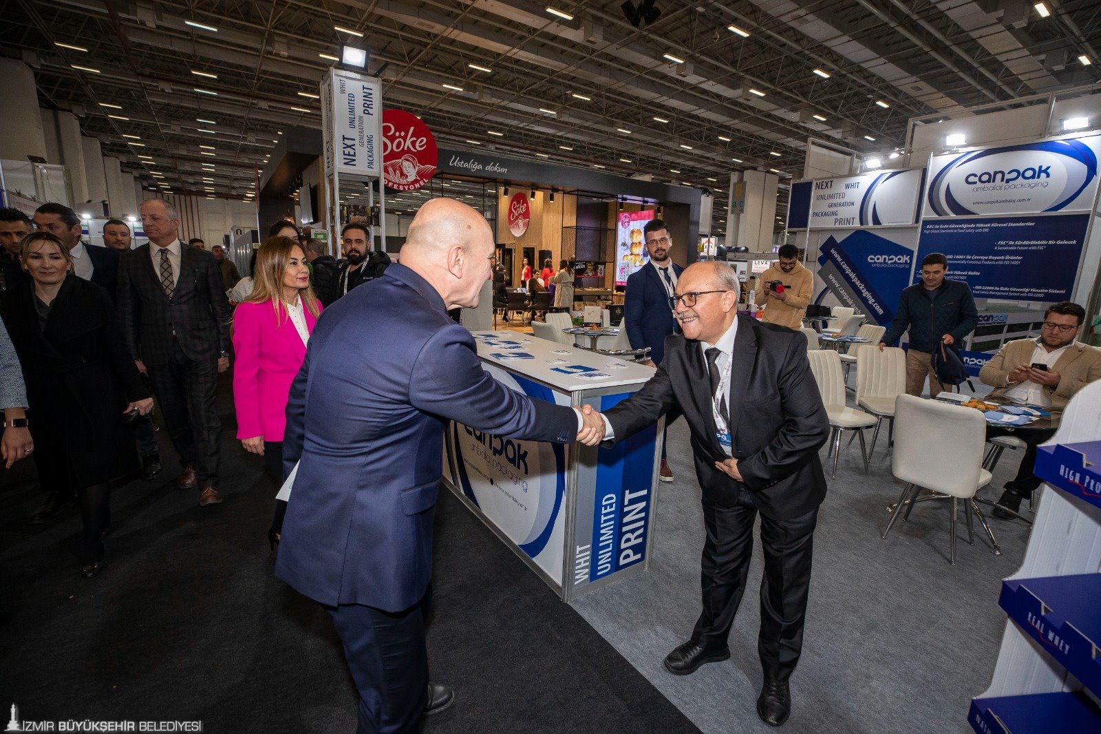 İzmir Büyükşehir Belediye Başkanı Tunç Soyer, Büyükşehir Belediyesi ev sahipliğinde GL Platform tarafından 6 Mart’ta Fuar İzmir'de açılışı yapılan dört fuarı ziyaret etti. 4. Uluslararası Otel Restaurant, Cafe, Çamaşırhane Ekipmanları, Ağırlama ve Konaklama Teknolojileri Fuarı (HORECA Fair), Uluslararası Ev Dışı Tüketim Fuarı (HORECA EDT), Ambalajlama Paketleme Teknolojileri Fuarı (Pack Fair Türkiye) ve Gıda Ürünleri Fuarı’nın (Food Fair Türkiye) katılımcıları ve ziyaretçileriyle bir araya gelen Başkan Soyer, başarılı bir fuar diledi.