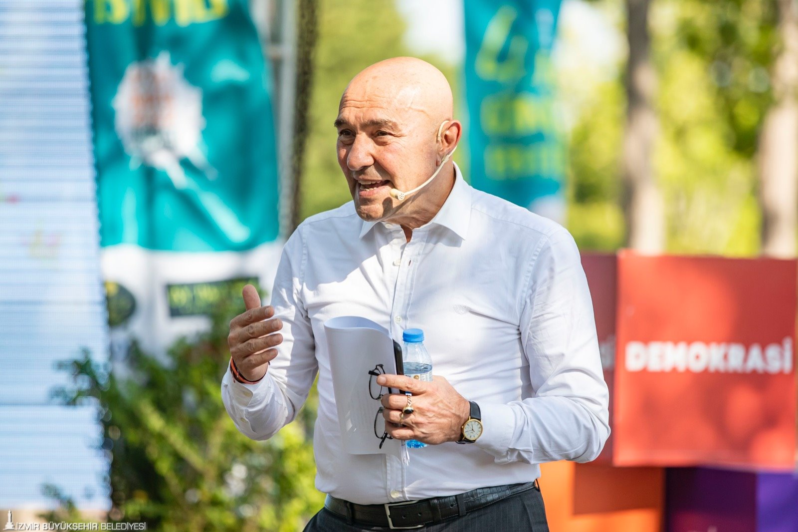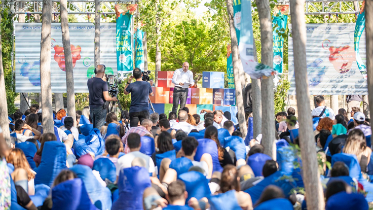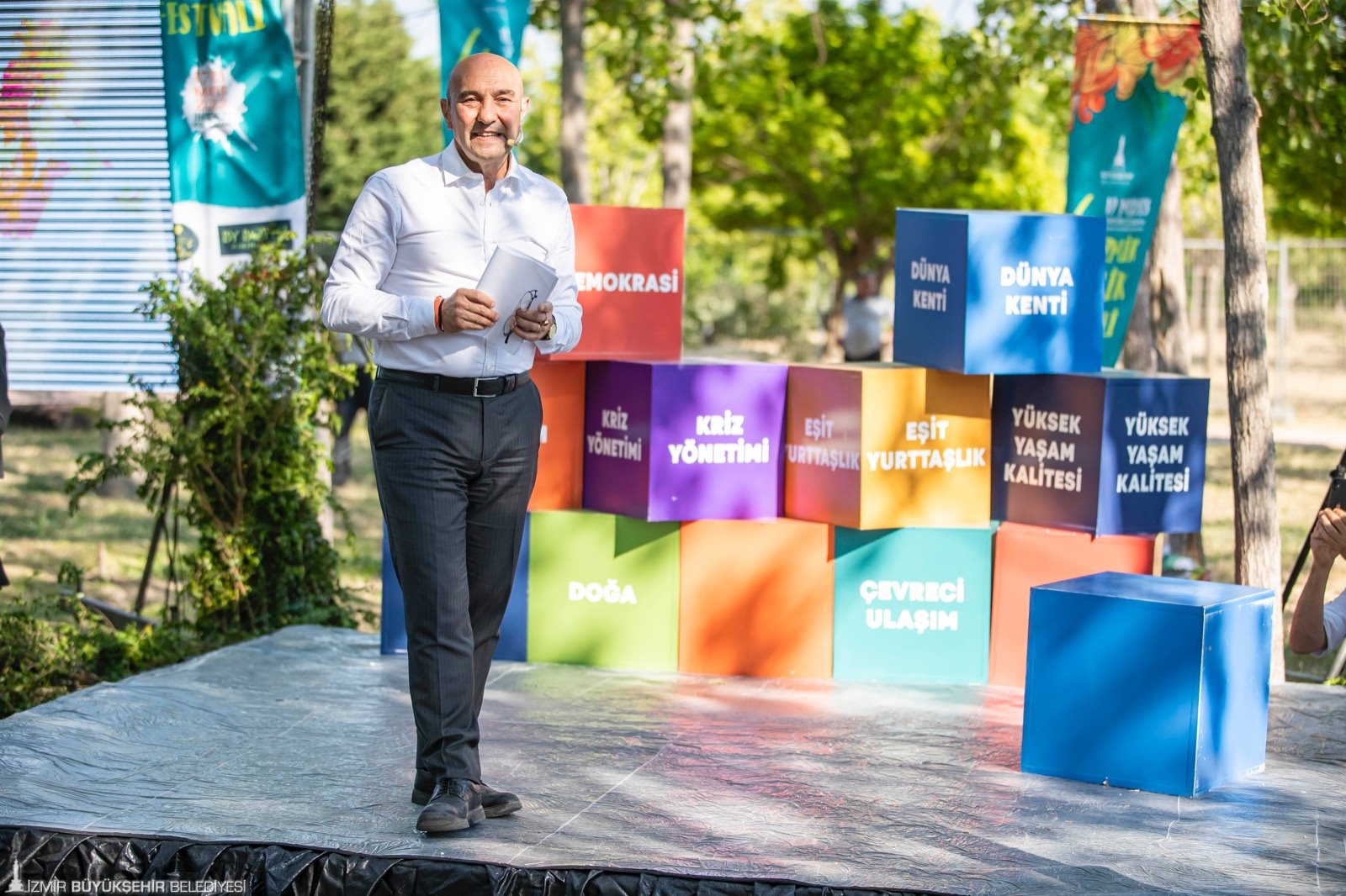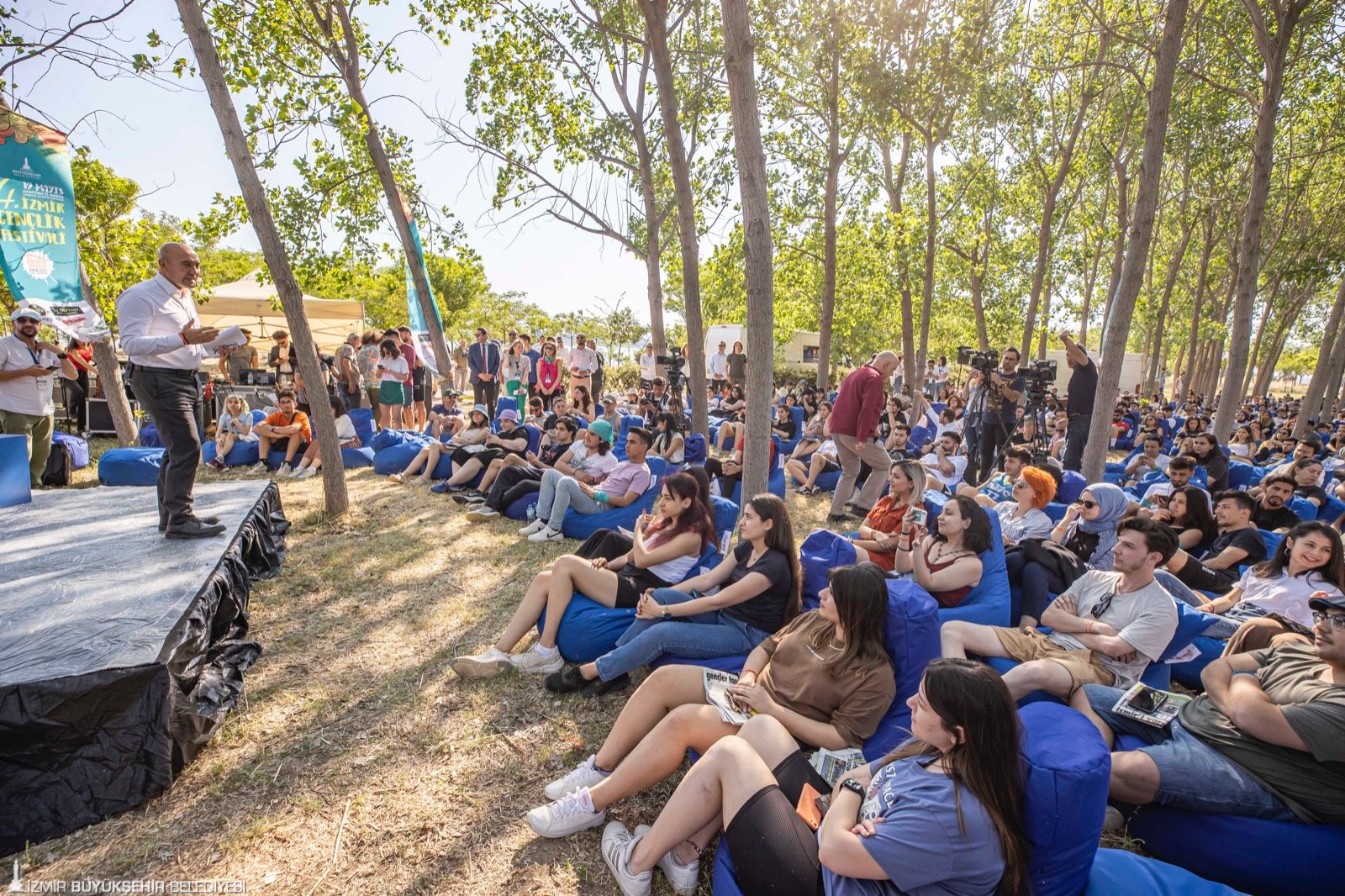 İzmir Büyükşehir Belediye Başkanı Tunç Soyer, İnciraltı Kent Ormanı’nda 17-21 Mayıs tarihleri arasında sürecek İzmir Gençlik Festivali’nin ilk gününde gençlerle ilgili yeni projelerin müjdesini verdiği bir tanıtım toplantısına ev sahipliği yaptı. Sunum öncesinde kamp alanını ziyaret eden Başkan Tunç Soyer, 46 şehir 84 üniversiteden kente gelen gençlerle sohbet etti. Başkan Soyer'in müjdeleri gençler tarafından alkışlarla karşılandı.
