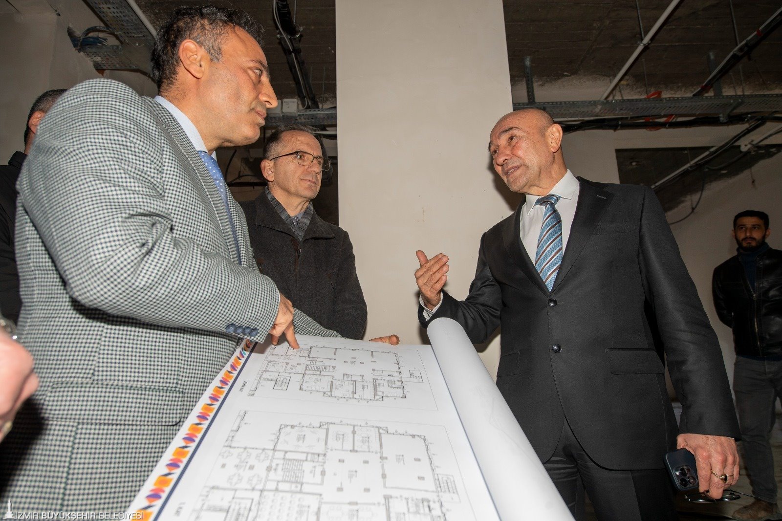 İzmir Büyükşehir Belediye Başkanı Tunç Soyer, Buca’da İzmir Büyükşehir Belediyesi’nin yatırımlarını inceledi. Başkan Tunç Soyer’in ilk durağı Çocuk Belediyesi oldu. 12,2 milyon liralık yatırımla Gürçeşme Huzurevi’nin bulunduğu yapıda İzmir Büyükşehir Belediyesi Yapı İşleri Daire Başkanlığı tarafından sürdürülen güçlendirme ve tadilat çalışmaları hakkında bilgi alan Başkan Soyer, çalışmaları Mart ayında bitirmeyi planladıklarını söyledi.