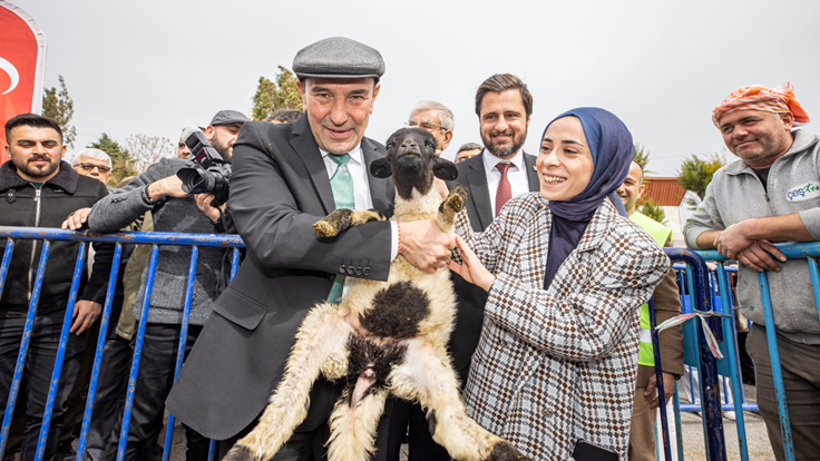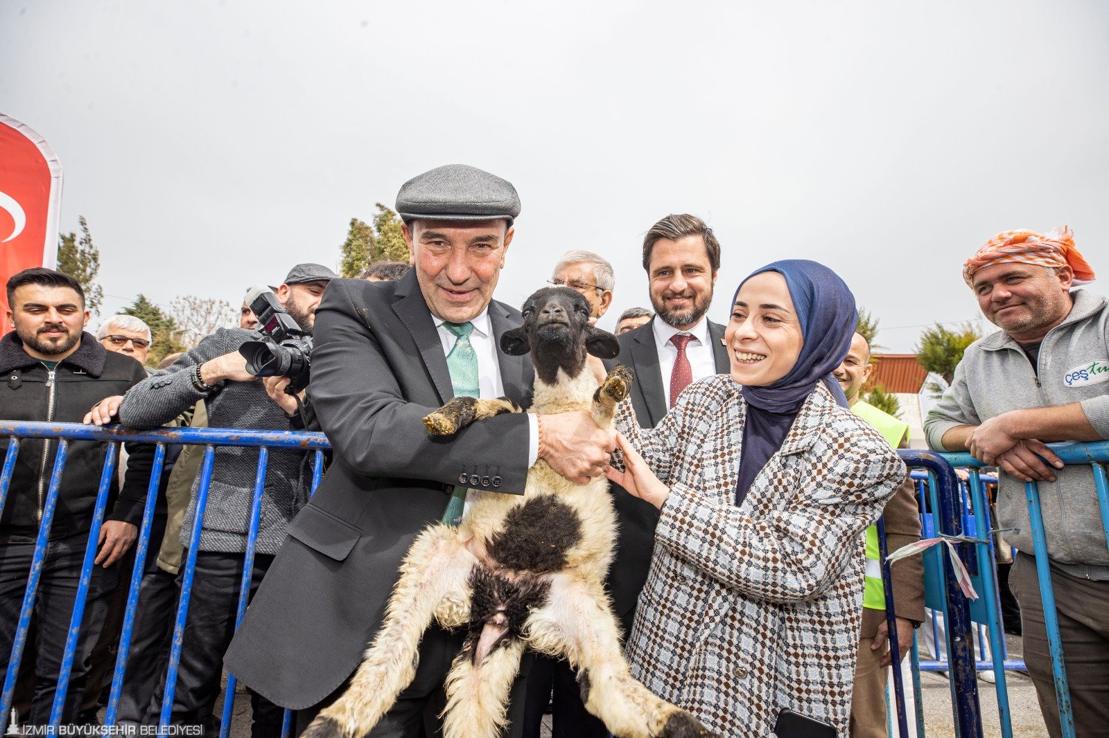 “Başka Bir Tarım Mümkün” vizyonuyla oluşturulan, yerel üretici ve kırsala yönelik projeleriyle tüm Türkiye’ye örnek bir kalkınma modeline öncülük eden İzmir Büyükşehir Belediyesi, küçük üreticiyi desteklemeyi ve bölgede tarımsal çeşitliliği zenginleştirmeyi sürdürüyor. İzmir Büyükşehir Belediye Başkanı Tunç Soyer, Urla’da küçükbaş hayvan dağıtım törenine katıldı. Yetiştiricilik eğitimlerini tamamlayan üreticilerin her birine çekilen kuraların ardından bir koç ve üç koyun teslim edildi.