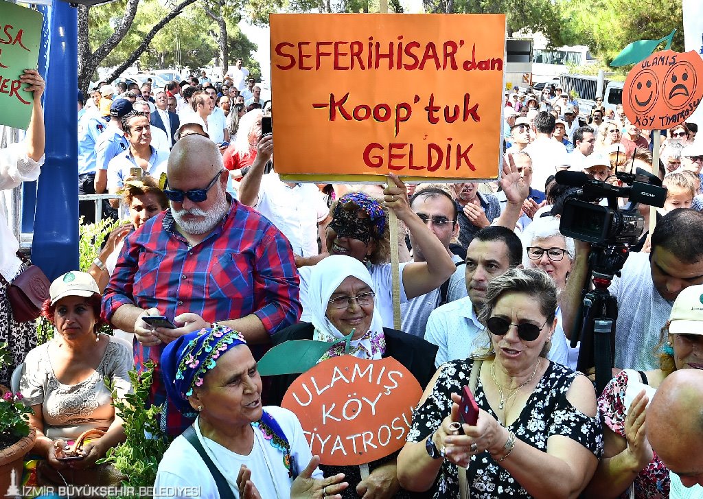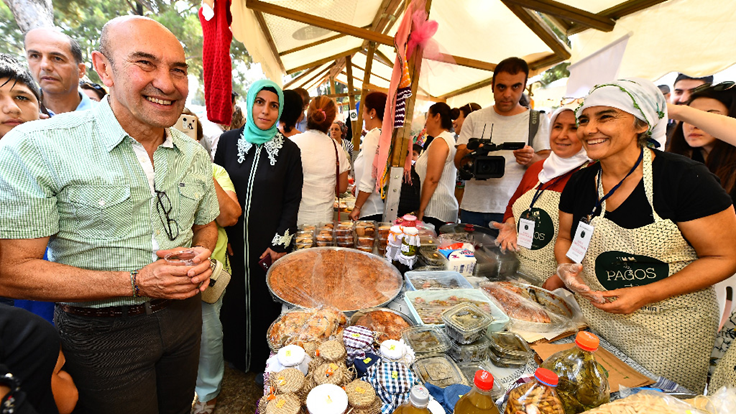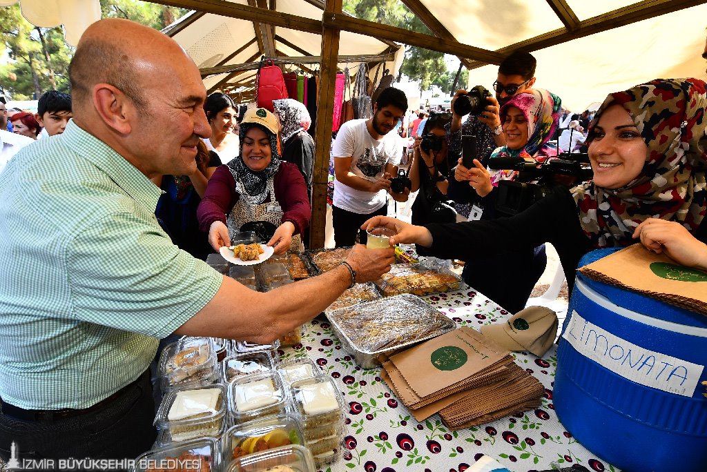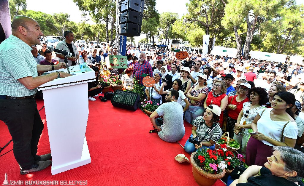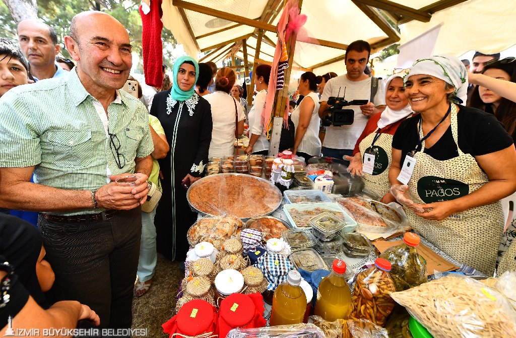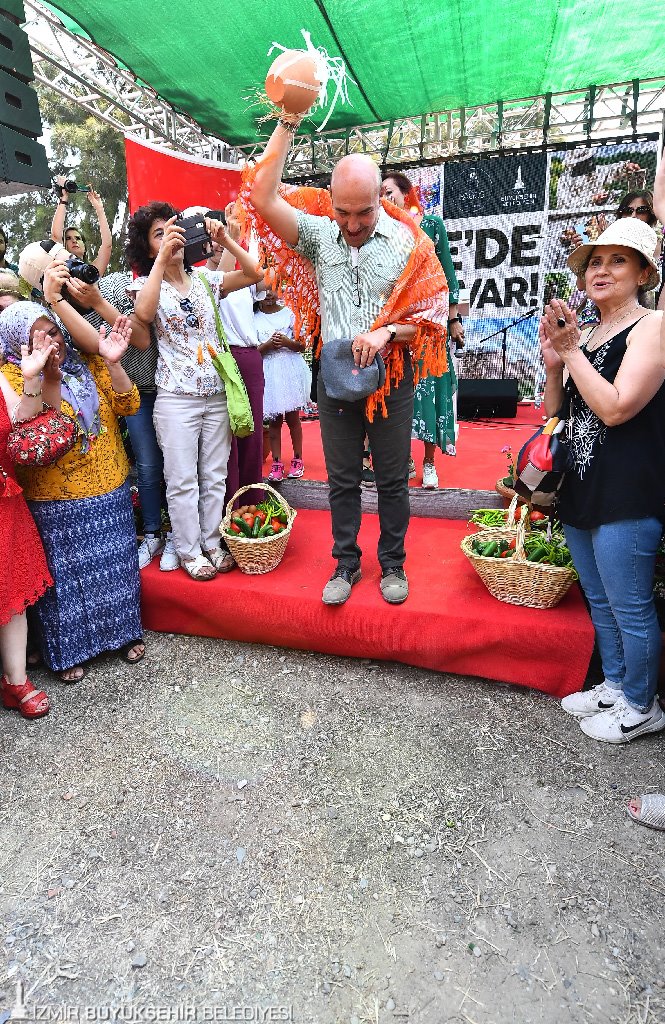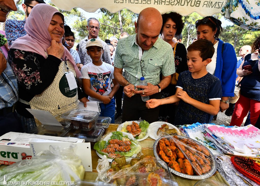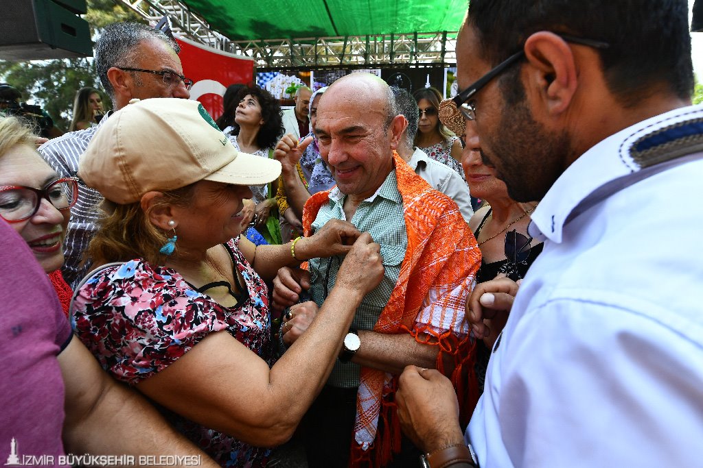Konuşmasının ardından üretici kadınlarla birlikte pazara bereket getirmesi için testi kıran Başkan Soyer, üretici pazarını gezerek alışveriş yaptı. Sivil Toplum Kuruluşları Birliği İzmir Büyükşehir Belediye Başkanı Tunç Soyer'in eşi Neptün Soyer'e Köy-Koop Başkanı olarak kooperatifleşmeye desteklerinden ötürü el emeği damal bebeği hediye etti.