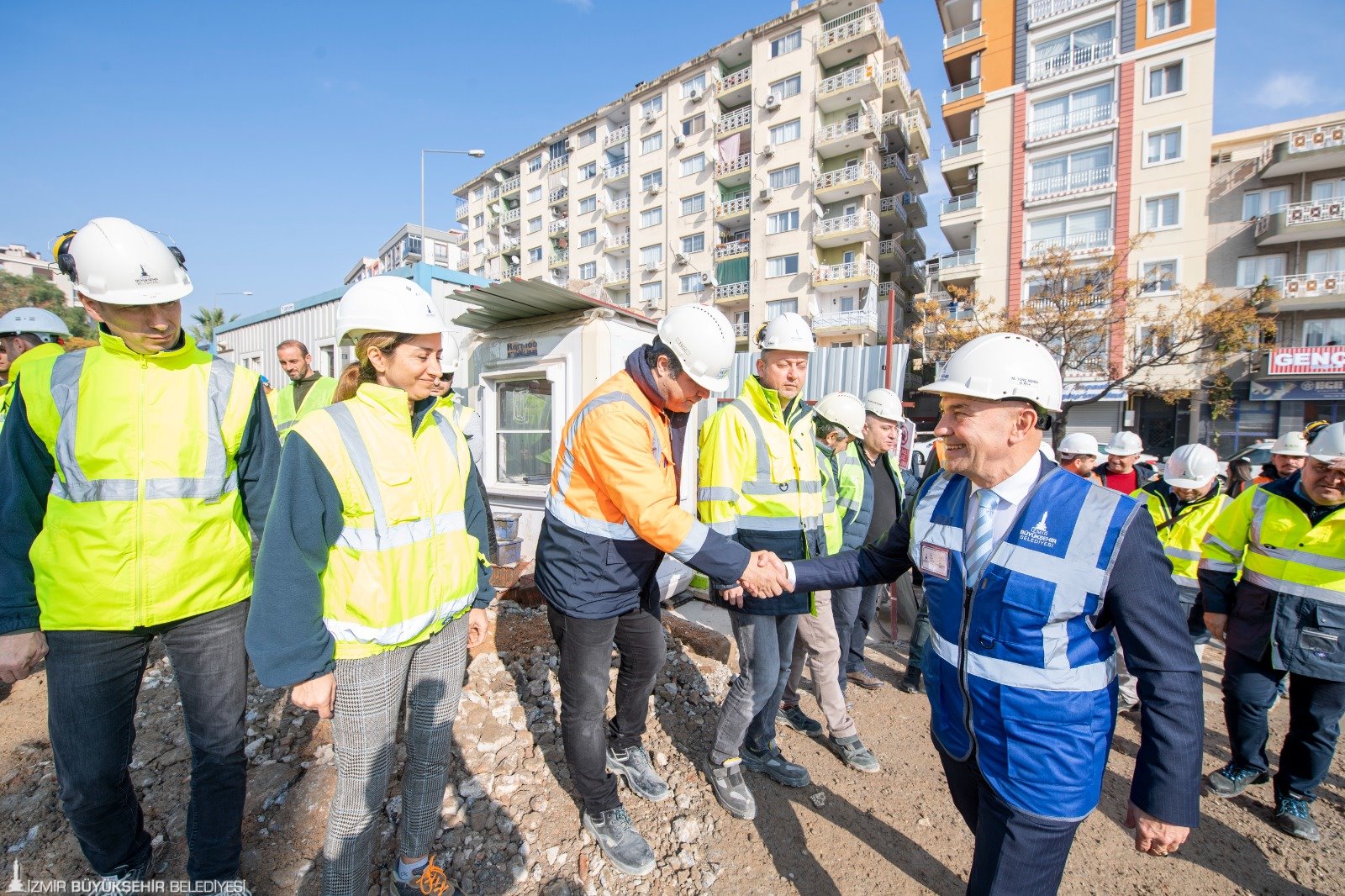 İzmir Büyükşehir Belediye Başkanı Tunç Soyer, kent tarihinin en büyük yatırımı Buca Metrosu’nun şantiye alanına giderek ilk kazığın çakıldığını ve inşaatın başladığını duyurdu. Başkan Tunç Soyer, “Bugün itibariyle 1 milyar Euro’nun üzerinde maliyeti olan, 13 buçuk kilometre ve 11 istasyonu olan bir metro çalışması başlıyor. Ekonomik krizin derinleştiği bir ortamda 490 milyon Euro’luk konsorsiyum oluşturarak bir sendikasyon kredisiyle başladığımız bir yatırım bu. Yüzde 3 faizle, 12 yıl vadeli, 4 yıl ödemesiz ve 8 yıl geri ödemeli bir finansman modeli yarattık. Metronun tamamı İzmir Büyükşehir Belediyesi’nin kendi imkanlarıyla yapılıyor. Tamamı İzmir Büyükşehir Belediyesi finansmanıyla geri ödenecek. Dolayısıyla belki de tarihin en verimli yatırımlarından birini yapıyoruz. Çünkü 4 yıl ödemesiz süre, inşaat süresine denk geliyor. İnşaat tamamlandığında, metro açıldığında geri ödeme başlayacak. Dolayısıyla hiç kimsenin cebinden para çıkmadan işletme kendi kendini finanse ederek yola devam edecek” dedi.