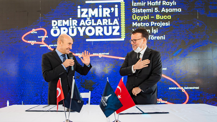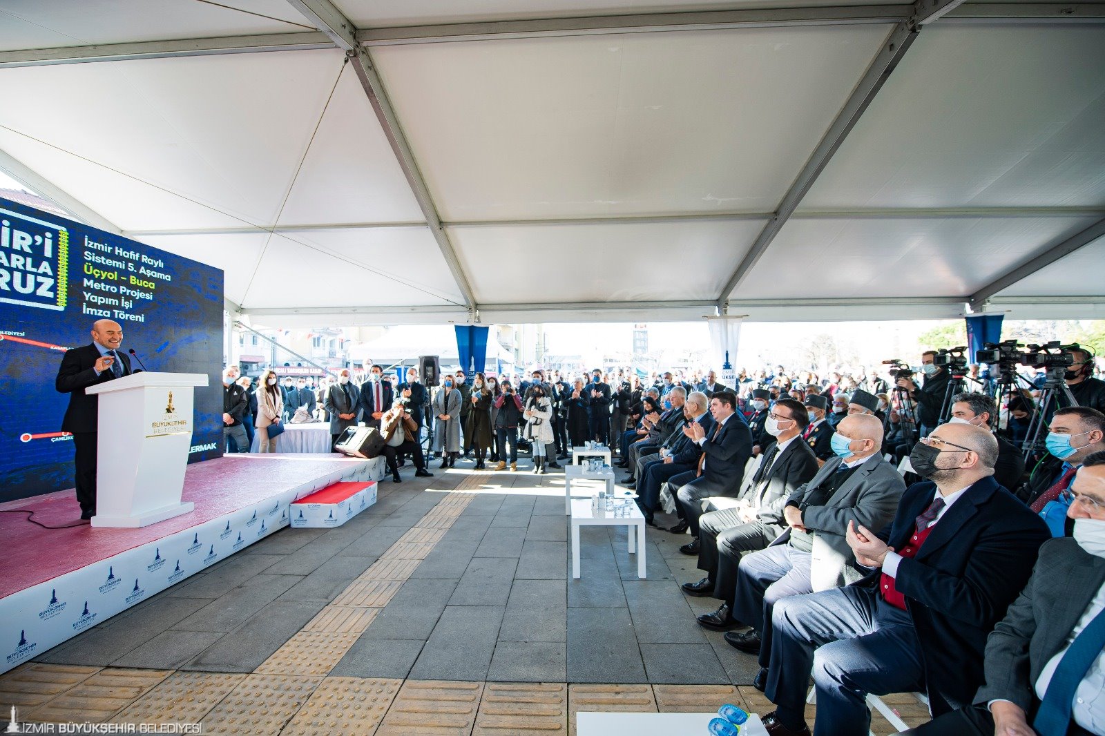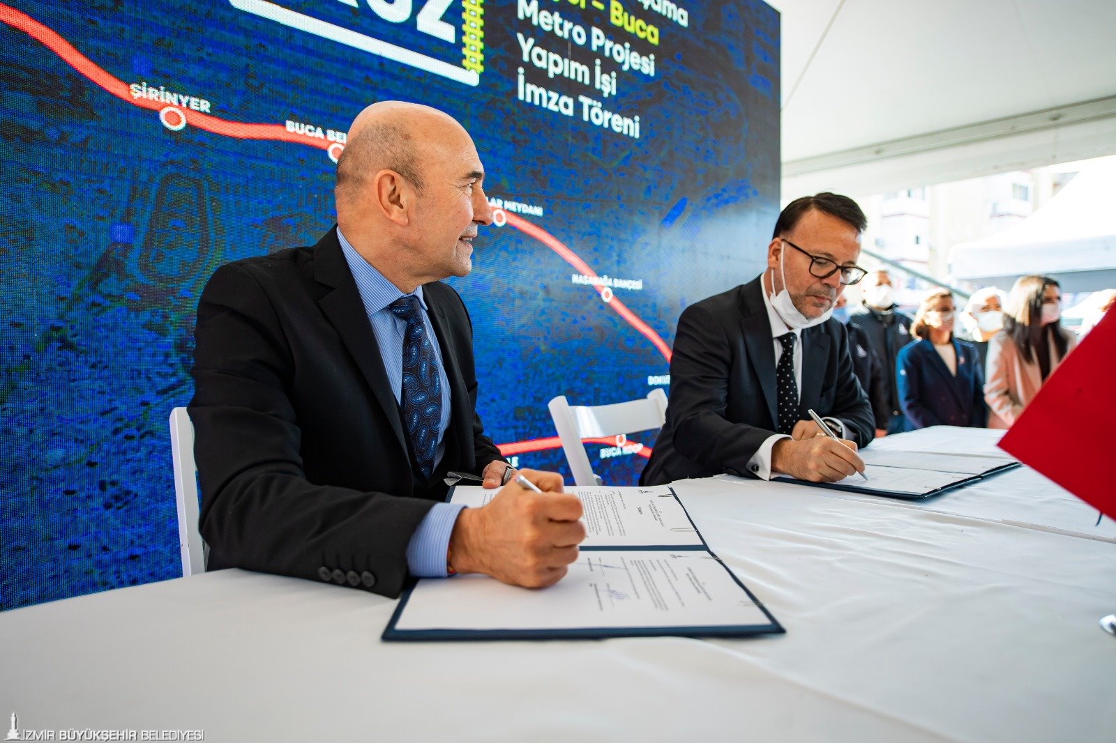 İzmir Büyükşehir Belediyesi’nin kendi kaynakları ile inşa edeceği, 3 milyar 921 milyon 498 bin liraya mal olacak İzmir’in yeni metrosu için yapım sözleşmesi İzmir Büyükşehir Belediye Başkanı Tunç Soyer ile Gülermak Ağır Sanayi İnşaat ve Taahhüt A.Ş. Yönetim Kurulu Başkanı Kemal Tahir Güleryüz arasında Buca Işılay Saygın Meydanı’nda (Kasaplar Meydanı) düzenlenen törenle imzalandı. Törene İzmir Büyükşehir Belediye Başkanı Tunç Soyer’in yanı sıra CHP İzmir Milletvekili Kani Beko, Buca Belediye Başkanı Erhan Kılıç, Gaziemir Belediye Başkanı Halil Arda, Konak Belediye Başkanı Abdül Batur, Güzelbahçe Belediye Başkanı Mustafa İnce, Torbalı Belediye Başkanı Mithat Tekin, Beydağ Belediye Başkanı Feridun Yılmazlar, CHP Buca İlçe Başkanı Hacer Taş Gültepe, İYİ Parti Buca İlçe Başkanı Gamze Bilen Torun, İzmir Büyükşehir Belediyesi Başkan Vekili Mustafa Özuslu, İzmir Büyükşehir Belediyesi Genel Sekreteri Dr. Buğra Gökçe, İzmir Metro A.Ş Genel Müdürü Sönmez Alev, İzmir Büyükşehir Belediyesi bürokratları, Gülermak Ağır Sanayi İnşaat ve Taahhüt A.Ş yöneticileri ve çok sayıda Bucalı katıldı.