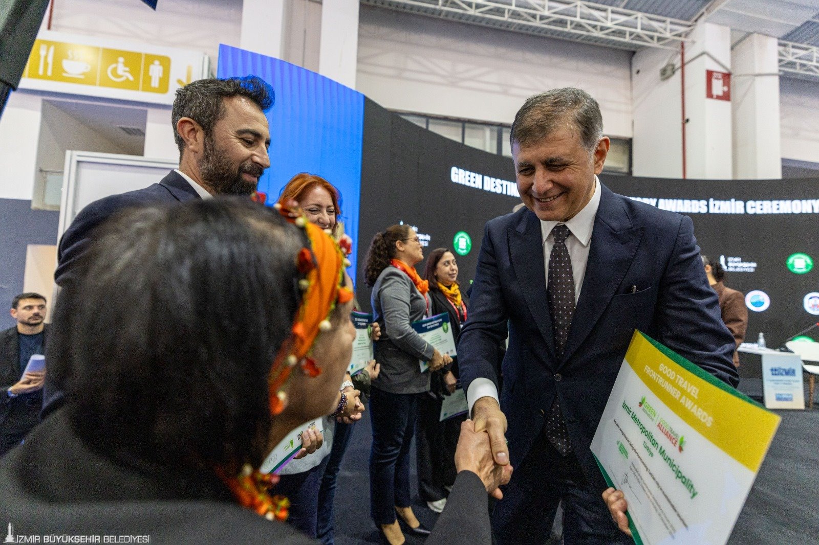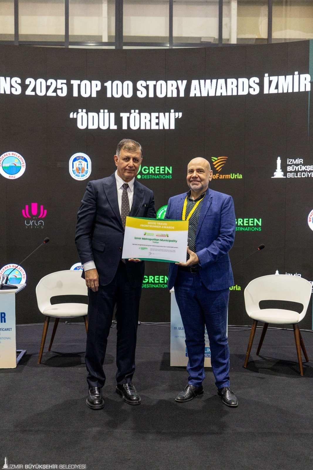 Green Destinations, kuruluşunun 10. yılında oluşturduğu Good Travel Alliance platformu ile son on yılda rejeneratif ve sürdürülebilir turizm alanında bölgesel ölçekte örnek teşkil eden liderleri onurlandırdı. İzmir Büyükşehir Belediyesi, sürdürülebilir turizmin alanında yaptığı çalışmalar neticesinde Green Destinations & Good Travel Alliance tarafından “Good Travel Frontrunner Award” - “Öncü Kuruluş” ödülü kazandı. Sürdürülebilir projelerle kente değer katanlara, Fuar İzmir'de düzenlenen Green Destinations 2025 En İyi Yüz Sürdürülebilir Turizm Projesi Ödül Töreni ile ödülleri verildi.