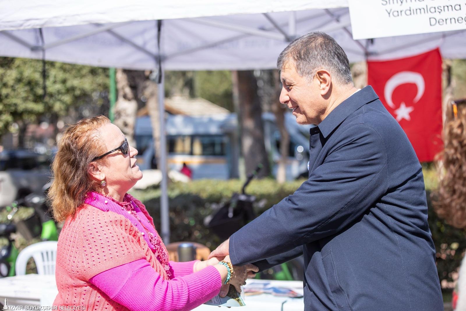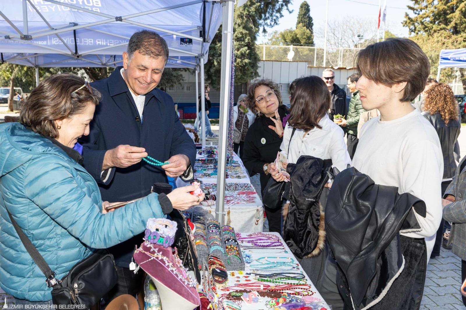 Başkan Dr. Cemil Tugay, kırsal üretim yapan İzmirli kadınların stantlarını ziyaret ederek dayanışma içinde emek veren üreticilerle bir araya geldi. Üreticilere, herhangi bir talepleri olup olmadığını soran Başkan Tugay, İzmir Büyükşehir Belediyesi’nin kırsal destekleri ve hamleleri konusunda memnuniyetlerini dinledi. Alışveriş yaptığı sırada Menderes Yeniköy Kadın Kooperatifi'nin standında, salep üretimine sağlanan destekler için teşekkürler aldı.