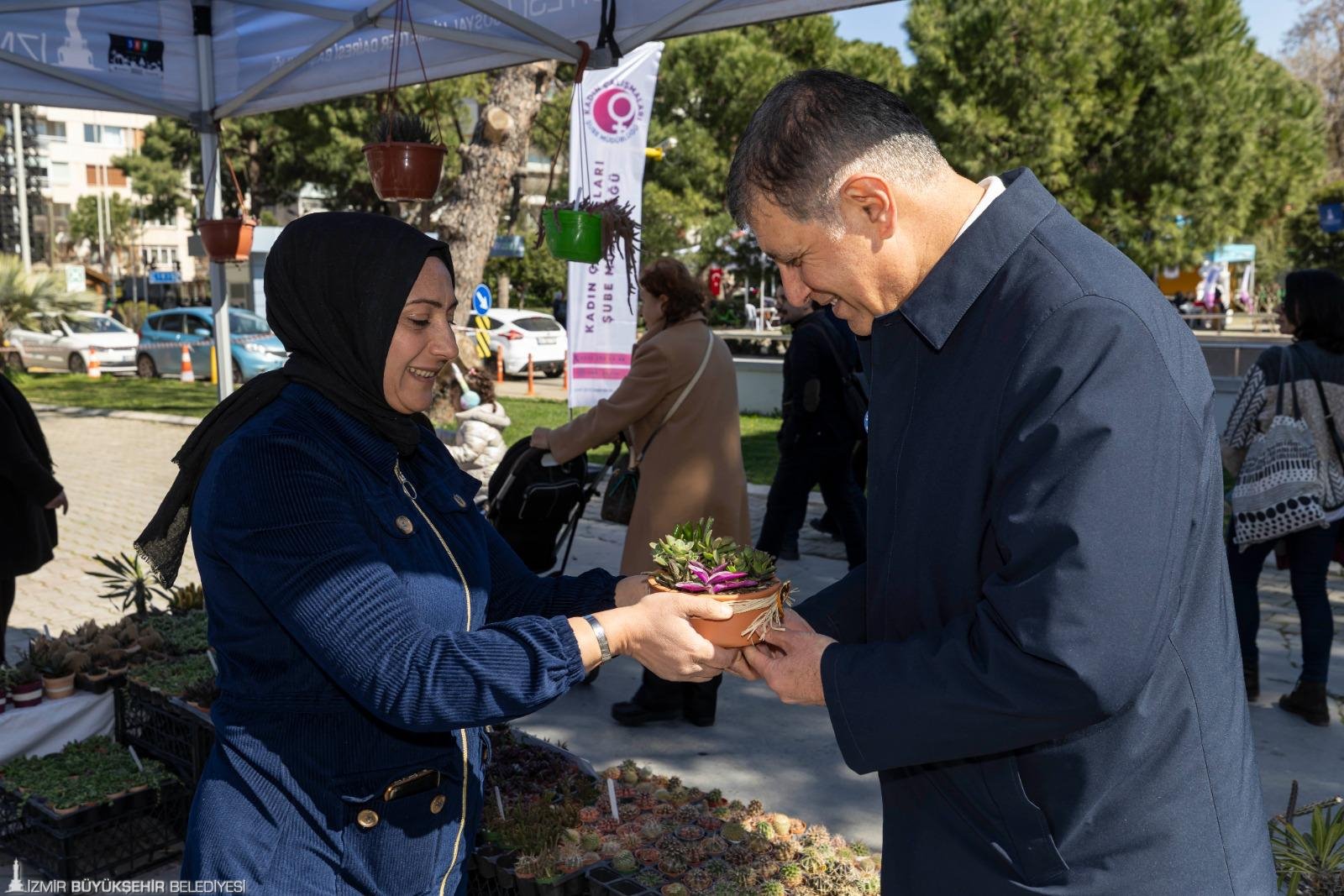 İzmir Büyükşehir Belediyesi, 8 Mart Dünya Emekçi Kadınlar Günü’nü “Aramızda Eşitlik Var” temasıyla üç gün süren etkinliklerle karşıladı. Kültürpark’tan ilçelere uzanan etkinliklerde kadın emeği ve dayanışma ön plana çıktı. İzmir Büyükşehir Belediye Başkanı Dr. Cemil Tugay, 8 Mart Dünya Emekçi Kadınlar Günü'nde Kültürpark'taki stantları ziyaret ederek üretici kadınlarla buluştu. Başkan Tugay, sivil toplum kuruluşları, dernekler ve vakıfların temsilcileriyle sohbet etti, çocuklarla fotoğraf çektirdi ve gençlerin taleplerini dinleyerek ihtiyaçları not aldı. Etkinlikte binlerce İzmirli, kadınların gücünü kutlamak için bir araya geldi.