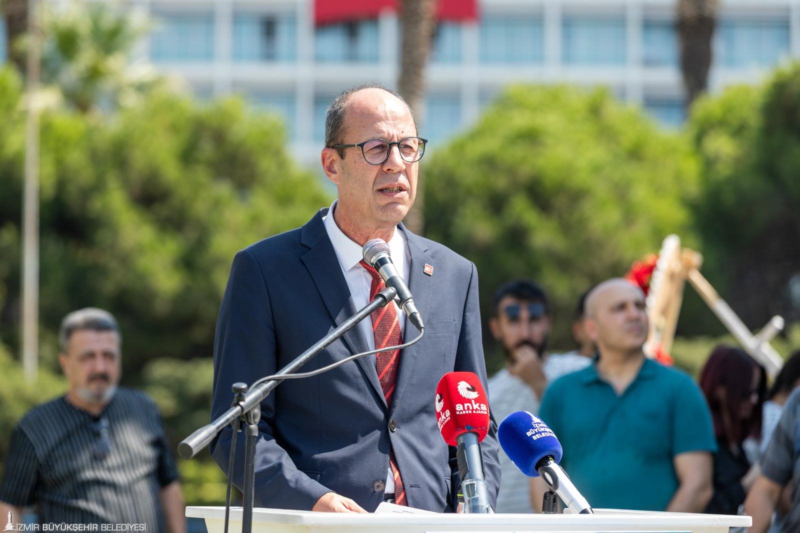CHP İzmir İl Sekreteri Tevfik Türk, sözlerine 30 Ağustos Zafer Bayramı’nı kutlayarak başladı. Buca Kırıklar Cezaevi’nde tutuklu olan CHP İzmir İl Başkanı Şenol Aslanoğlu’nun mesajını okuyan Tevfik Türk, Aslanoğlu’nun cezaevinde olsa da aklı, fikri ve mücadele ruhuyla duygularını paylaştığını söyledi. Aslanoğlu mesajında, “Sevgili yoldaşlar, 30 Ağustos’un ruhu, teslim olmayanların, diz çökmeyenlerin, hak, hukuk ve adalet mücadelesi verenlerin ruhudur. Bu zaferi yaratan irade, bugün bizlere yol göstermektedir. Hepinizi yürekten kucaklıyorum. Zafer Bayramımız kutlu olsun" ifadelerine yer verdi.
