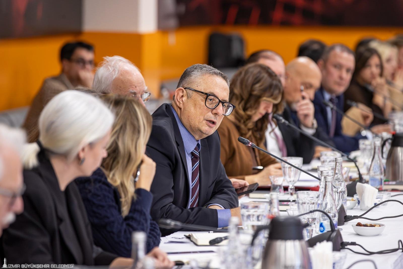 3-5 Mart 2026'da yapılacak ITB Berlin Fuarı'na İzmir'in katılımı hakkında konsey üyelerinin fikirlerini alan İzmir Büyükşehir Belediye Başkanı Dr. Cemil Tugay, turistik otel ve restoranların mutfakları için sebze ve meyve gıda tedarikini sağlayacak, belediye eliyle kurulmuş bir tür toptancı marketi oluşturulabileceğini dile getirdi. Başkan Tugay, “İZMAR'ın toptancı marketi olsun, et, süt, balık da olabilir, sebze, meyve ya da tahıl türü ihtiyaç duyulan şeylerin çoğunu kaliteli ve uygun fiyata satalım. Sadece üye olan işletmelere verelim, genel bir satış yapmayalım. Bunu yapmamız gerekir diye düşünüyorum. Bu destekler rahatlatır otelleri restoranları diye düşünüyorum. İkinci olarak da yaz döneminde mayıstan eylül sonuna kadar olan dönemde su fiyatında indirim, atık vergisinde indirim gibi şeyleri sağlayabiliriz. Bu tür bir desteği ilçe belediye başkanlarımızla konuşmamız lazım. Biz açıkçası bunları göğüslemeye hazırız” dedi.