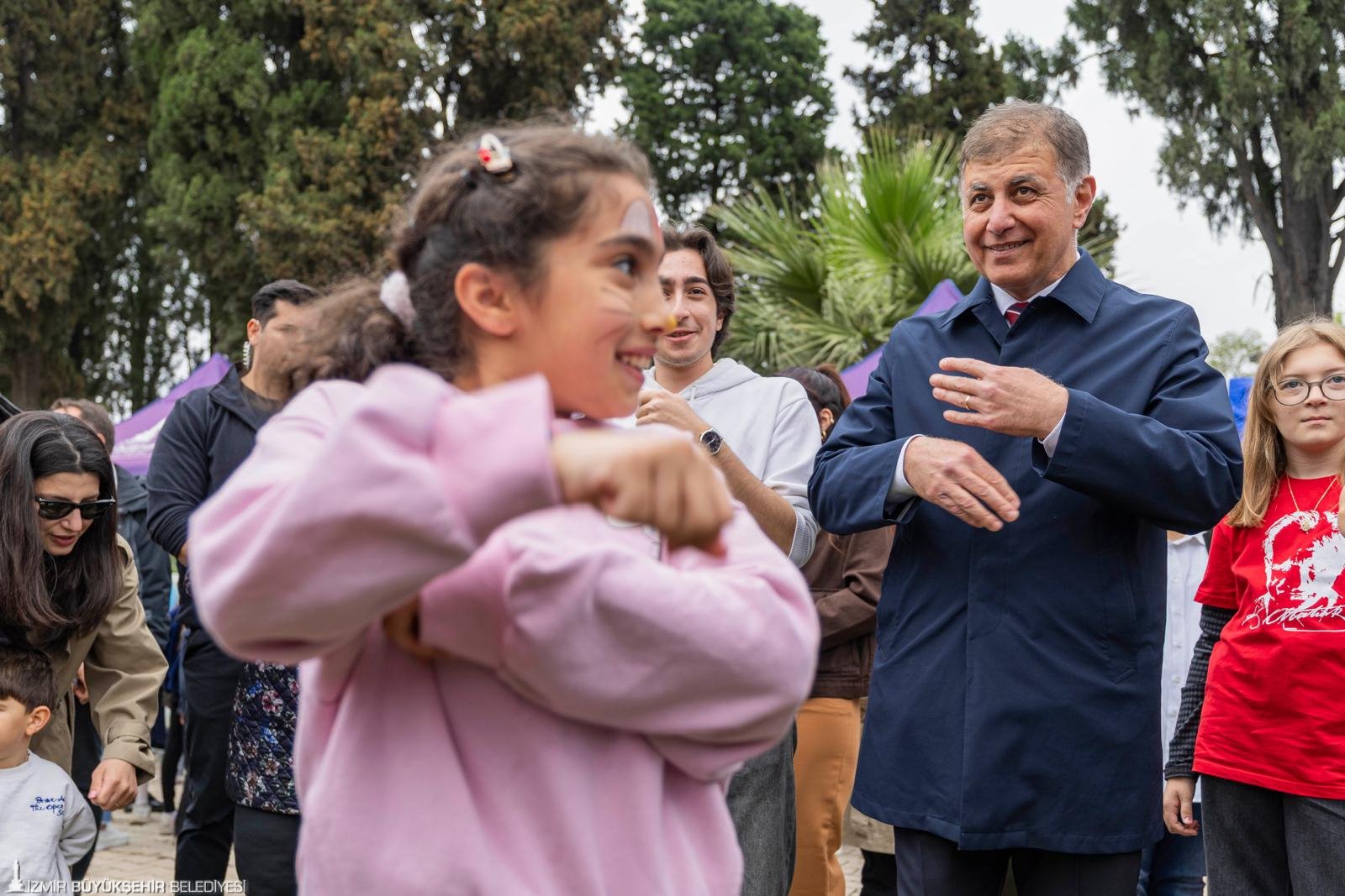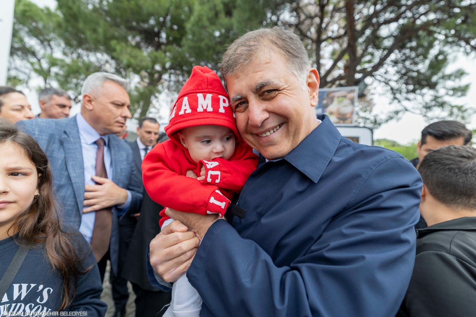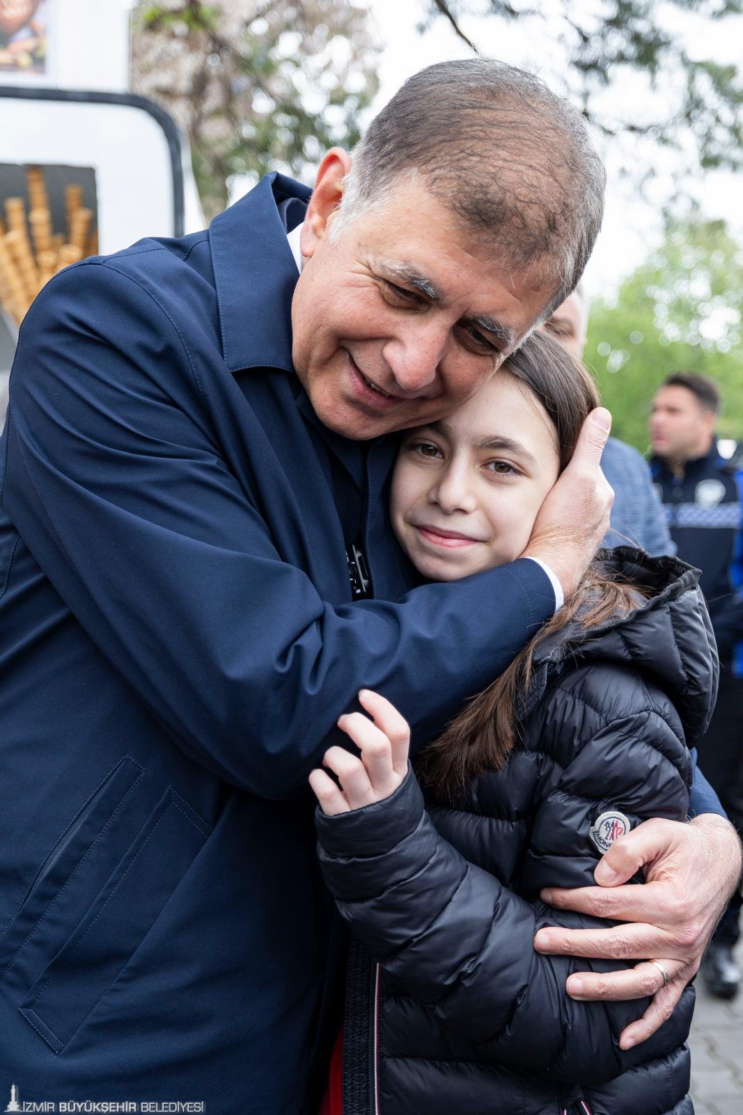 İzmir’de 23 Nisan Ulusal Egemenlik ve Çocuk Bayramı sabahın ilk saatlerinden itibaren coşkuyla kutlanıyor. İzmir Büyükşehir Belediyesi tarafından kentin dört bir yanında düzenlenen etkinlikler, Kültürpark’ta gerçekleştirilen programla taçlandı. Kültürpark’taki kutlamalar, İzmir Büyükşehir Belediye Başkanı Dr. Cemil Tugay’ın katıldığı kortej yürüyüşü ile başladı. Kaskatlı Havuz’dan bando eşliğinde etkinlik alanına kadar süren korteje çocuklar ve aileleri, ellerindeki Türk bayraklarıyla eşlik etti. Başkan Tugay, etkinlik alanına Melek İzciler adlı izci grubundan otizmli Ömercan Anamer ve Osman Türkekul ile birlikte girdi. Çocukların yoğun ilgisiyle karşılanan Tugay, kurulan stantları gezerek çocuklarla sık sık fotoğraf çektirdi.