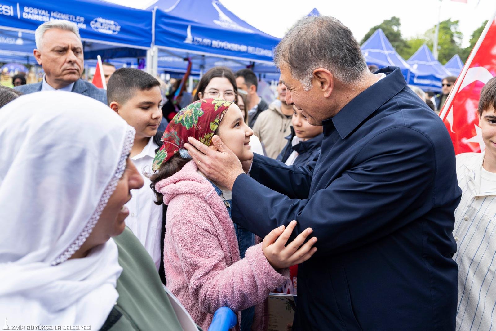 23 Nisan Ulusal Egemenlik ve Çocuk Bayramı programı kapsamında Kültürpark etkinlik alanında çocuklara yönelik “İkinci El Pazarı” kuruldu. Çocukların paylaşma kültürünü deneyimlemesi, üretmenin değerini fark etmesi ve küçük bir alışveriş deneyimi yaşamaları amacıyla düzenlenen pazarda kitaplar, oyuncaklar, spor malzemeleri ve çeşitli eşyalar yeniden kullanıma kazandırıldı. 7–14 yaş arası çocukların katılımına açık olan pazarı İzmir Büyükşehir Belediye Başkanı Dr. Cemil Tugay da ziyaret etti. Çocuklardan oyuncak ve kitap satın alan Tugay, aldığı ürünleri etkinlik alanındaki çocuklara hediye etti.