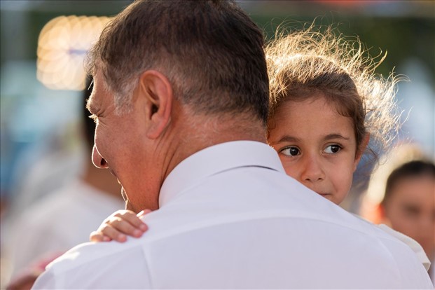 İzmir Büyükşehir Belediyesi, 94. İzmir Enternasyonal Fuarı’nda (İEF) İzmirli çocukları ağırlamaya devam ediyor. İEF’nin üçüncü gününde İzmir Büyükşehir Belediyesi Sosyal Hizmetler Dairesi Başkanlığı’nın Buca Göksu, Konak Ballıkuyu ve 1. Kadriye mahallelerinde bulunan Dayanışma Noktalarından hizmet alan anne ve farklı yaş gruplarından çocuklarla buluşan İzmir Büyükşehir Belediye Başkanı Dr. Cemil Tugay ve eşi Öznur Tugay yeniden çocuklarla bir araya geldi. Buca’nın Göksu Mahallesi ve Konak’ın Ballıkuyu Mahallesi’nde bulunan Dayanışma Noktalarından hizmet alan 16 anne ve farklı yaşlarda 39 çocukla yemek alanında buluşan Başkan Tugay, miniklerin taleplerini dinlerken, günün anısına hatıra fotoğrafı da çektirdi. İstedikleri yemekleri yiyen minikler Başkan Tugay’dan oyun parkı, spor sahası gibi isteklerde bulundu. Başkan Tugay da çocukların isteklerini memnuniyetle yerine getireceklerini söyledi. Konak ilçesinde 32 okul arasında düzenlenen İstiklal Marşı okuma yarışmasında birinci olan ilkokul öğrencisi 10 yaşındaki Şilan Yıldırım’ı tebrik eden Tugay, Şilan’ın mor bisiklet isteğini de geri çevirmedi ve kendisine hediye edeceklerini söyledi. Başkan Tugay ile eşi Öznur Tugay, 6 aylık Azim Elmastaşı da kucağına alarak sevdi.