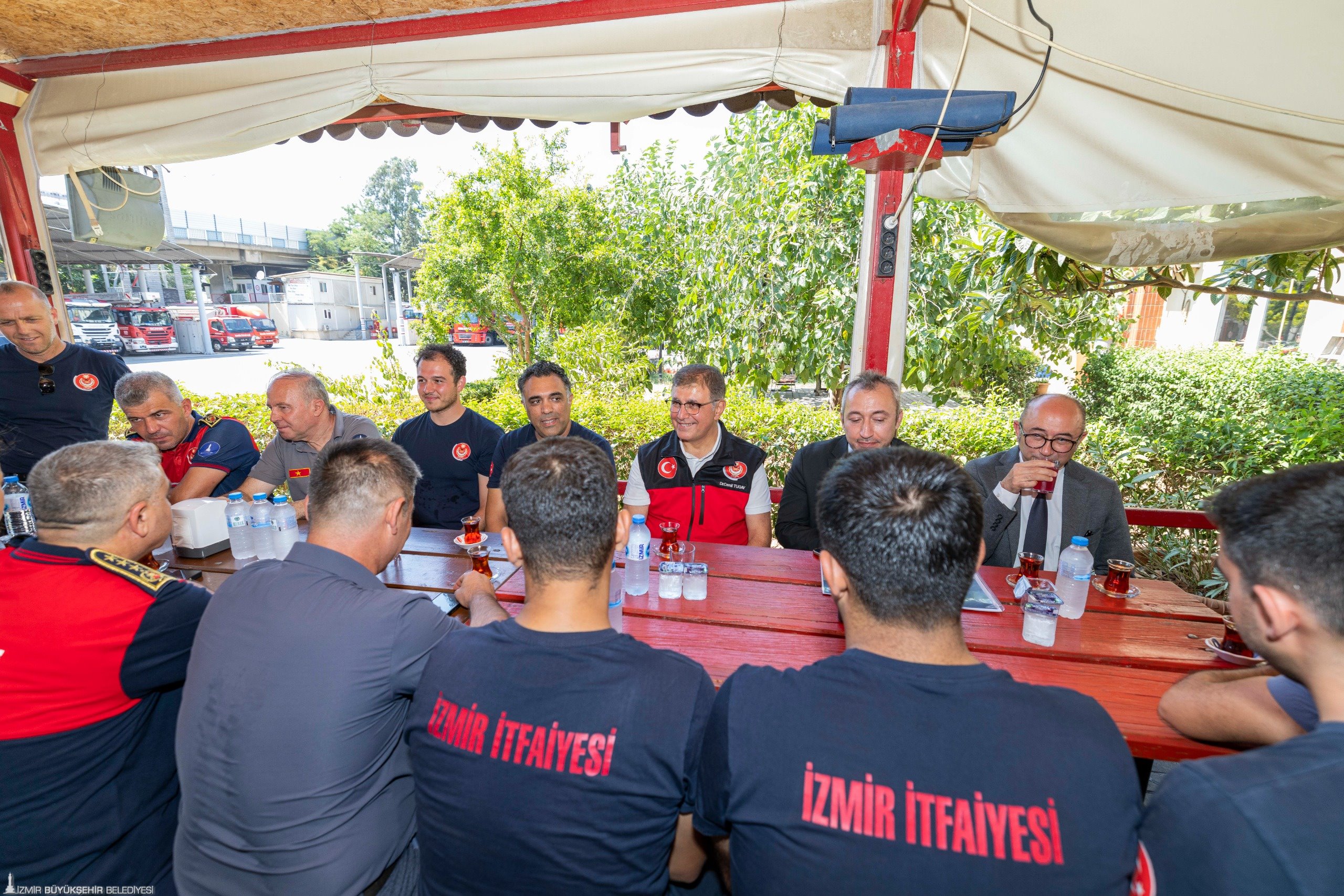 İzmir Büyükşehir Belediye Başkanı Dr. Cemil Tugay, İtfaiye Dairesi Başkanlığı’nın Yenişehir’deki merkezini ziyaret etti. İzmir Büyükşehir Belediyesi Genel Sekreteri Zeki Yıldırım, Genel Sekreter Yardımcısı İsmail Mutaf ile İtfaiye Dairesi Başkanı Yaşar Korkmaz ve itfaiye personelinin karşıladığı Tugay, aynı anda birçok yerde başlayan, günler süren orman yangınlarıyla canı pahasına müdahale eden ateş savaşçılarına teşekkür etti. Başkan Tugay ziyarette itfaiye memurlarına yangın risk primi ödeneceğinin müjdesini verdi. Genel-İş’le imzalanan toplu iş sözleşmesinde yer alan ve itfaiyedeki işçi personele ödenen yangın riski priminden memur personel de yararlanacak.