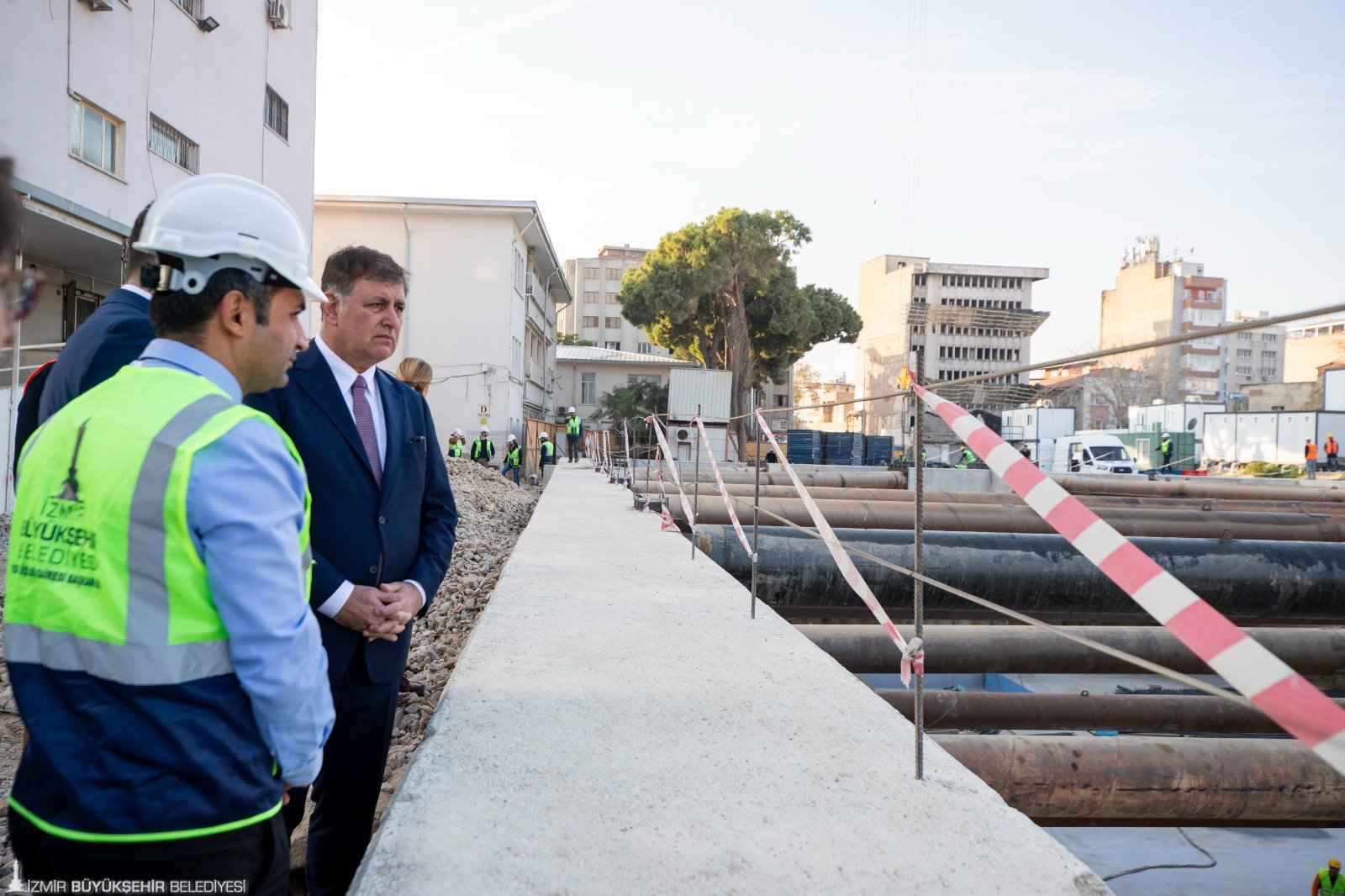 Ziyareti kapsamında ek hizmet binasının inşaat çalışmalarını yerinde inceleyen Başkan Tugay, burada da Yapı İşleri Dairesi Başkanı Onur Açık’tan son durum hakkında bilgi aldı.