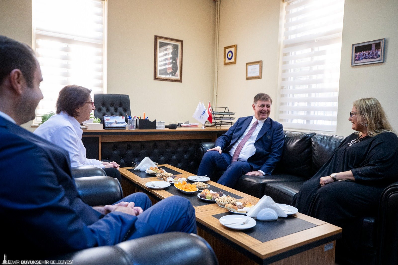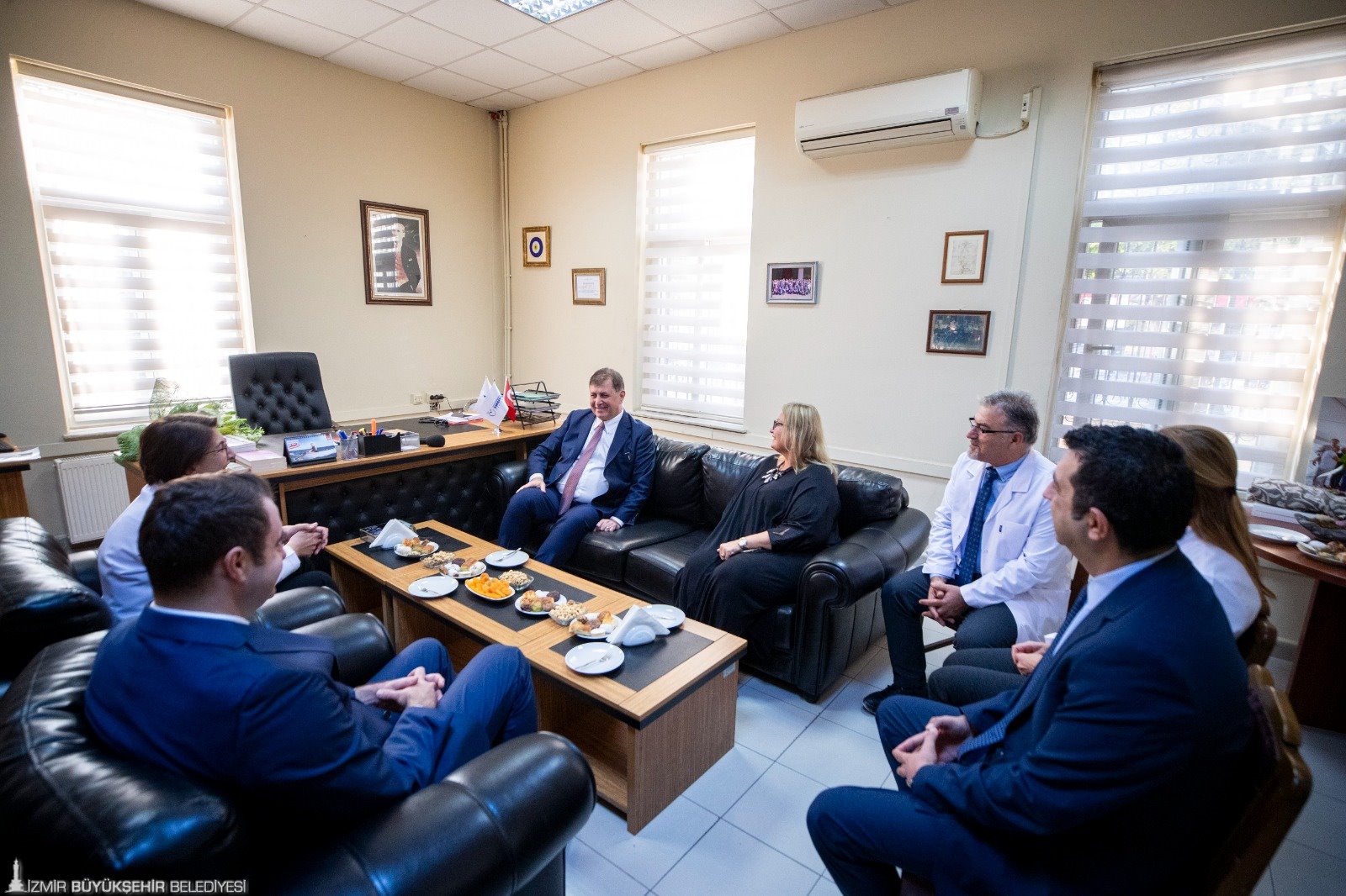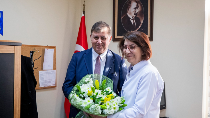 Doç. Dr. Başak Bayram’a çiçek takdim ederek görevinde başarılar dileyen Başkan Tugay, özellikle evde bakım hizmetleri içinde yer alan yara bakımının önemine değindi. Madde bağımlığına karşı verilecek eğitimler ve ambulans hizmetlerine ilişkin de görüş alışverişinde bulunan Başkan Tugay, ilçelerde poliklinik hizmeti verilmesi için çalışma yapılmasını istedi.