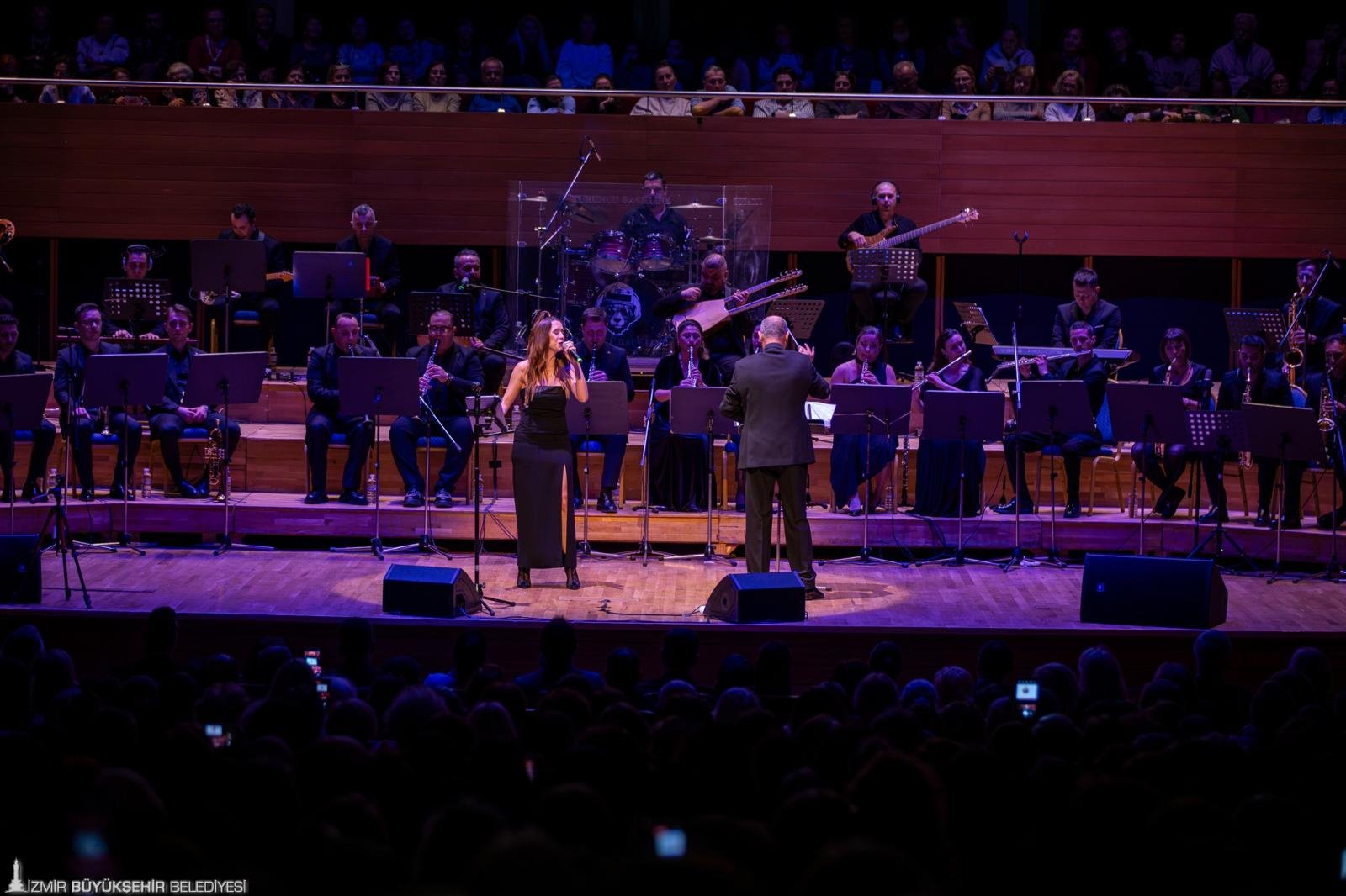 Hem Edip Akbayram’ın toplumsal duyarlılıkla yoğrulmuş eserleri, hem de Volkan Konak’ın yüreklere dokunan yorumları, farklı bir atmosferde sanatseverlerle buluşturuldu. Solistler, İzBB Metropol Orkestrası eşliğinde iki usta ismin hafızalara kazınan birbirinden değerli şarkılarını kendilerine has yorumlarıyla seslendirdi. Edip Akbayram’ın Gittin Gideli, Bekle Bizi İstanbul, Aldırma Gönül, Değmen Benim Gamlı Yaslı Gönlüme, Kuşlar, Hasretinle Yandı Gönlüm, Eşkıya Dünyaya Hükümdar Olmaz; Volkan Konak’ın Mimoza Çiçeği, Cerrahpaşa, Hey Gidi Karadeniz, Aleni Aleni, Mağusa Limanı, Göklerde Kartal Gibiydim, Dido gibi eserleri hep bir ağızdan söylenirken salonda duygulu anlar yaşandı. Sanatseverler konsere telefonunun ışıklarıyla eşlik etti. Solistlerin performansının yanı sıra İzmir Büyükşehir Belediye Bandosu’nun sanatçılarından kurulan İzBB Metropol Orkestrası, performansıyla izleyenlere unutulmaz bir akşam yaşattı.