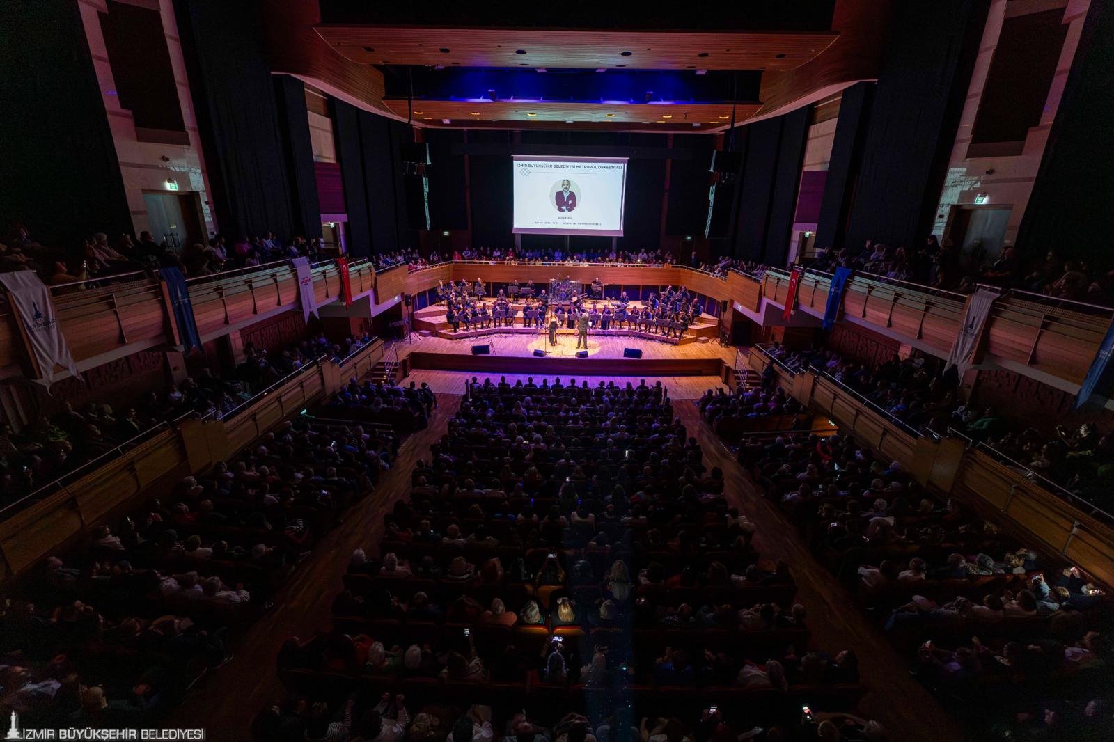 İzmir Büyükşehir Belediyesi, 2025 yılının mart ayında yaşamını yitiren Türk müziğinin iki unutulmaz ismi Edip Akbayram ve Volkan Konak’ı adlarına yakışır bir konserle andı. İzmirlilerin yoğun ilgi gösterdiği gecede Ahmed Adnan Saygun Sanat Merkezi (AASSM) Büyük Salon tamamen doldu. İki sanatçının hafızalara kazınan eserleri İzBB Metropol Orkestrası’nın muhteşem performansıyla yankılandı. Her iki ismin de mücevher değerinde olduğunu ifade eden Başkan Tugay, “İzmir, sanatın ve sanatçının değerini bilecek. Bugün sizlere söylüyorum; çok yakında İzmir Büyükşehir Belediyesi konservatuvarını açacağım” dedi.