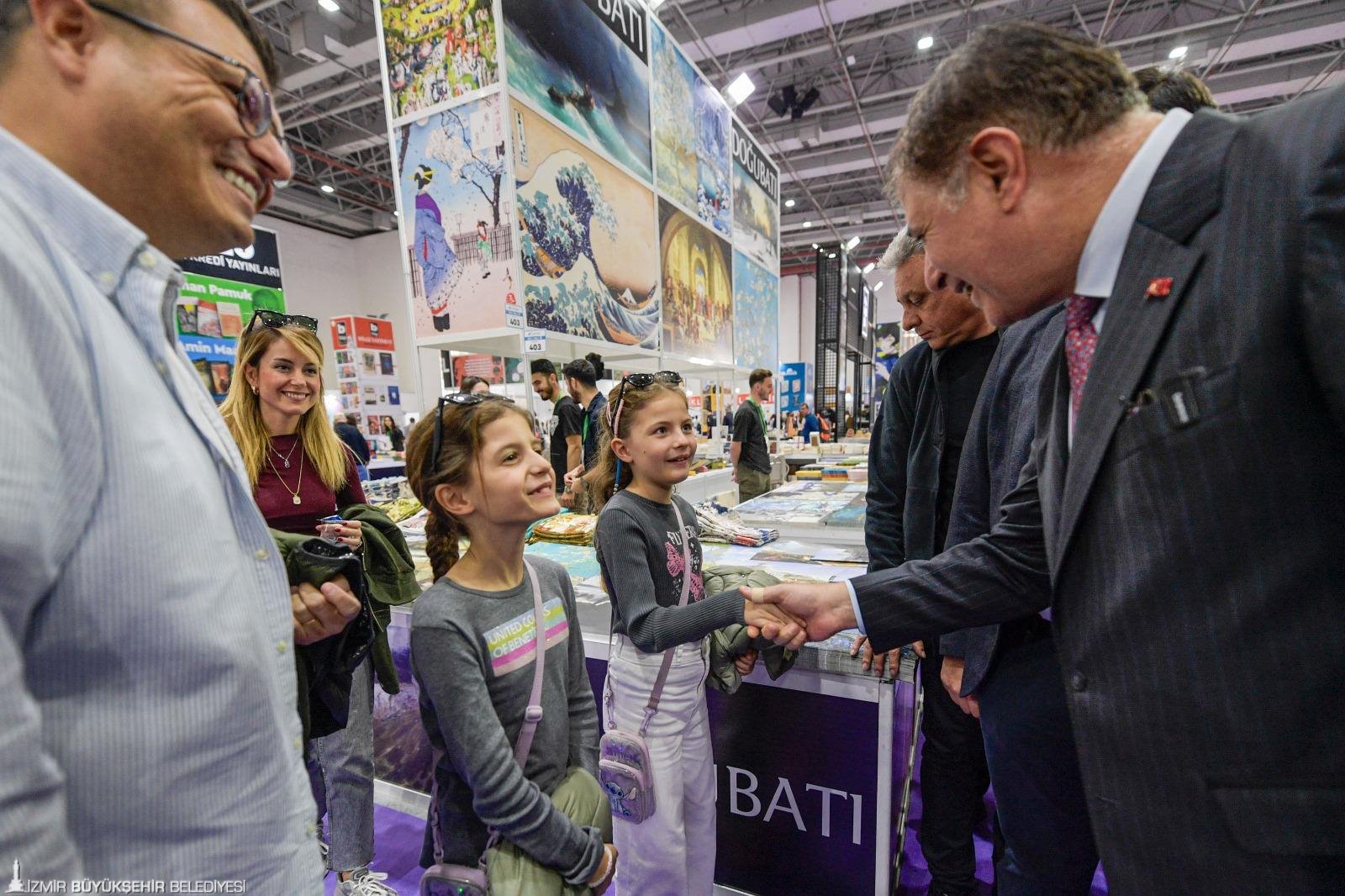 Konuşmasında İzmir’in 8 bin 500 yıllık tarihine de değinen Başkan Tugay, “İzmir’imizin kent tarihi ve kent kimliği ile özdeşleşen, kendimizi ait hissettiğimiz etkinliklerinden birinde bir aradayız. Böyle bir organizasyona ev sahipliği yapmanın onur ve keyfini yaşıyoruz. Ben küçük yaşlardan itibaren kitap okumaya yakın olmuş, daha sonra tıp alanını seçtikten sonra genel edebiyattan kopmak zorunda kalmış ama kitabın önemini her zaman bilen bir insan olarak kitabı kendimize en zengin, en güzel, en keyifli dostlardan biri olarak görüyorum. Yaşadığımız dönemde insanlar bireyselliğe itiliyor. Her insanın çevresinde duvarın örüldüğü bir dönemi yaşıyoruz. Böyle dönemde insanın çevresindeki duvarları görmeyeceği, kendini özgür hissedeceği, içine daldığında güzel bir dünyaya adım atacağı bir iştir kitap okumak. İzmir’in, Homeros’un şehri olduğunu biliyoruz. 8 bin 500 yıl önce İlyada ve Odysseia ile dünyada çığır açan o yazarın memleketlisi olmaktan ayrı bir onur duyuyoruz. İzmir, Cumhuriyet’in, aydınlanmanın şehridir. Atatürk’ün izinde giden, onu izlemekten onur duyan bir şehirdir. Hayatı boyunca 4 bine yakın kitap okuduğu, 9 kitabı yazdığı bilinen Atatürk’ümüzün de kitap dostu olarak bize örnek olduğunu ifade etmek isterim” sözlerine yer verdi.
