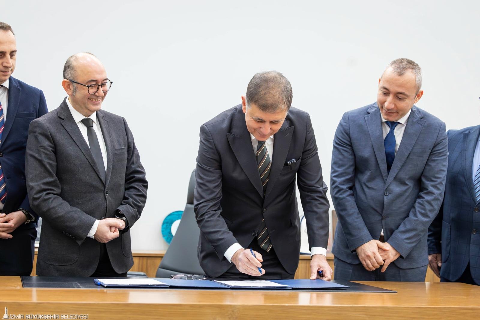 Uzun yıllar Konak Atatürk Meydanı’nda hizmet veren, 30 Ekim 2020’de meydana gelen depremde hasar görmesi nedeniyle boşaltılan ve 2022 yılında yıkılan İzmir Büyükşehir Belediyesi ana hizmet binasının yeniden yapılmasına yönelik süreçte önemli bir aşamaya gelindi. İzmir Büyükşehir Belediye Başkanı Dr. Cemil Tugay, açık ofisteki makamında yapı için hazırlanan ruhsat belgesini imzaladı. Kent için tarihi bir imza atan Başkan Dr. Tugay’a; İzmir Büyükşehir Belediyesi Genel Sekreteri Zeki Yıldırım, Genel Sekreter Yardımcıları Hakan Uzun ve İsmail Mutaf ile Etüt ve Projeler Dairesi Başkanı Selin Zağpus Yiğitoğlu ve Yapı Kontrol Dairesi Başkanı Seha Özmen eşlik etti.