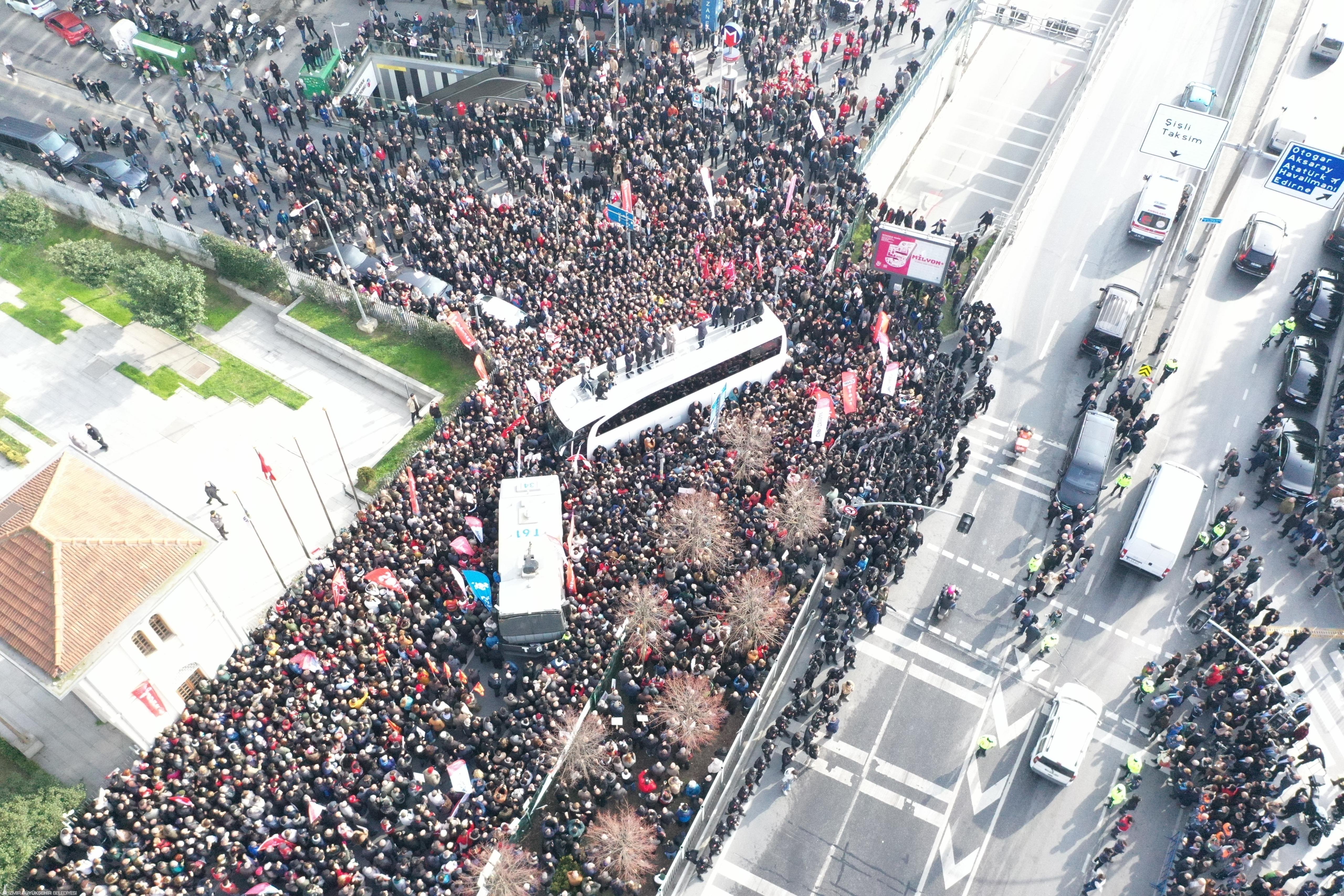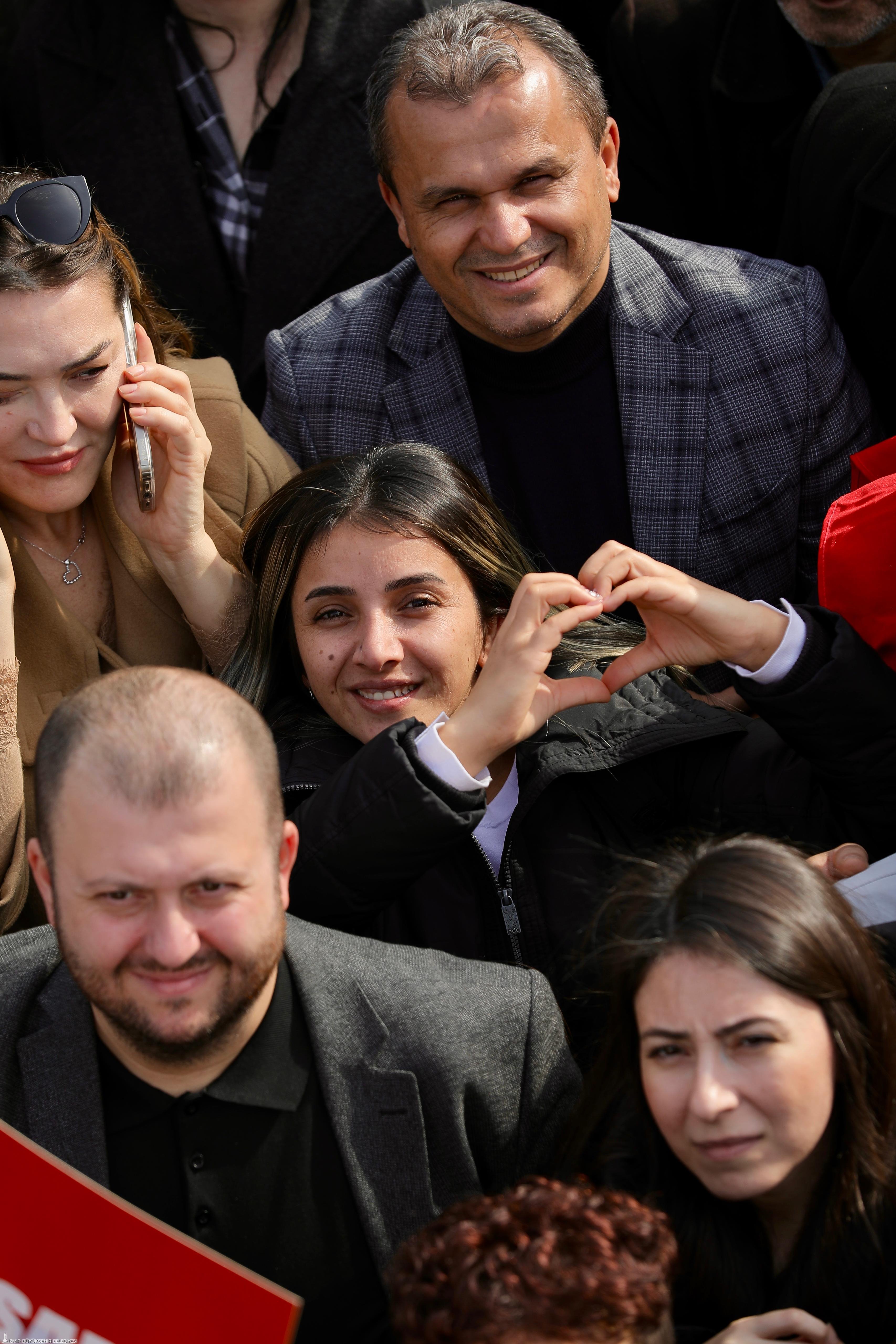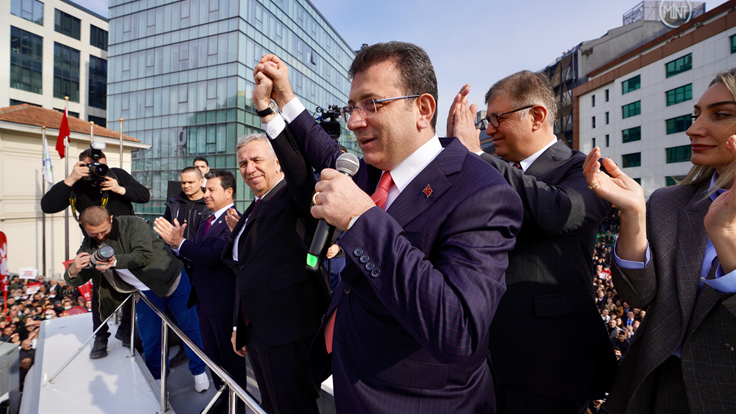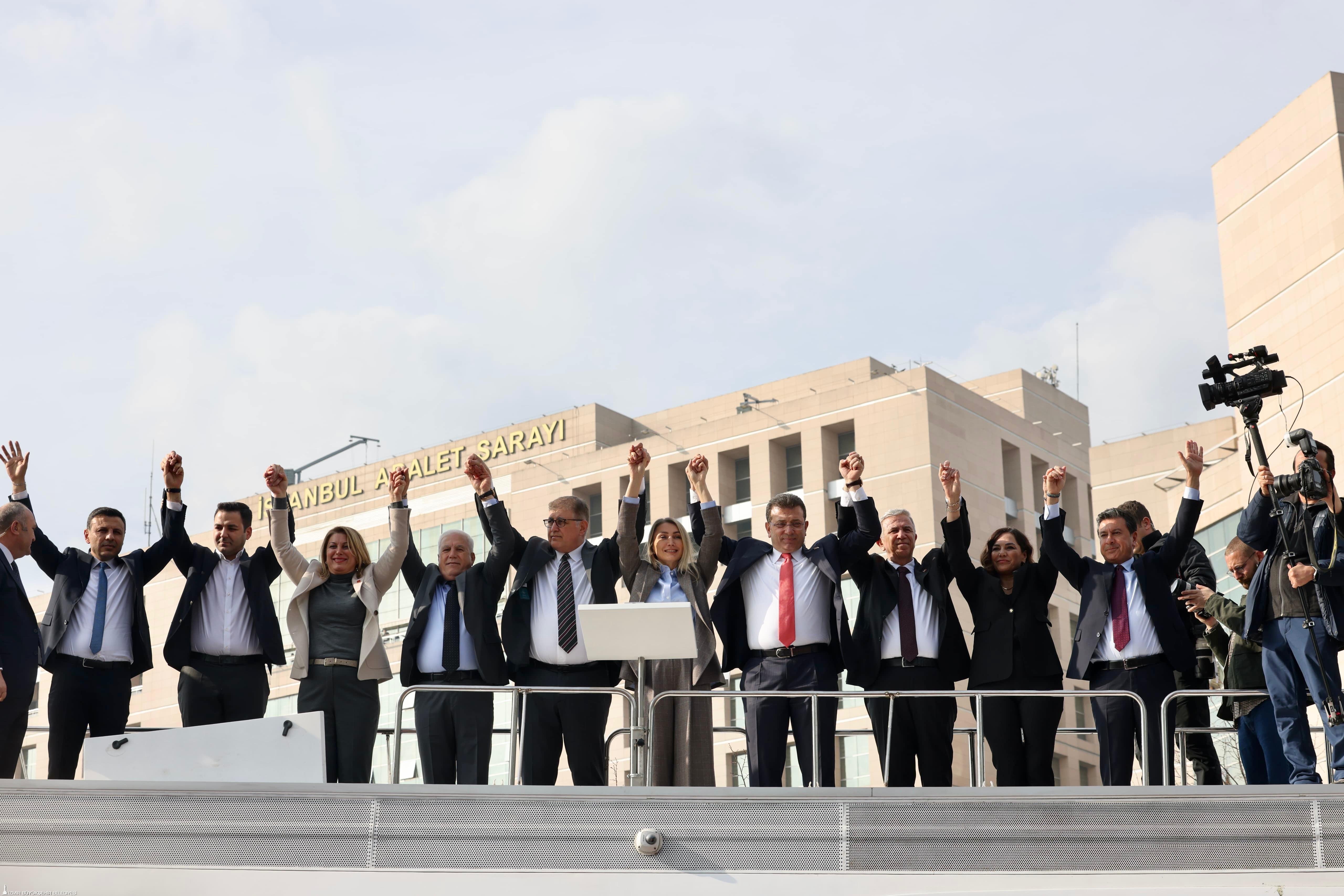 Türkiye Belediyeler Birliği Başkanı ve İstanbul Büyükşehir Belediye (İBB) Başkanı Ekrem İmamoğlu, hakkında açılan iki farklı soruşturma nedeniyle Çağlayan’daki İstanbul Adliyesi’nde savcılığa ifade verdi. İzmir Büyükşehir Belediye Başkanı Dr. Cemil Tugay da İstanbul’a giderek, İmamoğlu’na destek verdi. Başkan Tugay, burada yaptığı açıklamada, demokrasinin önemine değinerek, “Ekrem Başkanımız bugün gerçekten hiçbirimizin aklının ve vicdanının almadığı anlayışla ifade vermeye çağrıldı. Elbette kendini savunacak ve tabii ki biz de onun yanında, arkasında olacağız. Bu dönem demokrasiye karşı yapılan her türlü hareketin karşısında olmaya devam edeceğiz. Burada biraz üzüntülü ama mücadele konusunda kararlı parti örgütü olarak, belediye başkanları olarak, İzmir’den gelen arkadaşlarımızla buradayız. Bunun sonunda aklıselimin galip gelmesini diliyorum. Demokrasi sandıkta yapılan bir yarış. Başka her türlü engelleme, her türlü baskı halkın da reaksiyonuna yol açacak. Buna inanıyoruz. Diliyorum bu sürecin sonunda demokrasi, hukuk, adalet, hak kazansın” dedi.