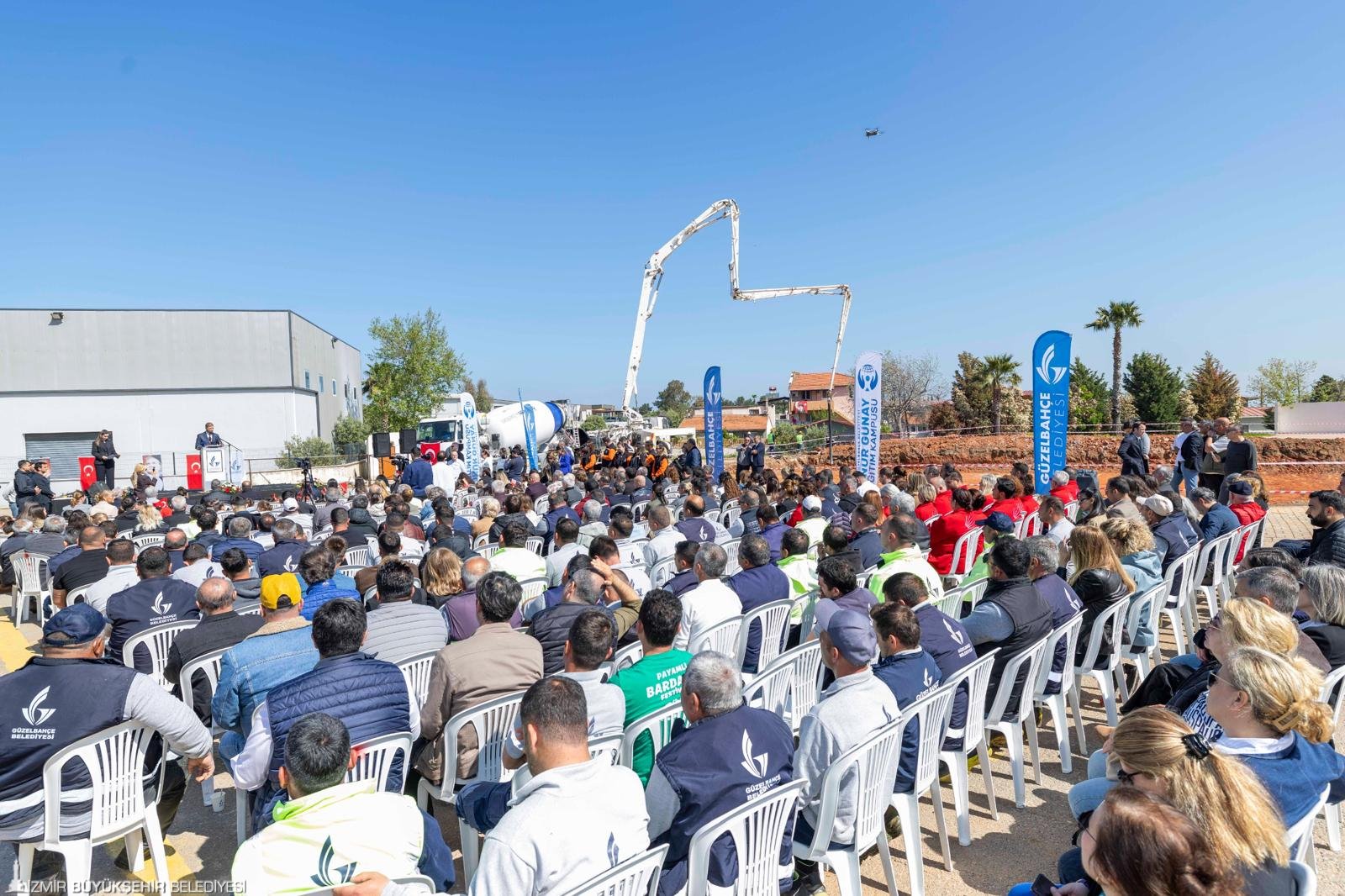 İzmir Büyükşehir Belediye Başkanı Dr. Cemil Tugay, Güzelbahçe Belediyesi tarafından inşa edilecek Onur Günay Eğitim Kampüsü Mustafa Ener Yerleşkesi için düzenlenen temel atma törenine katıldı. Onur Günay Eğitim Kampüsü’nün hemen yanında düğün salonu olarak kullanılan yapının yıkımının ardından boş kalan belediye arazisine yapılacak bina, 3-6 yaş arası çocuklara hizmet verecek. Programda Güzelbahçe Belediye Başkanı Mustafa Günay, siyasi partilerin temsilcileri, belediye meclis üyeleri, mahalle muhtarları, anaokulu çocukları ve vatandaşlar katıldı. Temel atma programında Cumhuriyet Halk Partisi (CHP) Genel Başkan Özgür Özel’in çocuklara yönelik merkezlerin sayısının artırılmasına yönelik sözleri dinletildi.