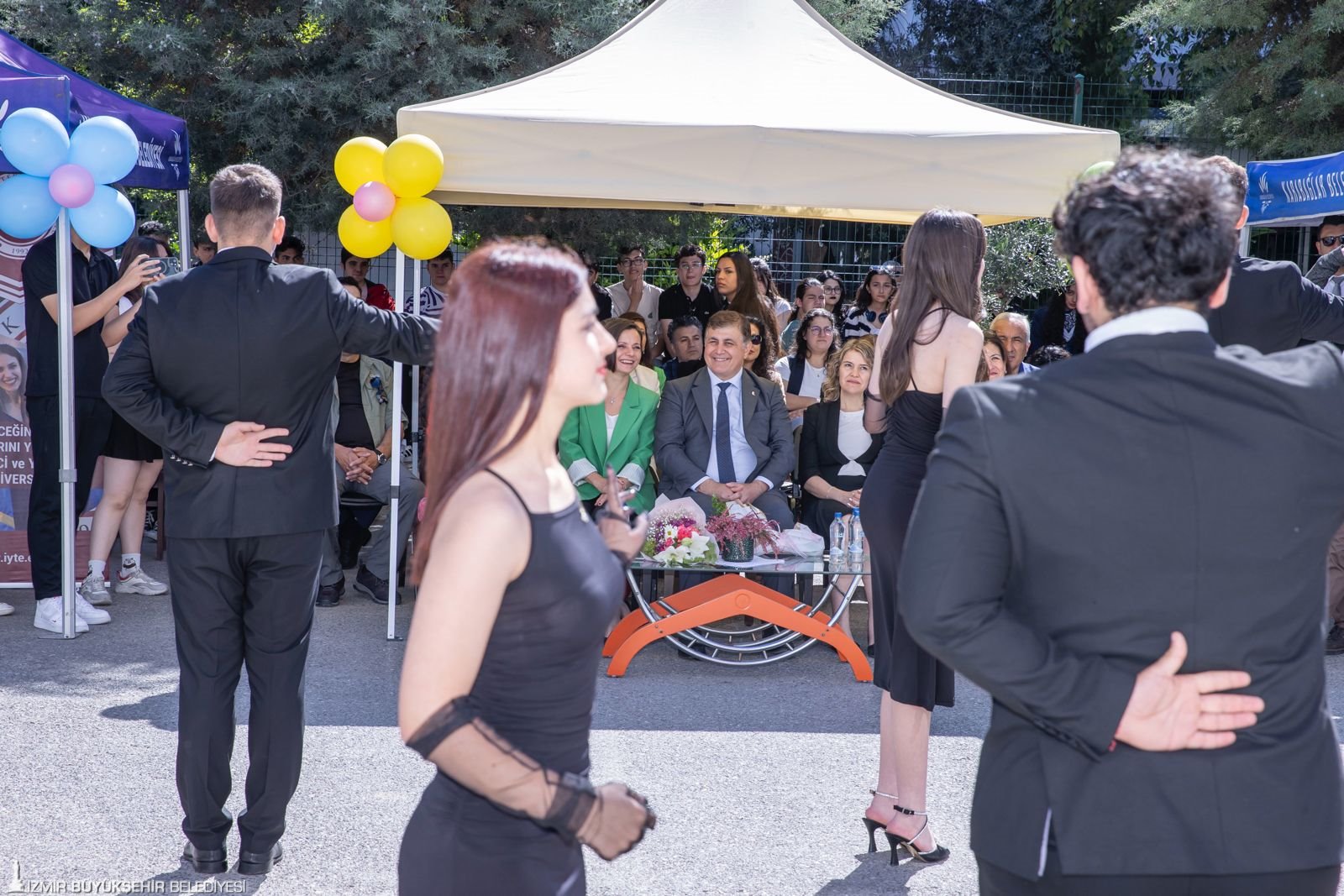 Açılış konuşmaları sonrasında vals ve halk oyunları gösterilerini izleyen Başkan Tugay üniversiteler tarafından kurulan stantları tek tek gezdi ve okul bahçesinden ayrıldı.