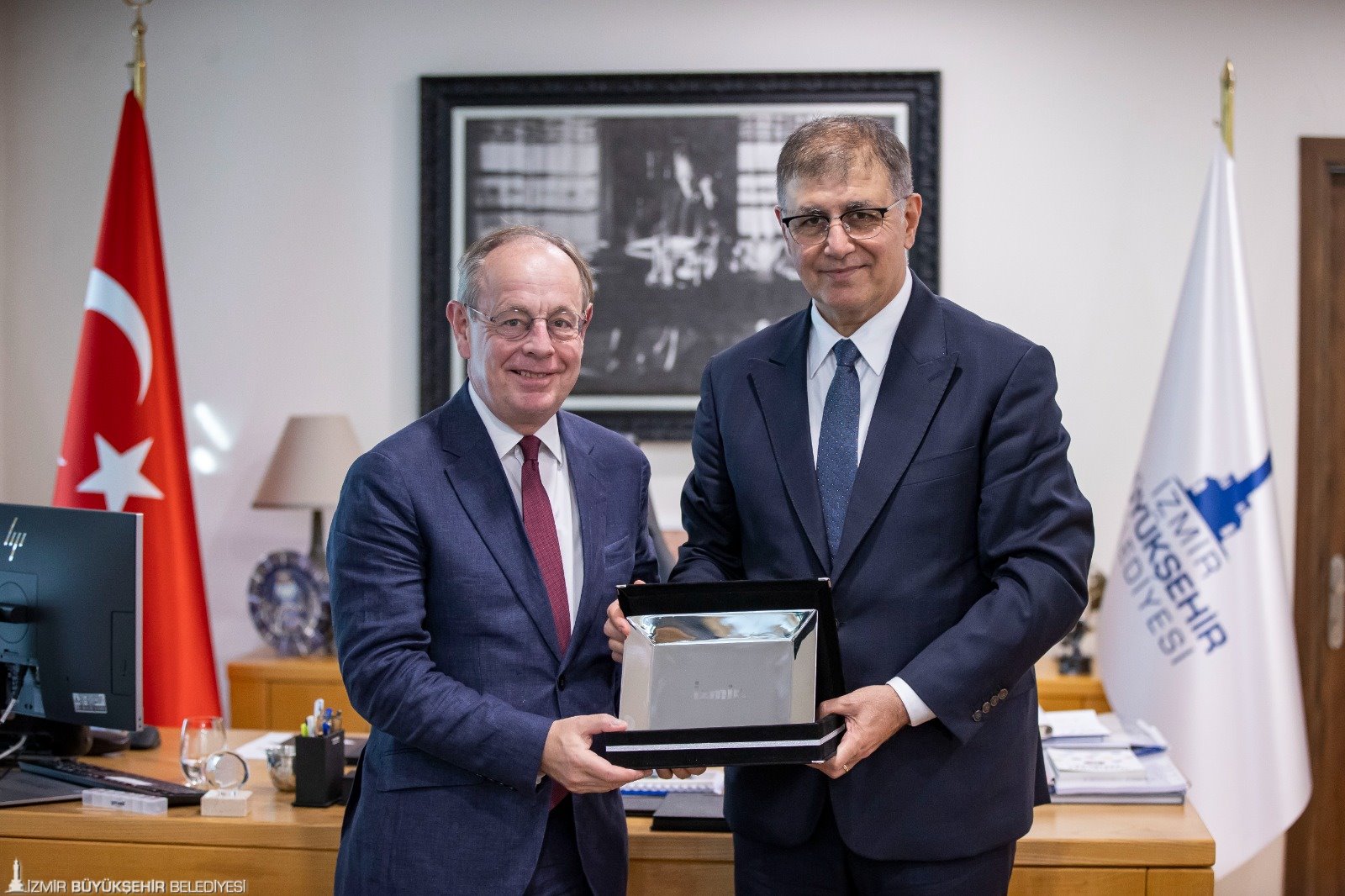 İzmir Büyükşehir Belediye Başkanı Dr. Cemil Tugay, Avrupa Komisyonu Çevre Genel Müdürlüğü Genel Müdür Vekili ve Avrupa Birliği (AB) İklim Nötr ve Akıllı Şehirler Misyonu Yöneticisi Patrick Child’ı ağırladı. Başkan Tugay’ı makamında ziyaret eden Patrick Child, kente dair gözlemlerini anlattı. Tugay ve Child daha sonra İklim Yurttaş Meclisi üyeleri ile İzQ Girişimcilik Merkezi’nde bir araya gelerek Yurttaş Meclisi’nin oturumuna katıldı ve üyelerin sorularını yanıtladı.