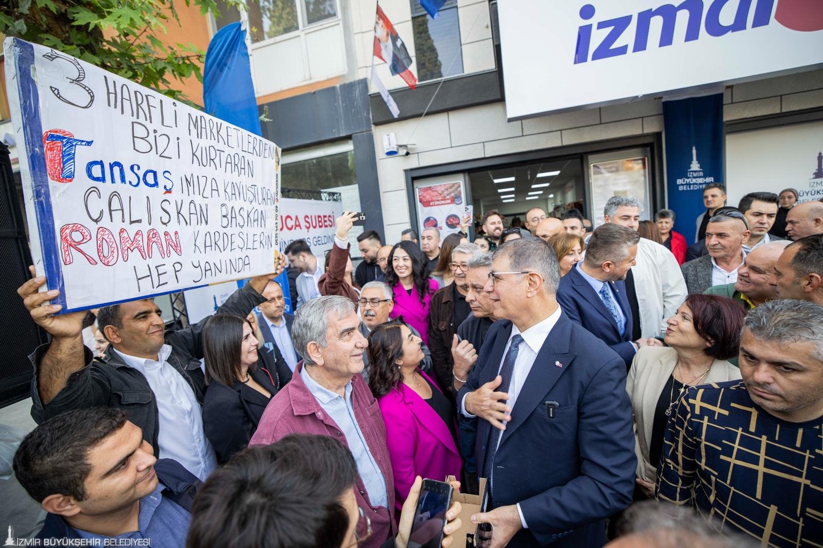 Nuran Aydın ise, “Bir araba alışveriş yaptım. İzmir Büyükşehir Belediyesi’nin marketinden çok memnunuz. Çok güzel. Bunun devamını istiyoruz. Başkanımız çok teşekkür ediyoruz” diye konuştu