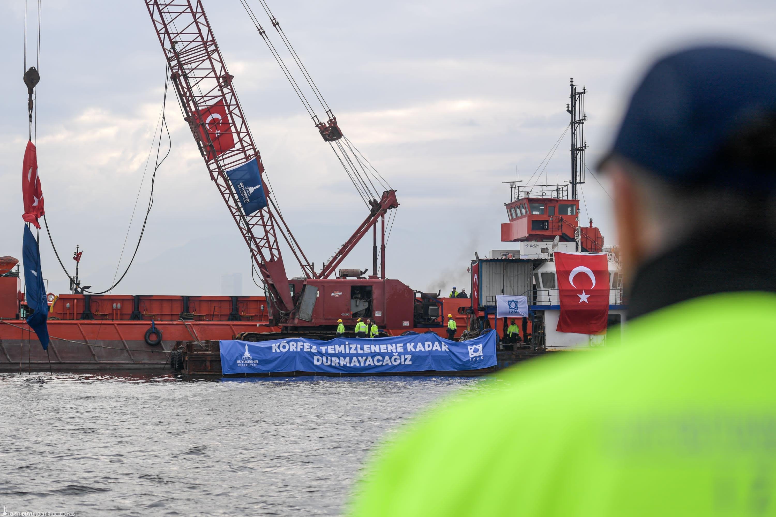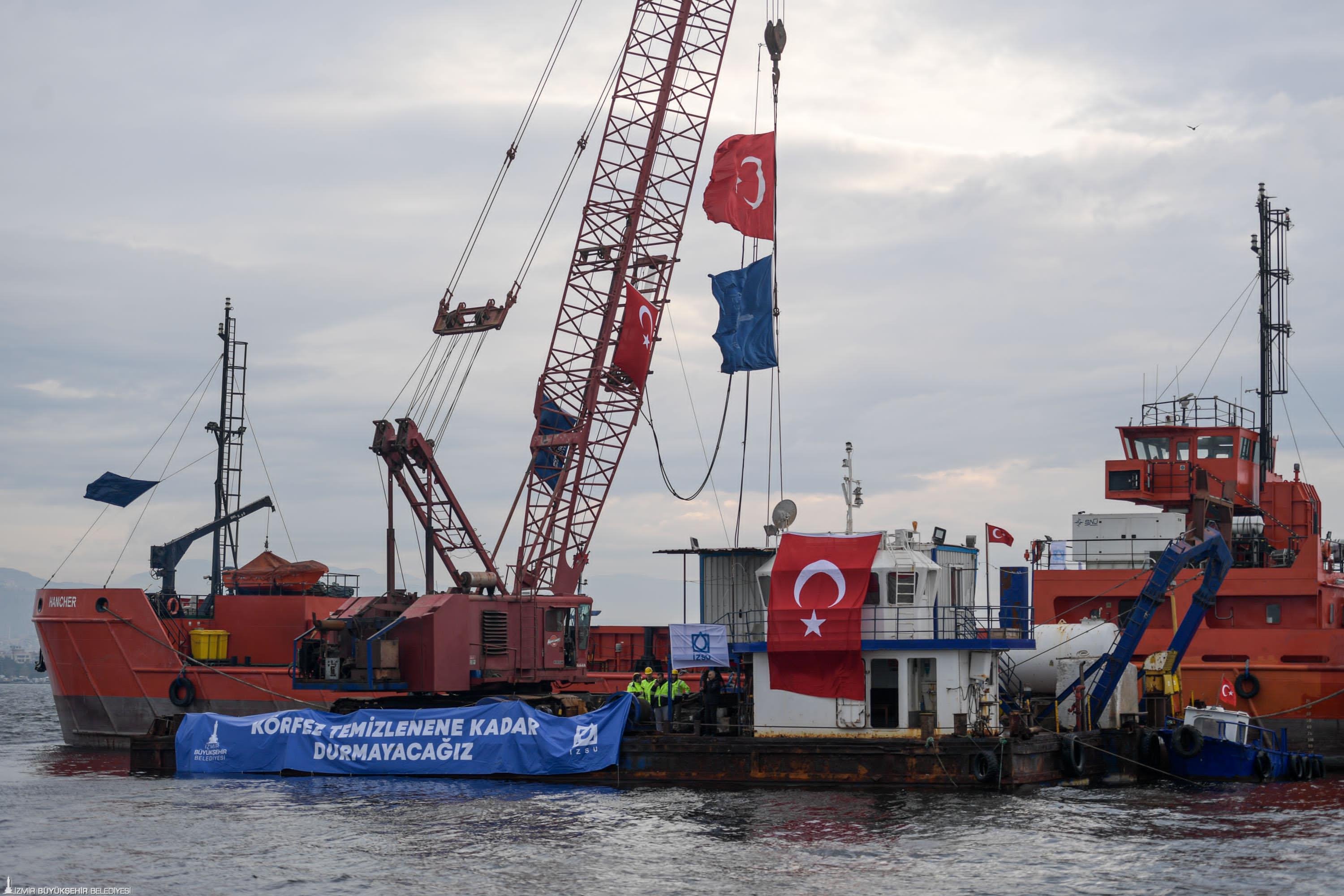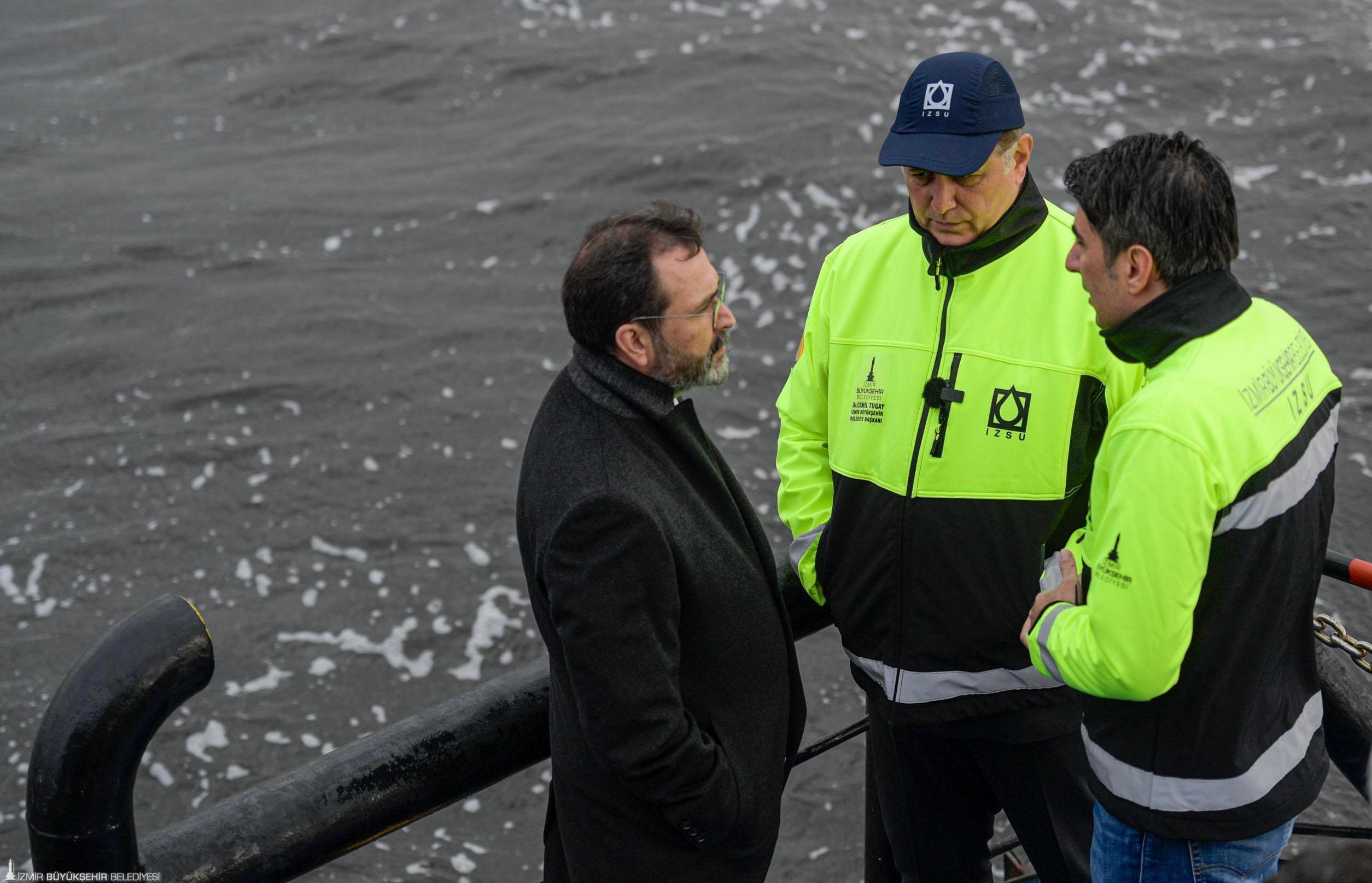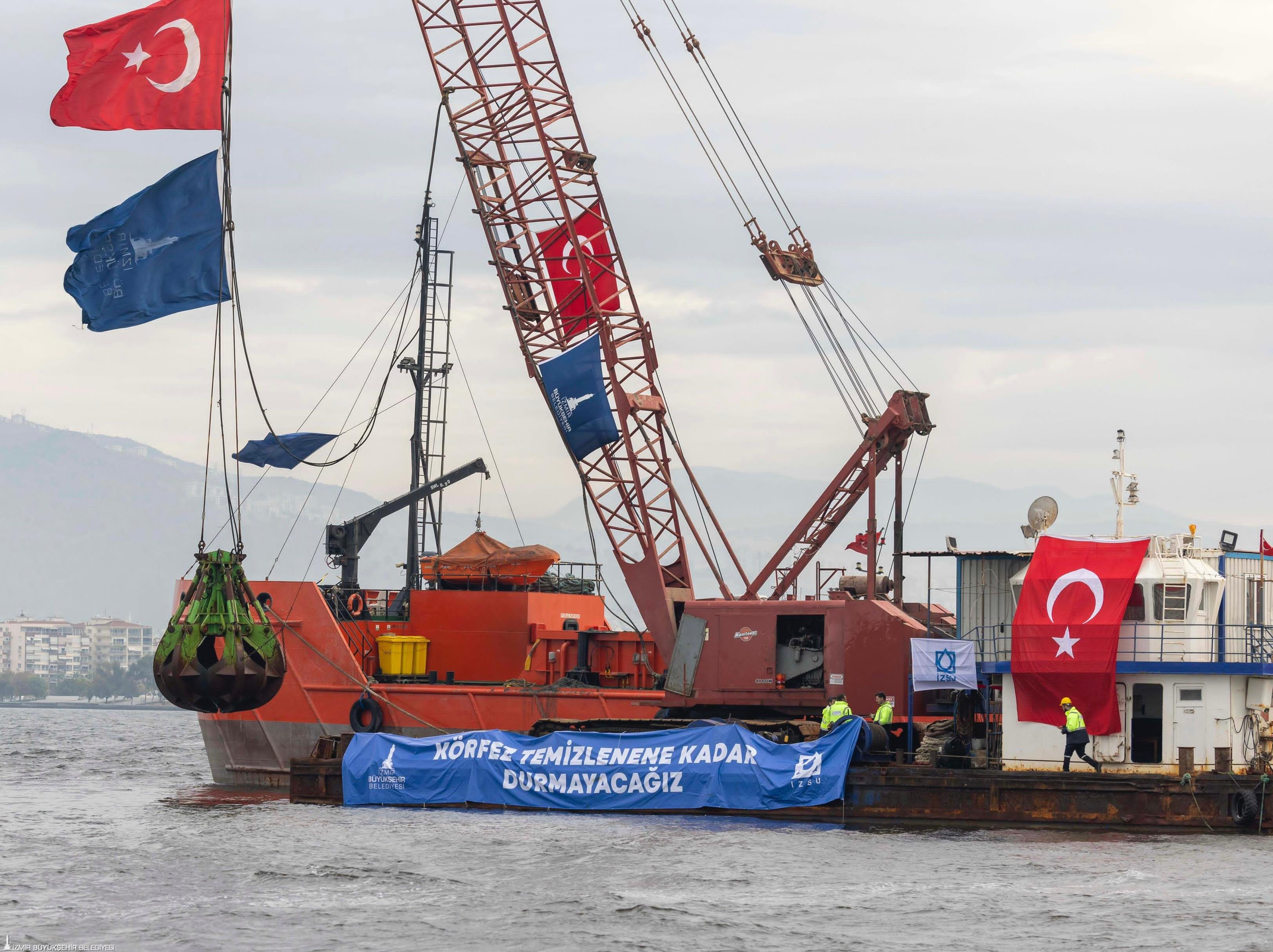 Bostanlı’dan Körfez’e açılarak tarama gemisinin bulunduğu bölgeye giden Tugay, “İki tarama gemisi ve çıkan çamuru taşıyan 6 tane gemi ile temizlik çalışmalarımız devam edecek. Bu çalışma Körfez’de sirkülasyonu sağlayacak. Bakanlığın yapması gereken bir iş ama önemli değil. Körfez bizim körfezimiz. Tüm birimlerimizle Körfez temizlenene kadar durmadan çalışmalarımıza devam edeceğiz” dedi.