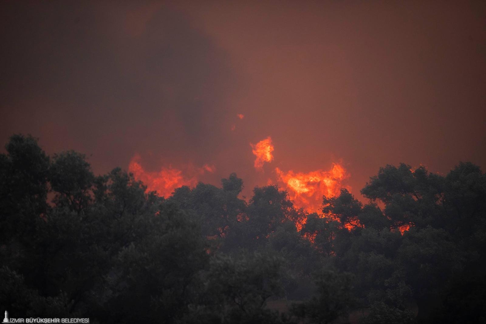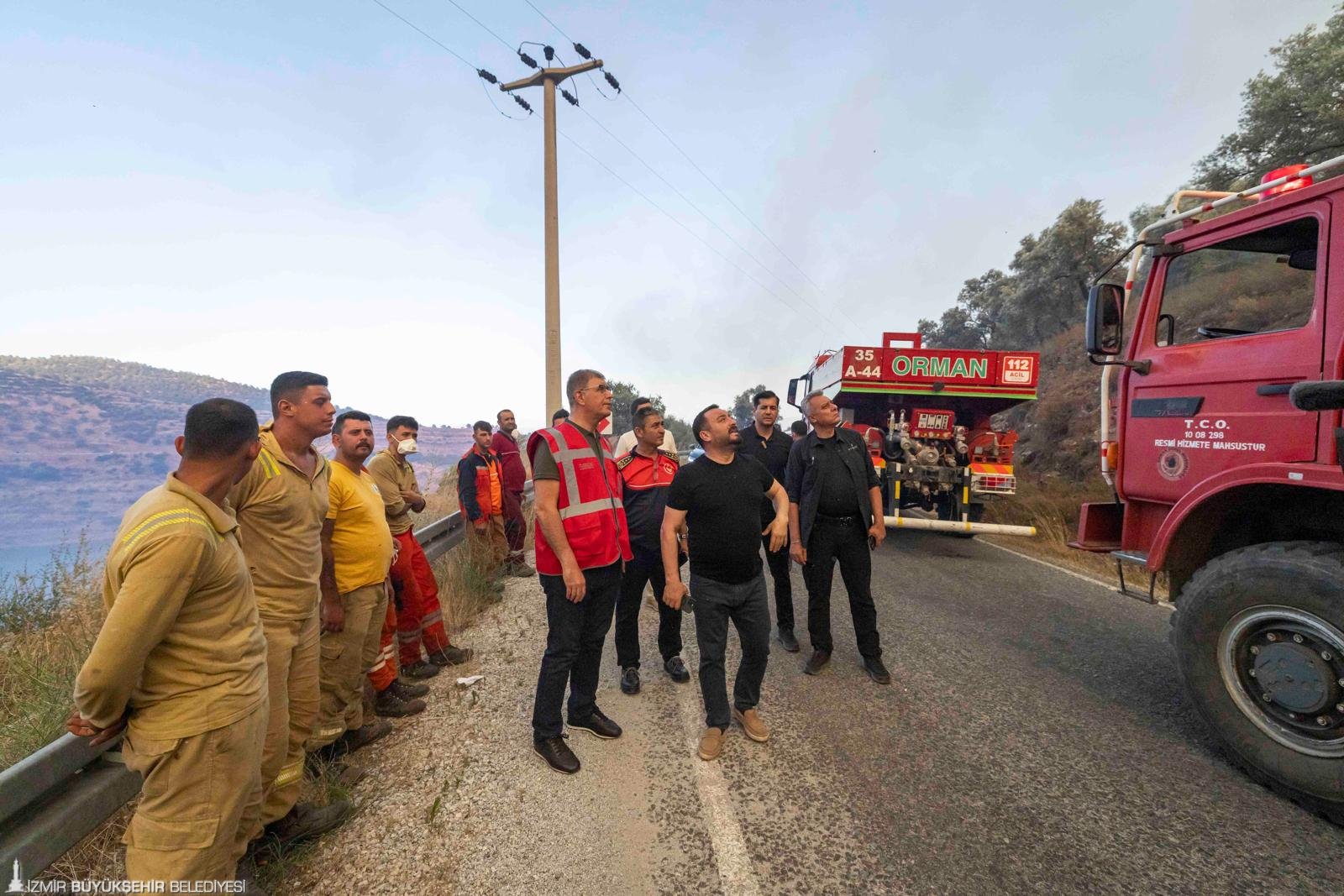 İzmir İtfaiyesi ve çevre illerden gelen itfaiye araçları Üzümlü köyünün girişinde bulunan alanda yangının yerleşim yerlerine ulaşmaması için konuşlandı.