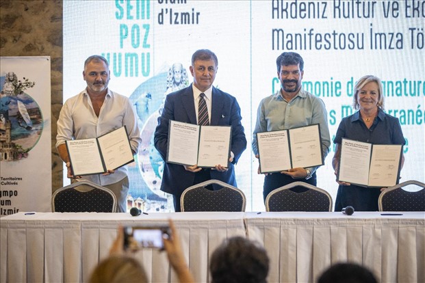 Sürdürülebilir Bir Akdeniz İçin Kültür ve Ekolojik Dönüşüm Uluslararası İzmir Sempozyumu 4-5 Eylül tarihleri arasında, Tarihi Havagazı Fabrikası Kültür Merkezi’nde düzenlendi. Fransa Dışişleri Bakanlığı’na bağlı Avrupa ve Dışişleri Bakanlığı Yerel Yönetimler Dış Eylem Delegasyonu (DAECT) hibesinden yararlanan “Kültürle İşlenmiş Bölgeler / Cultivated Territory” projesi kapsamında düzenlenen sempozyumun sonunda ise İzmir Büyükşehir Belediye Başkanı Dr. Cemil Tugay, Nice Belediye Başkan Yardımcısı ve AVITEM (Sürdürülebilir Akdeniz Kent ve Bölgeleri Ajansı) Başkanı Agnès Rampal, Vitrolles Belediye Başkanı Loïc Gachon ve Korsika Kolektifi Kültür Dairesi’ni temsilen Jean-Jacques Ottaviani ile birlikte Akdeniz Kültür ve Ekoloji Kentleri Manifestosu’nu imzaladı. İmza törenine AVITEM Genel Müdürü Büyükelçi François Xavier Léger, AVITEM Genel Müdür Yardımcısı Marie Baduel, İzmir Fransız Kültür Merkezi Müdürü Juliette Bompoint, Fransa Kültür Etkinlikleri ve İş Birliği Müsteşar Yardımcısı ve Institut Français Türkiye Müdür Yardımcısı Fabien Flori, İzmir Büyükşehir Belediyesi bürokratları, Kültürle İşlenmiş Bölgeler (Territoires Cultivés) projesi partnerleri, şehirlerden gelen uzmanlar ve temsilciler de katıldı.