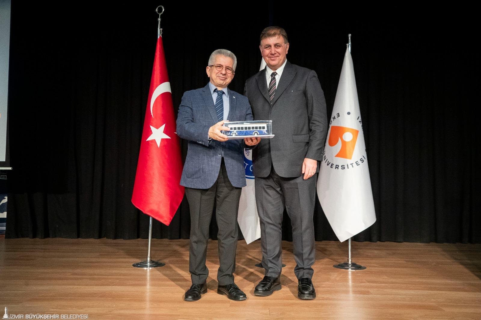 İzmir Ekonomi Üniversitesi Rektörü Prof. Dr. Yusuf Hakan Abacıoğlu, kadın şoför adaylarının eğitimlerine destek vermekten büyük mutluluk duyduklarını ifade etti. Abacıoğlu, “Bu projeyi bizim için özel kılan bir neden de üniversitemizin ‘Kampüs İzmir’ yaklaşımının çok güzel bir örneği olması. Üniversitemizin enerjisi, Ticaret Odası’nın girişimciliği ve İzmir’in potansiyeliyle oluşan birlikteliğe, Kampüs İzmir diyoruz. Bugün İzmir’in potansiyeli ile üniversitemizin enerjisi bir araya geldi” dedi. Kadın şoför adaylarına ‘Sürücü Mükemmeliyet Eğitimi Mikroyeterlilik Programı’ kapsamında farkındalık, iletişim becerileri, stresle başa çıkma yöntemleri ve öfke kontrolü ile eşitlik atölyesi başlıklı dört modülde eğitim verildiğini belirten Abacıoğlu, “Ölçme değerlendirme yöntemleri ve rubrikler geliştirilerek, yeterlilik eşiğini açan katılımcılara dijital rozet verilmesi amaçlandı. Rozetler katılımcılarımızın e-posta adreslerine gönderilecek. Bu tür bir eğitimin mikroyeterlilik olarak yapılandırılması, bildiğimiz kadarıyla ülkemizde bir ilk, dünyada da sayılı örneklerden biri olma özelliği taşıyor. Mikroyeterlilikler üniversitemizin stratejik önceliklerinden olup, yetkin ve güçlü olduğu bir alandır. Bu alanda ülkemizdeki öncü üniversitelerden biri olduğumuzu gururla söyleyebiliyorum” diye konuştu.